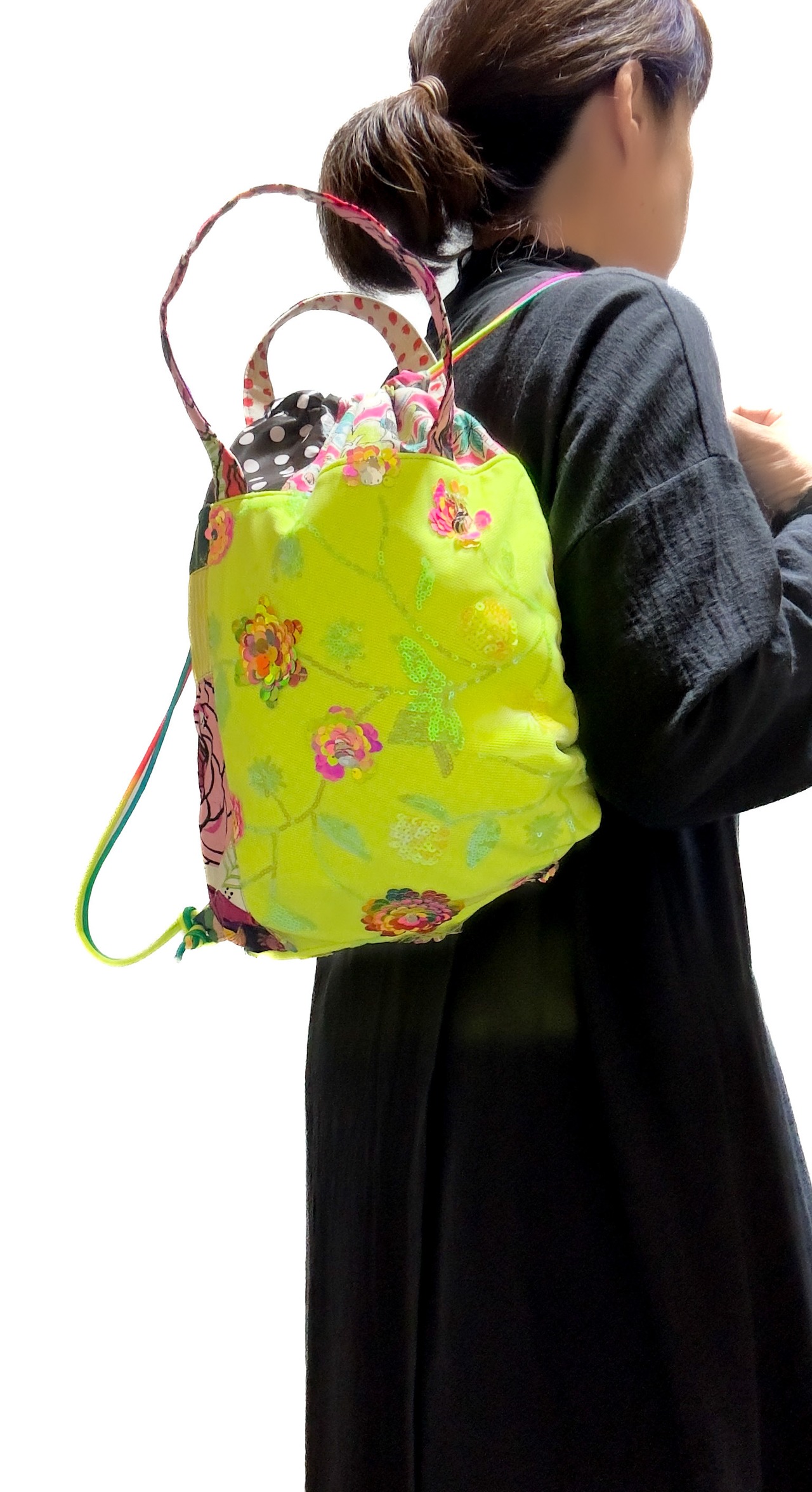 前面と後面でデザインも変わりますのでお出かけのお供としてコーディネートを楽しんでいただけたら嬉しいです。