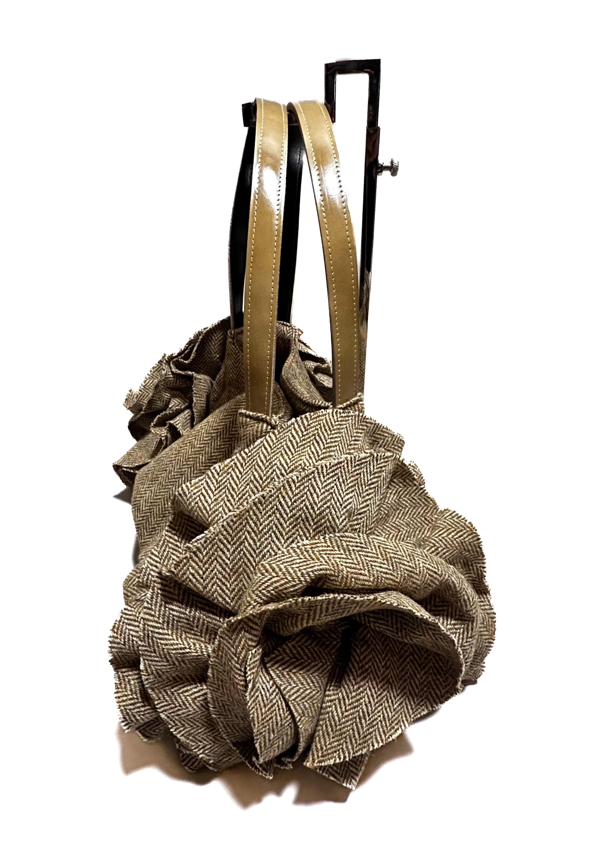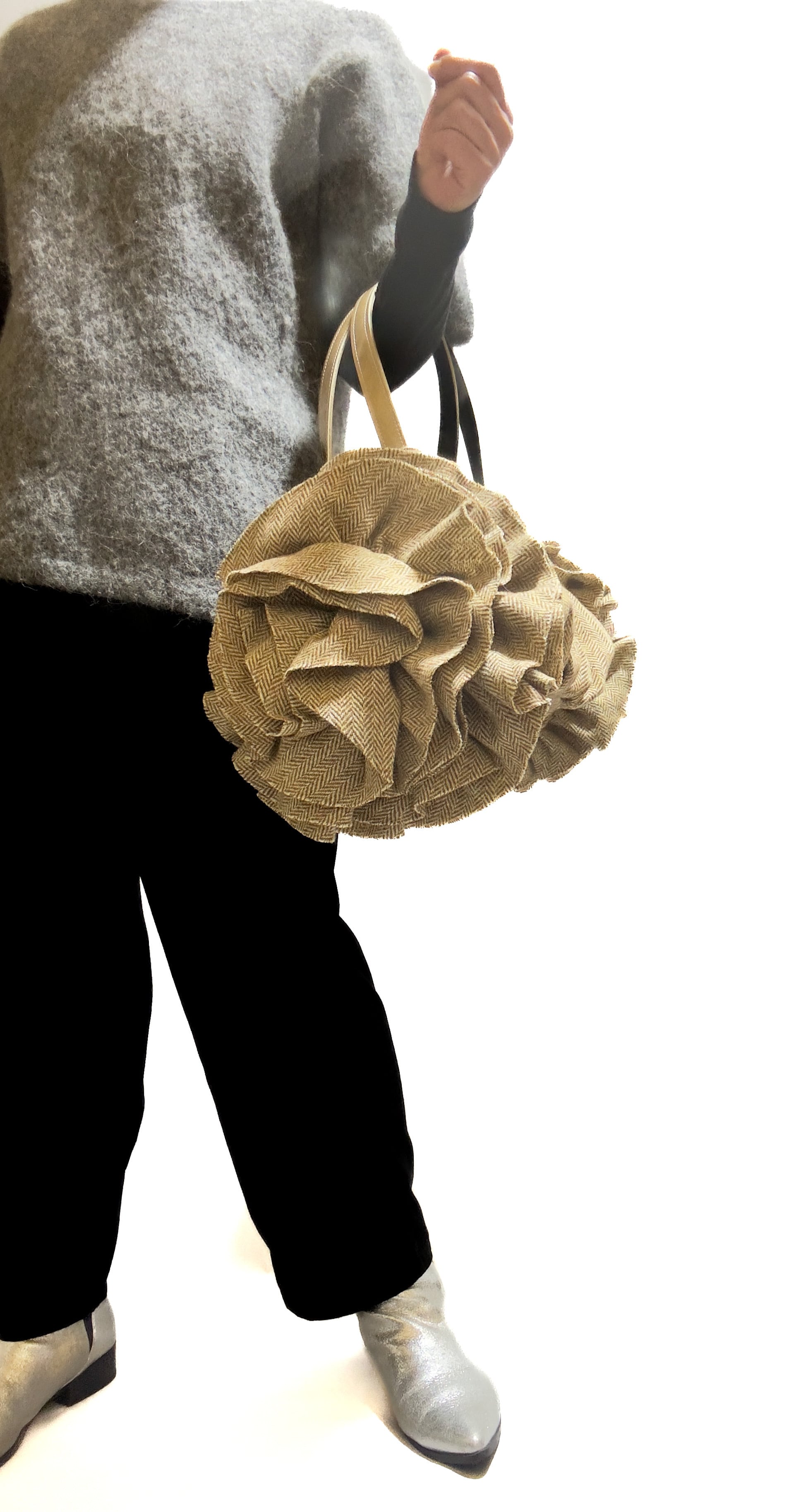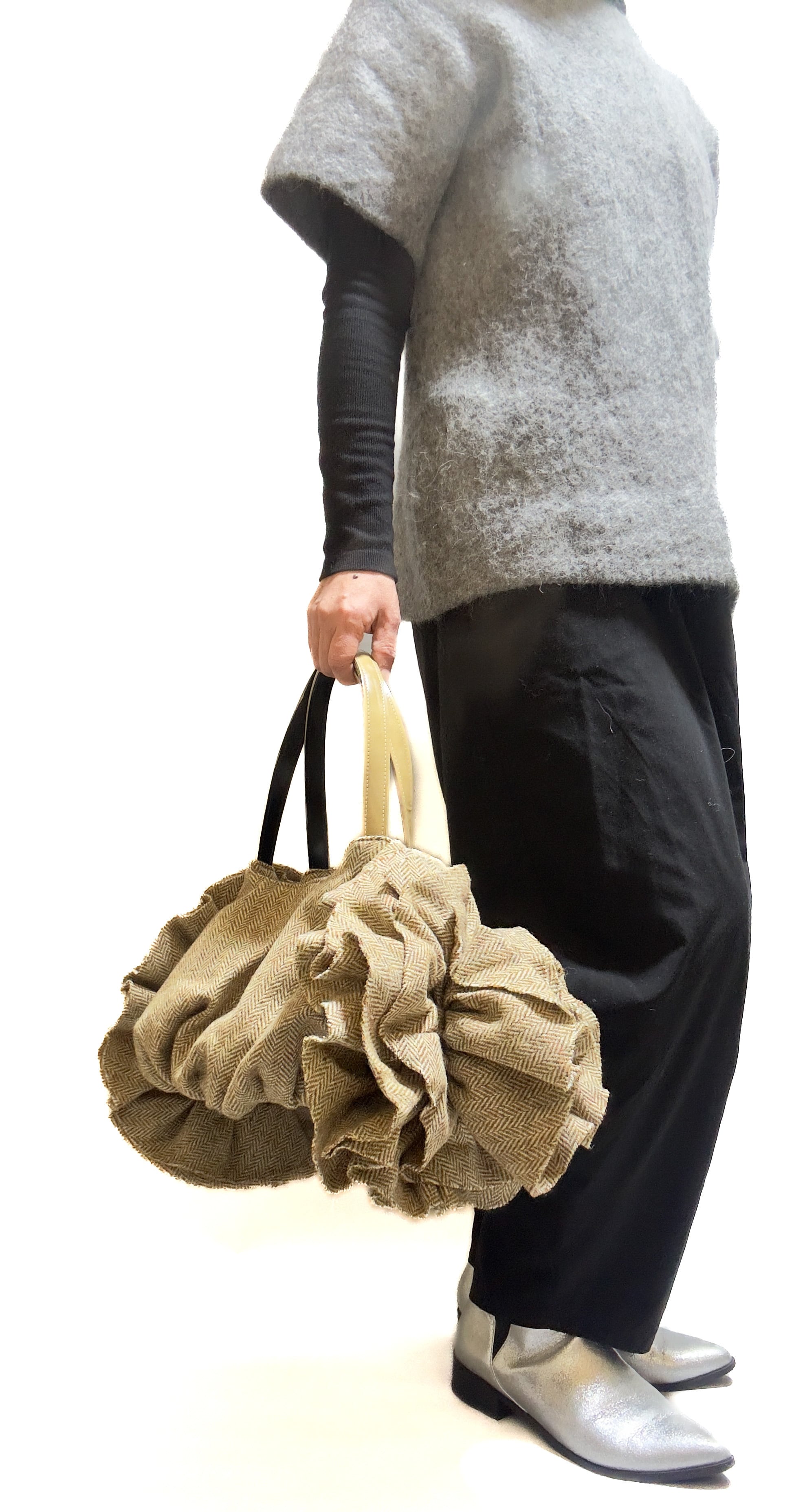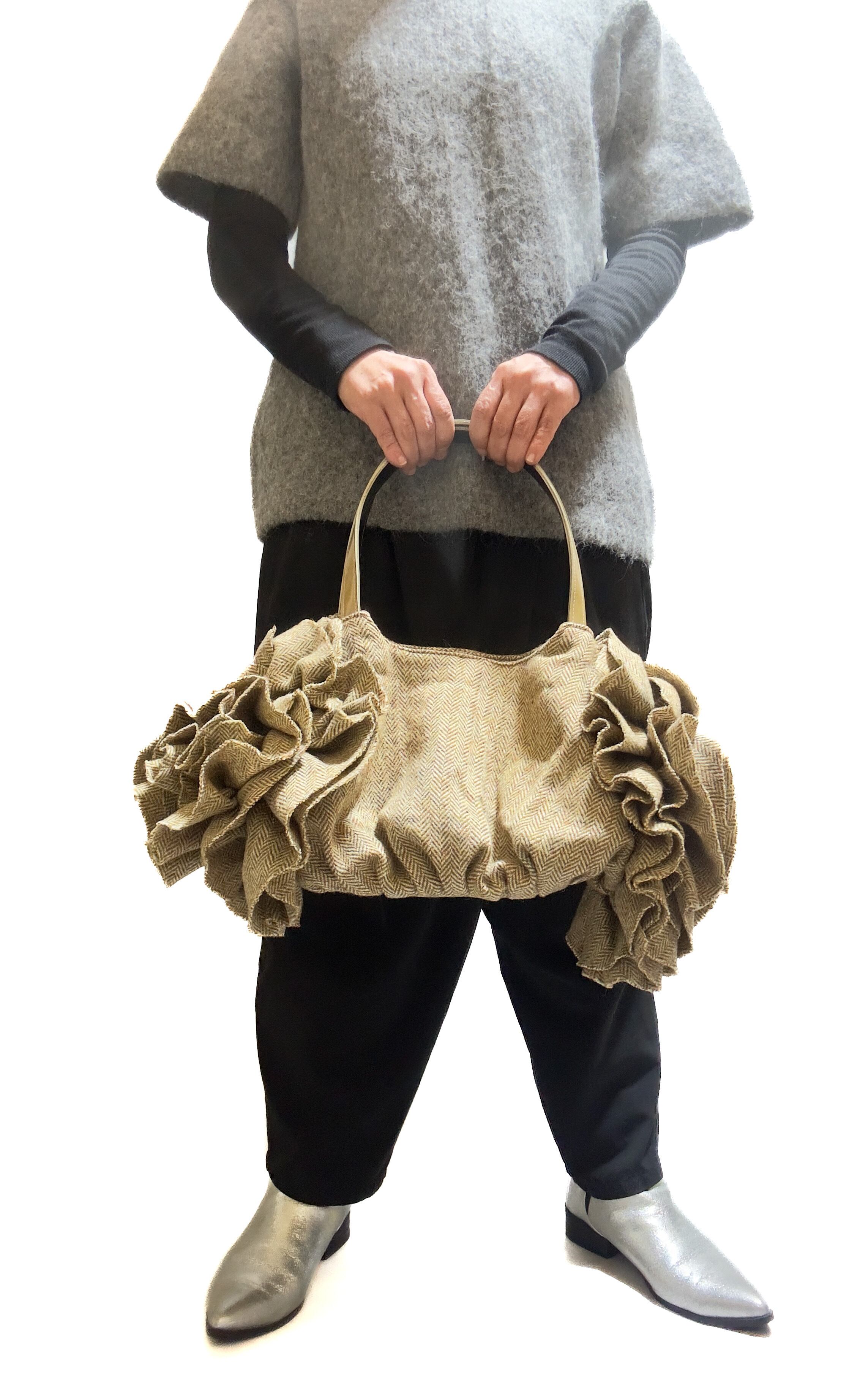 定番で製作しているブラックフラワーバッグのウールヘリンボーンバージョンです。