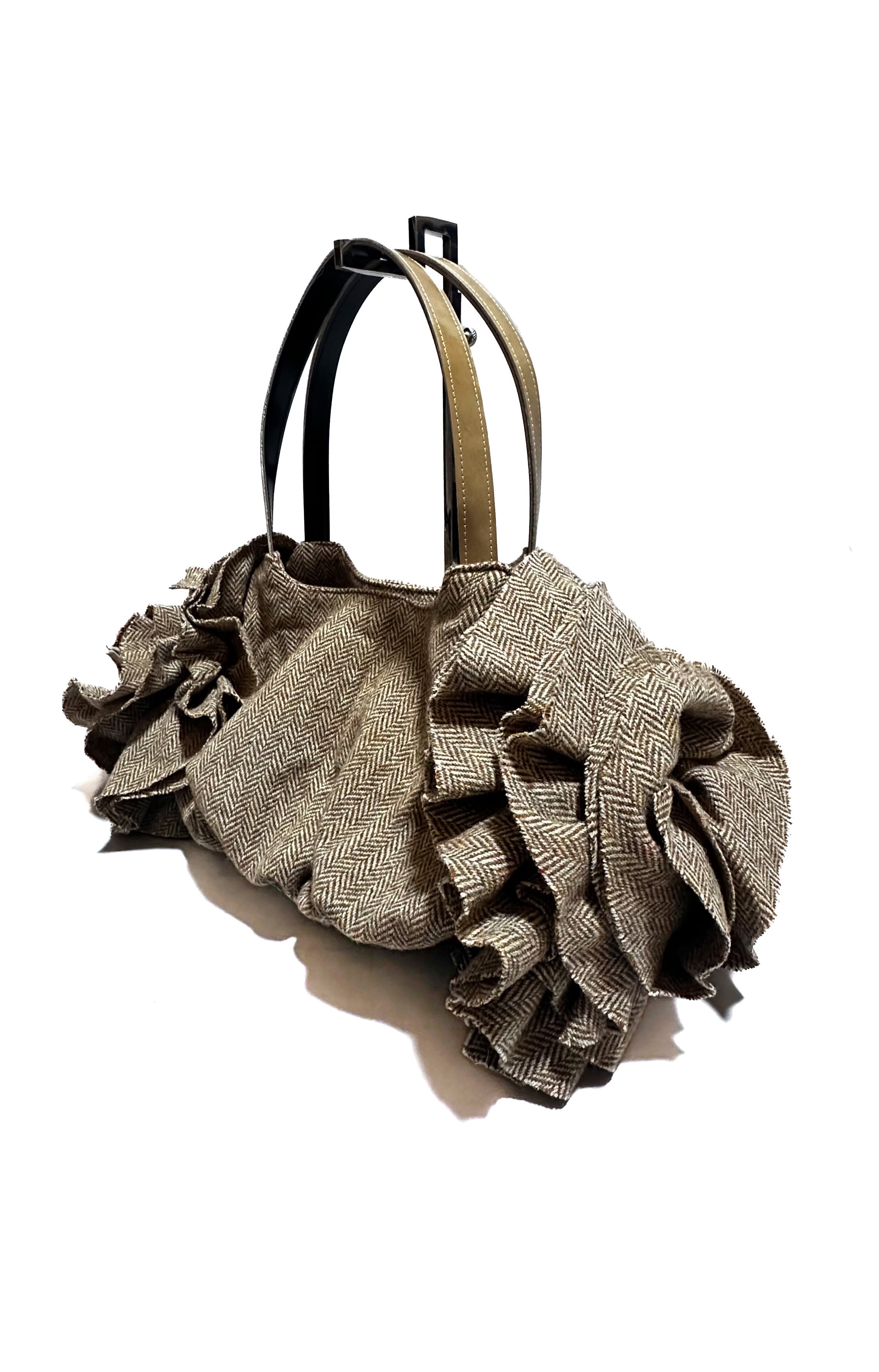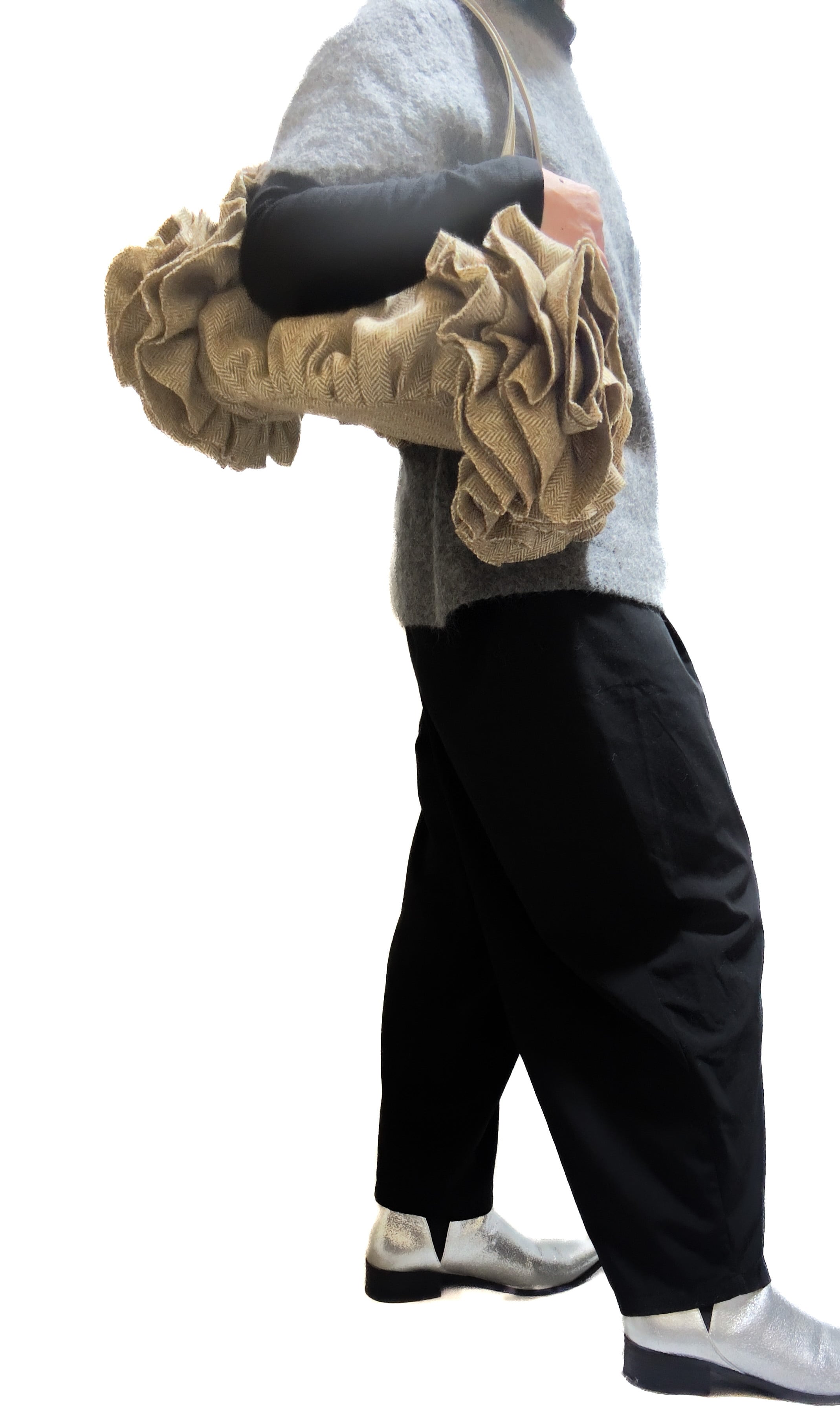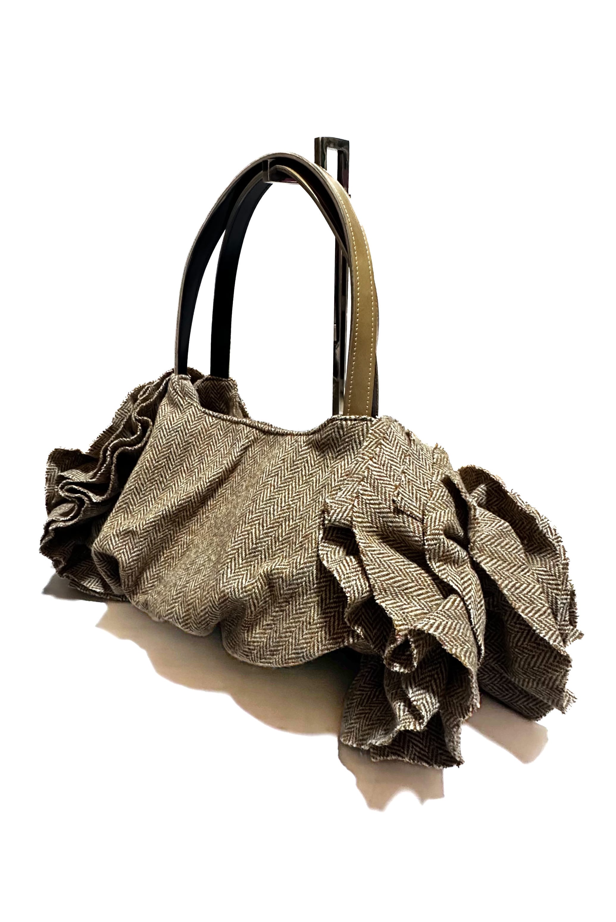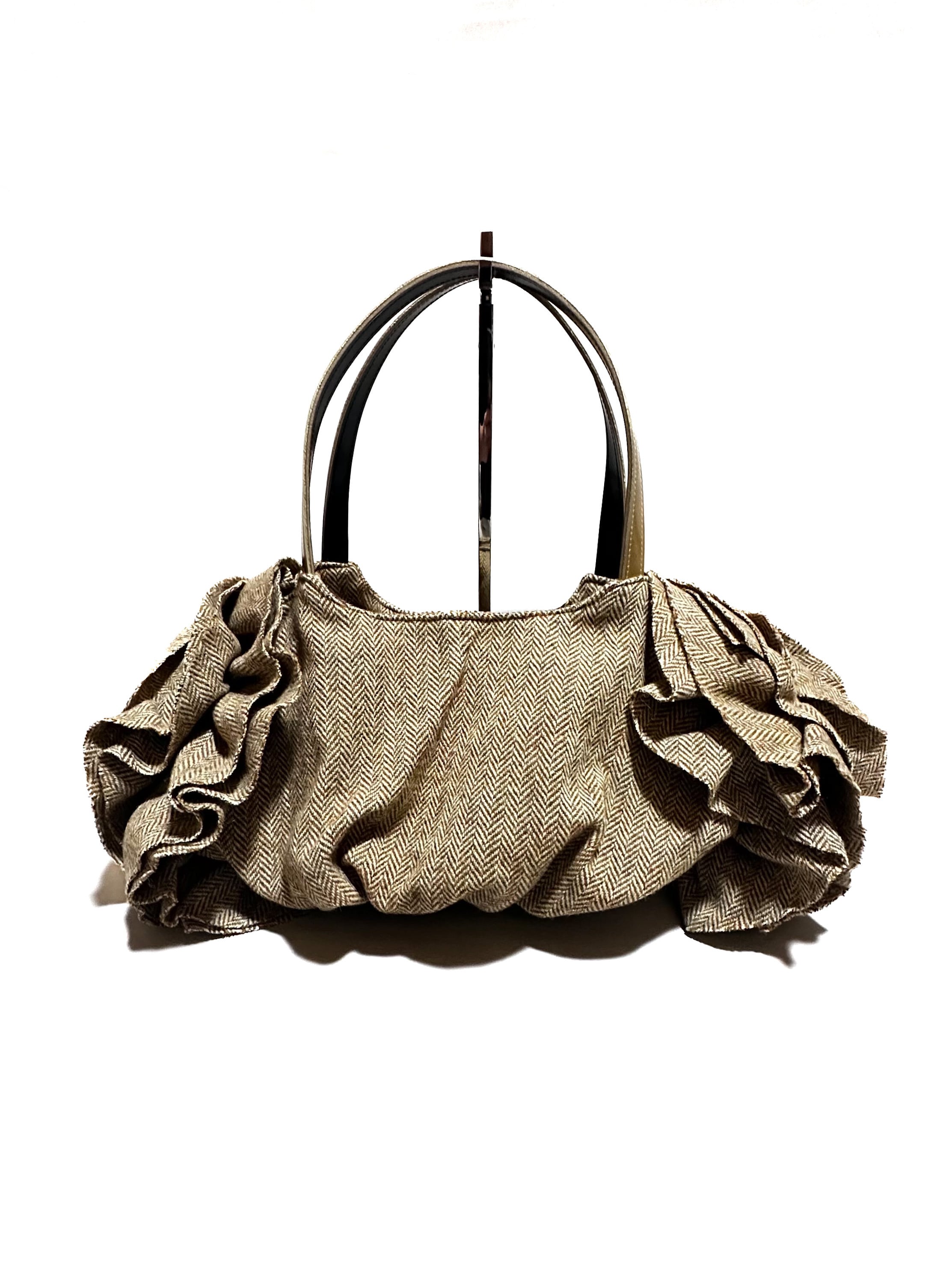 定番で製作しているブラックフラワーバッグのウールヘリンボーンバージョンです。