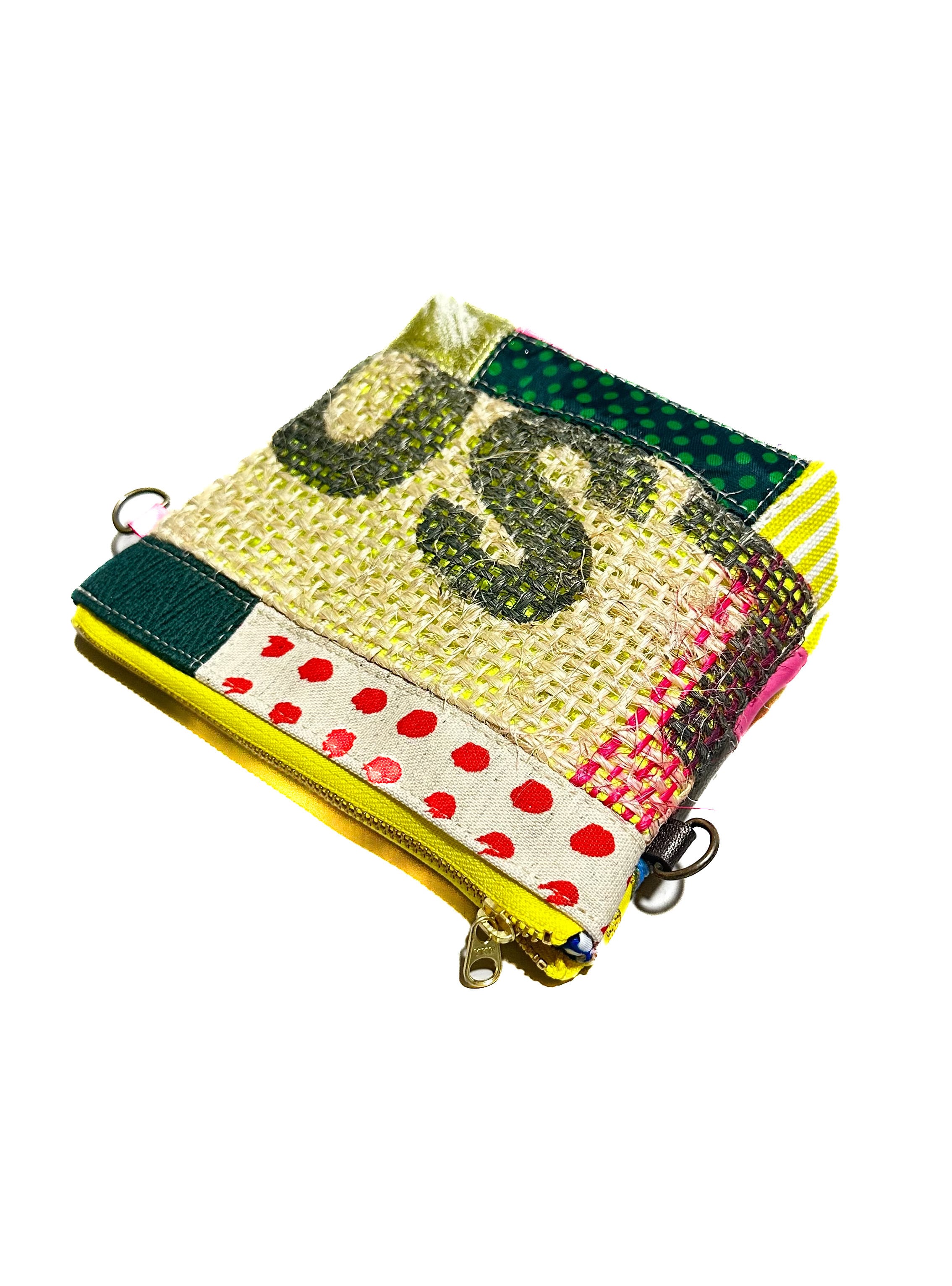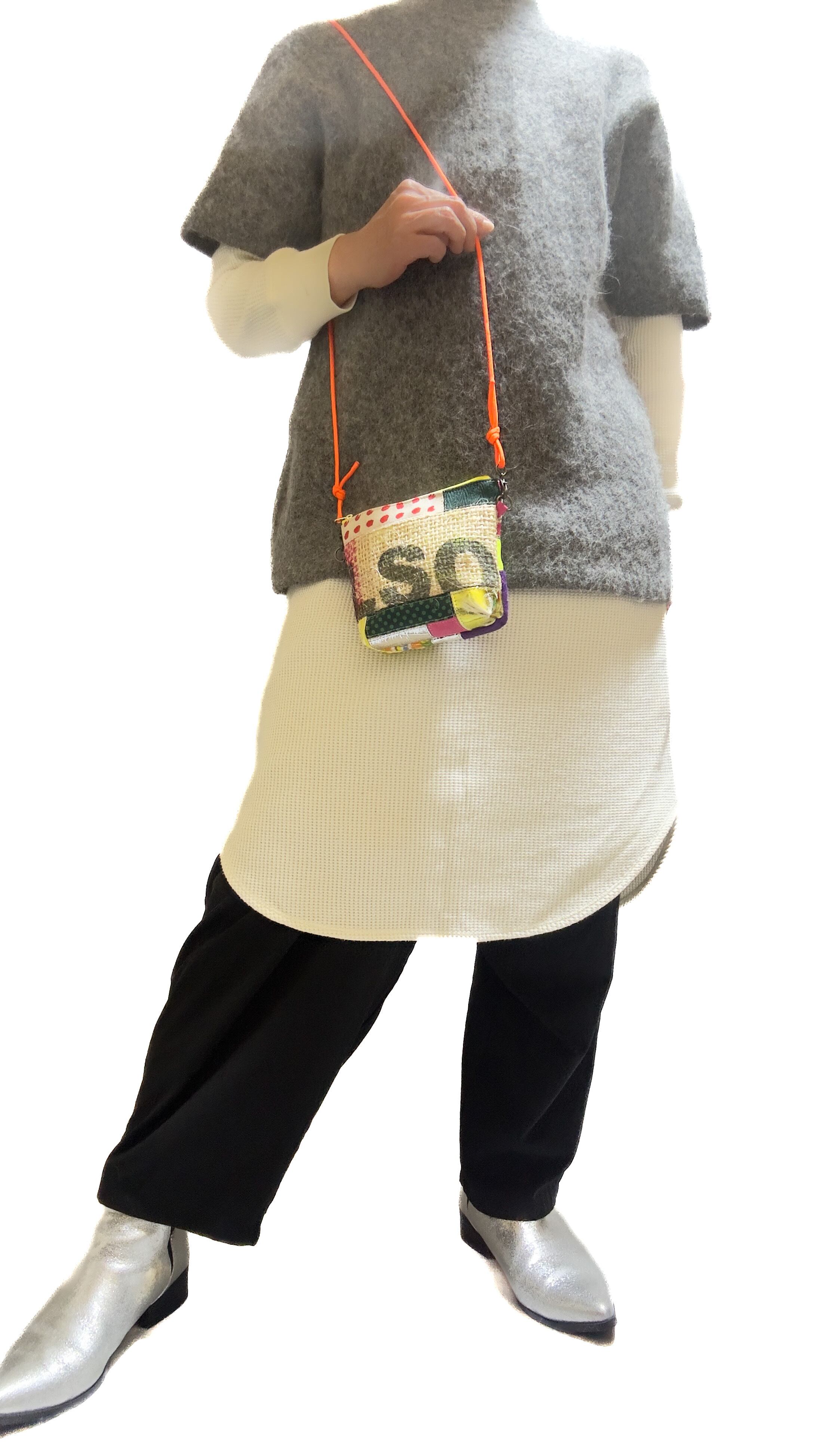 コーヒーの麻袋と本来は廃棄されてしまう端材や新しい素材などを組み合わせパッチワークし、新しいカタチに仕上げました。