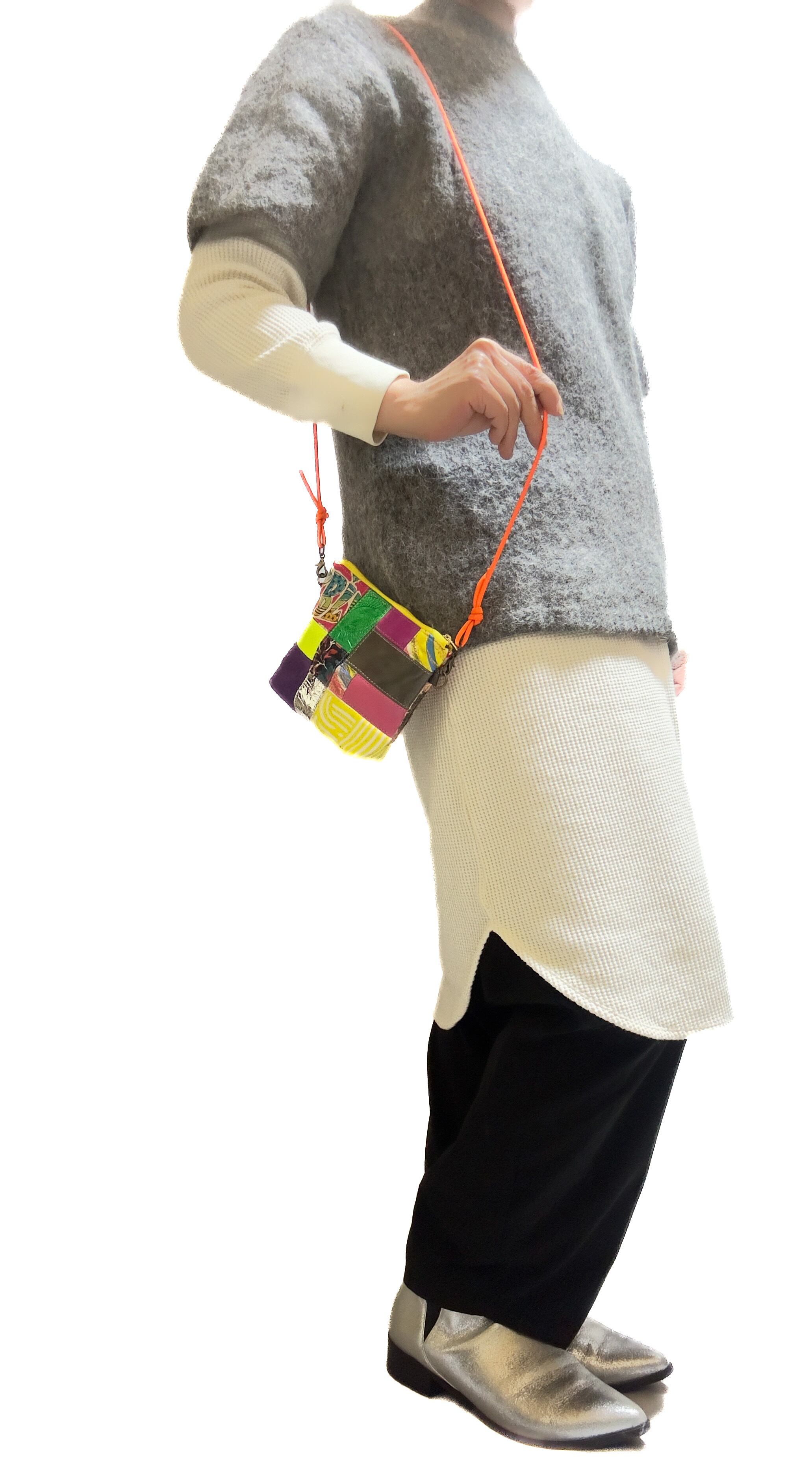 イヤホンケースなどちょっとした物やすぐに取り出したい物を入れるのに丁度良いサイズなのでショルダーを使ってポシェットとして使っていただいても良いですし、ショルダーを外して化粧品やお出かけの際に欠かせない日用品入れとしてバッグに忍ばせておいたりと様々なシーンや用途でご活用くださいませ◎