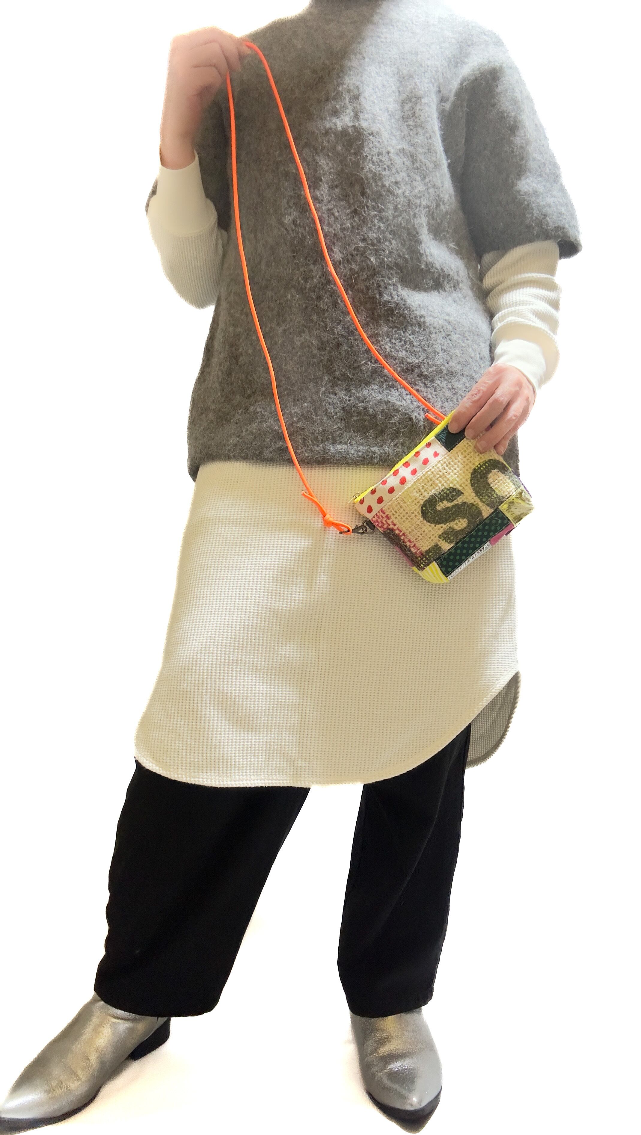 a Linden:tree オリジナルのサスティナブルアイテムで取り外し可能のショルダーが付いた小さめポーチです。