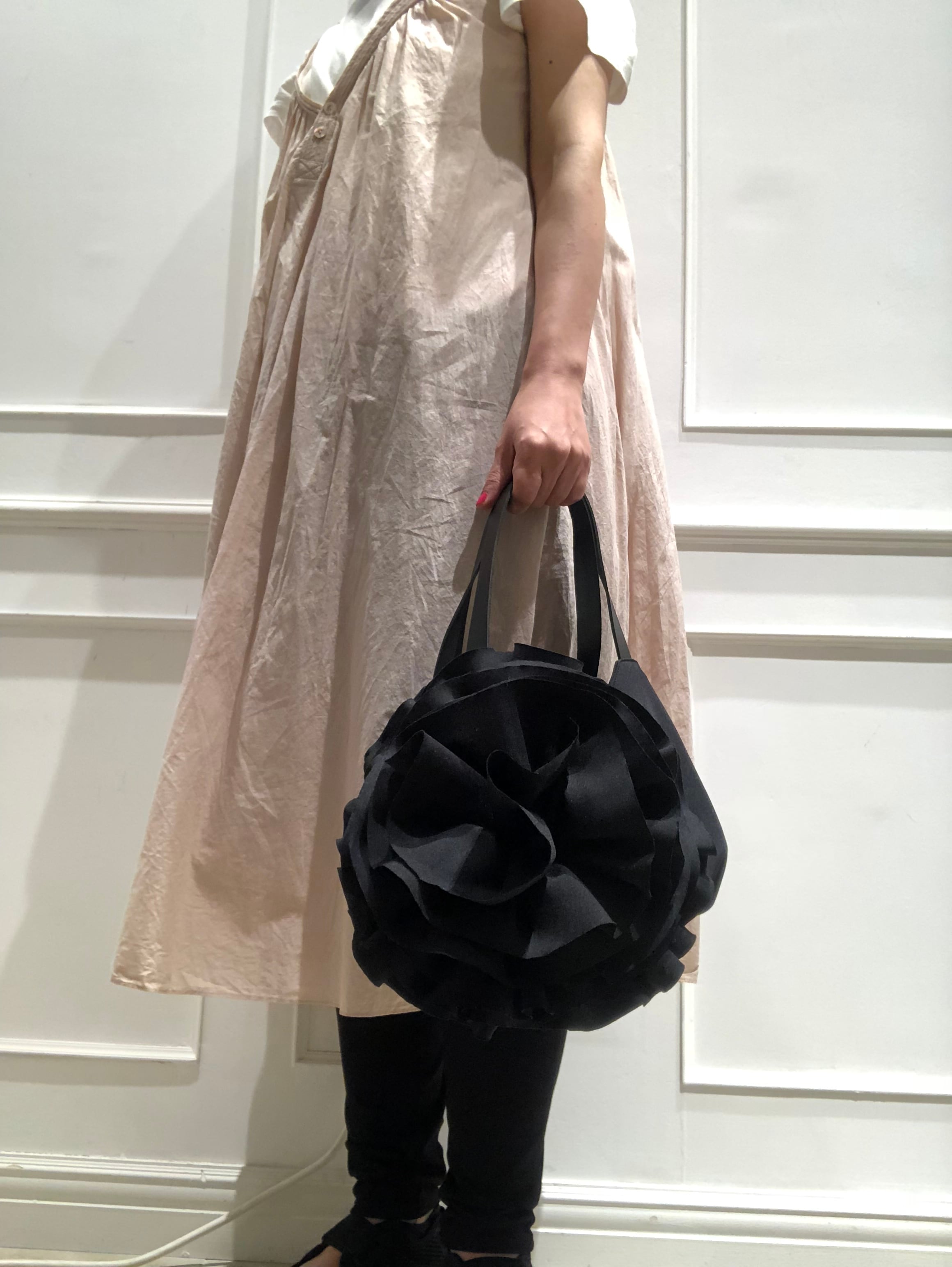 ふわりとした大きなお花がアイコンのカボチャ型バッグ。