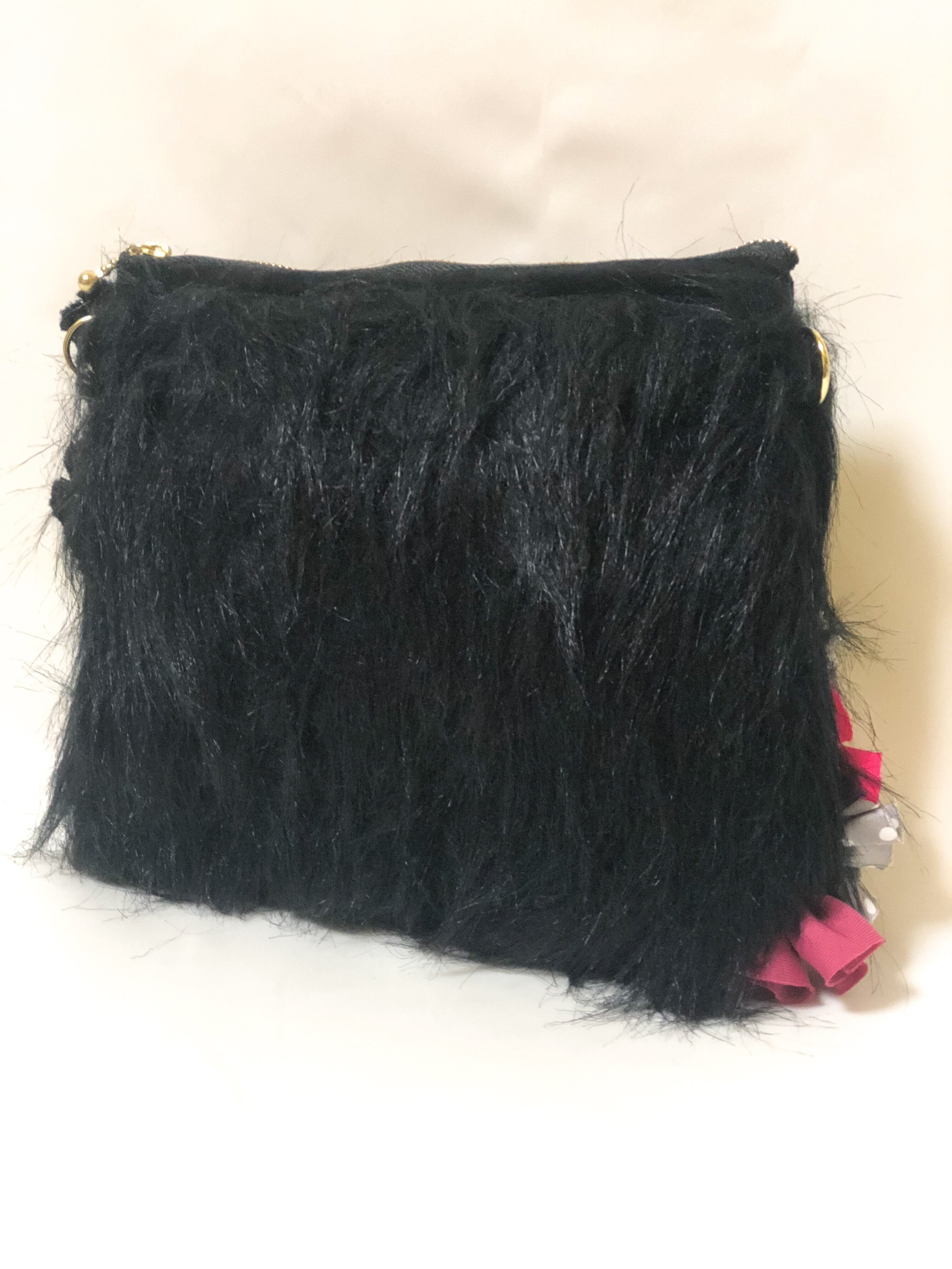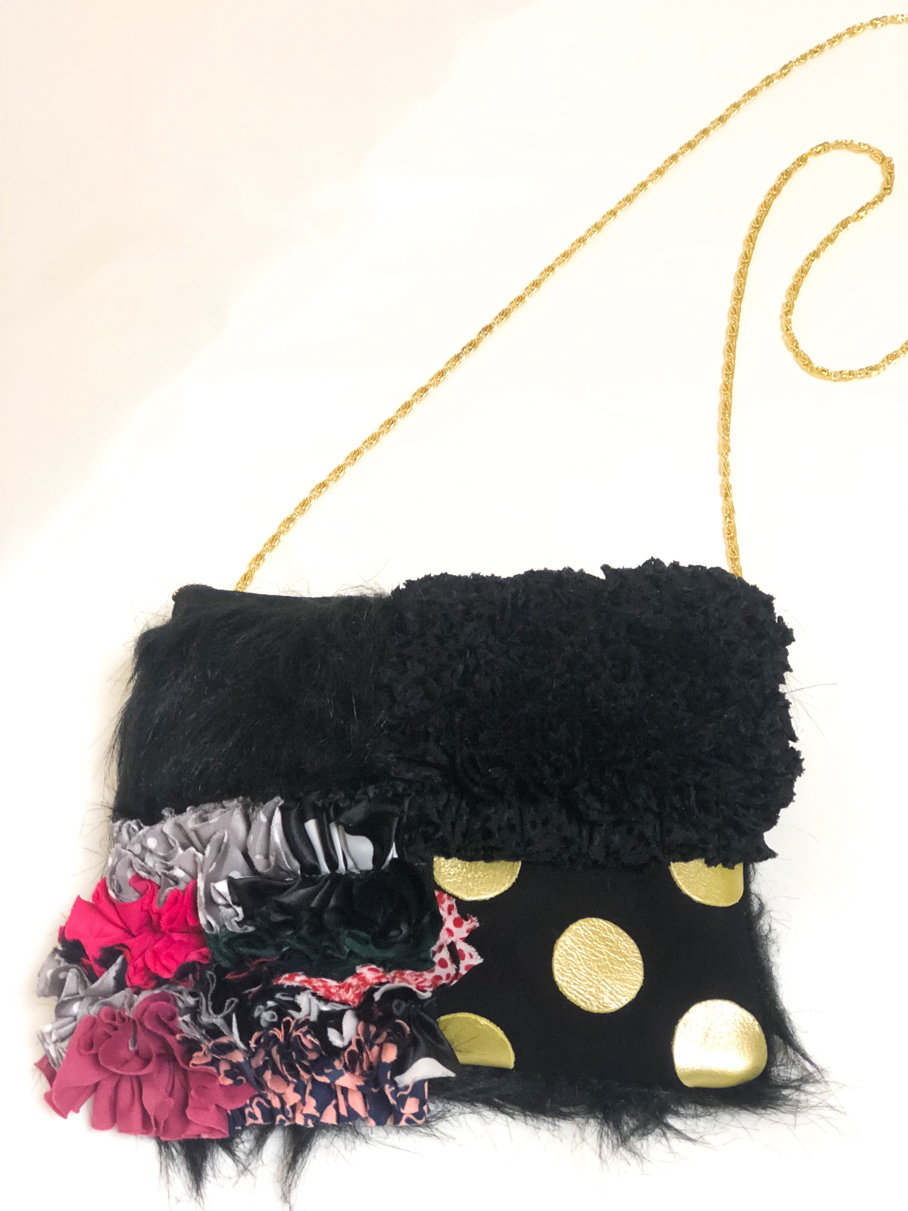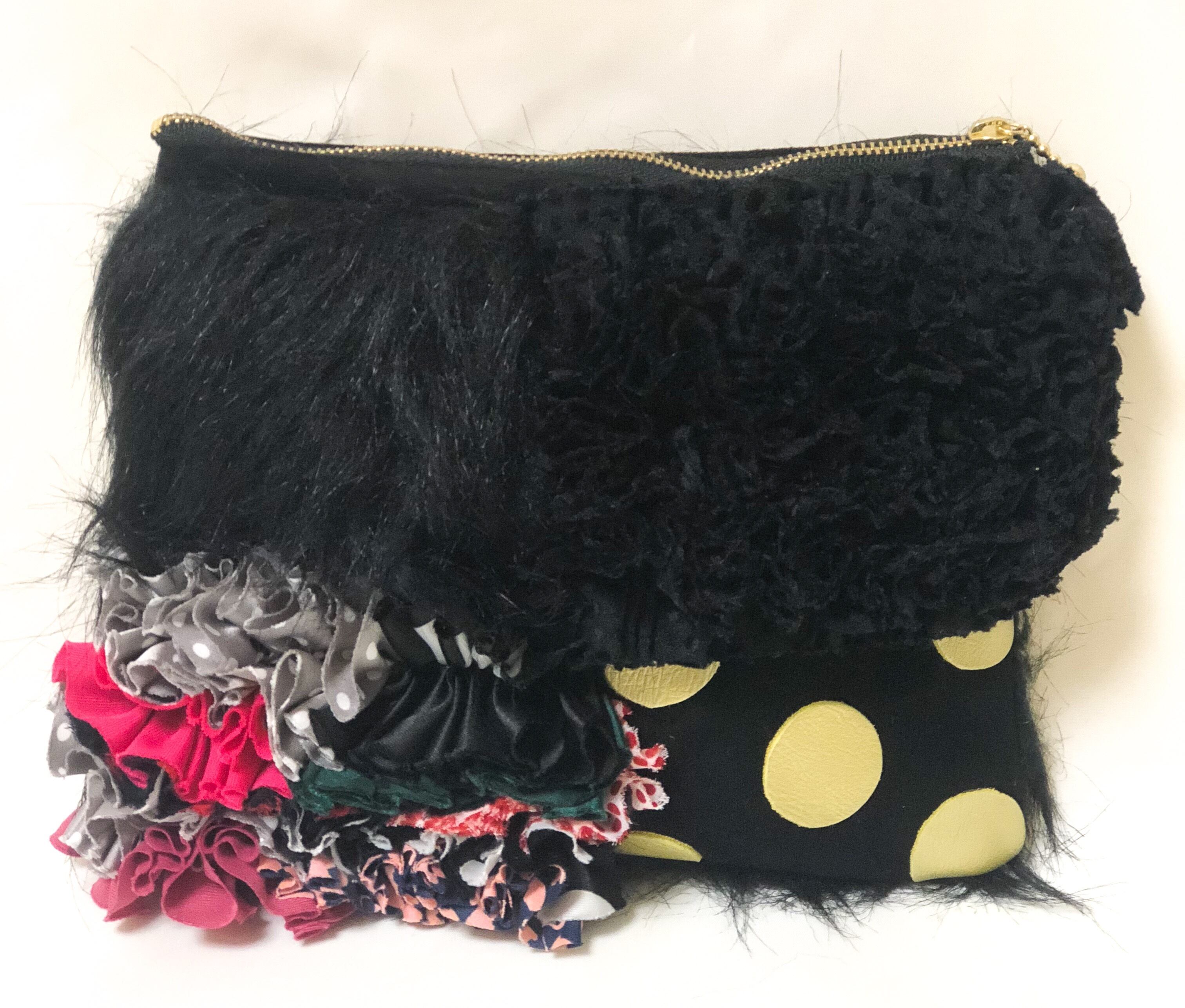 様々な素材とフリルを贅沢にパッチワークにしたシンプルとは真逆のデコラティブなデザインのポーチ。取り出した時に気分が上がるアイテムです。