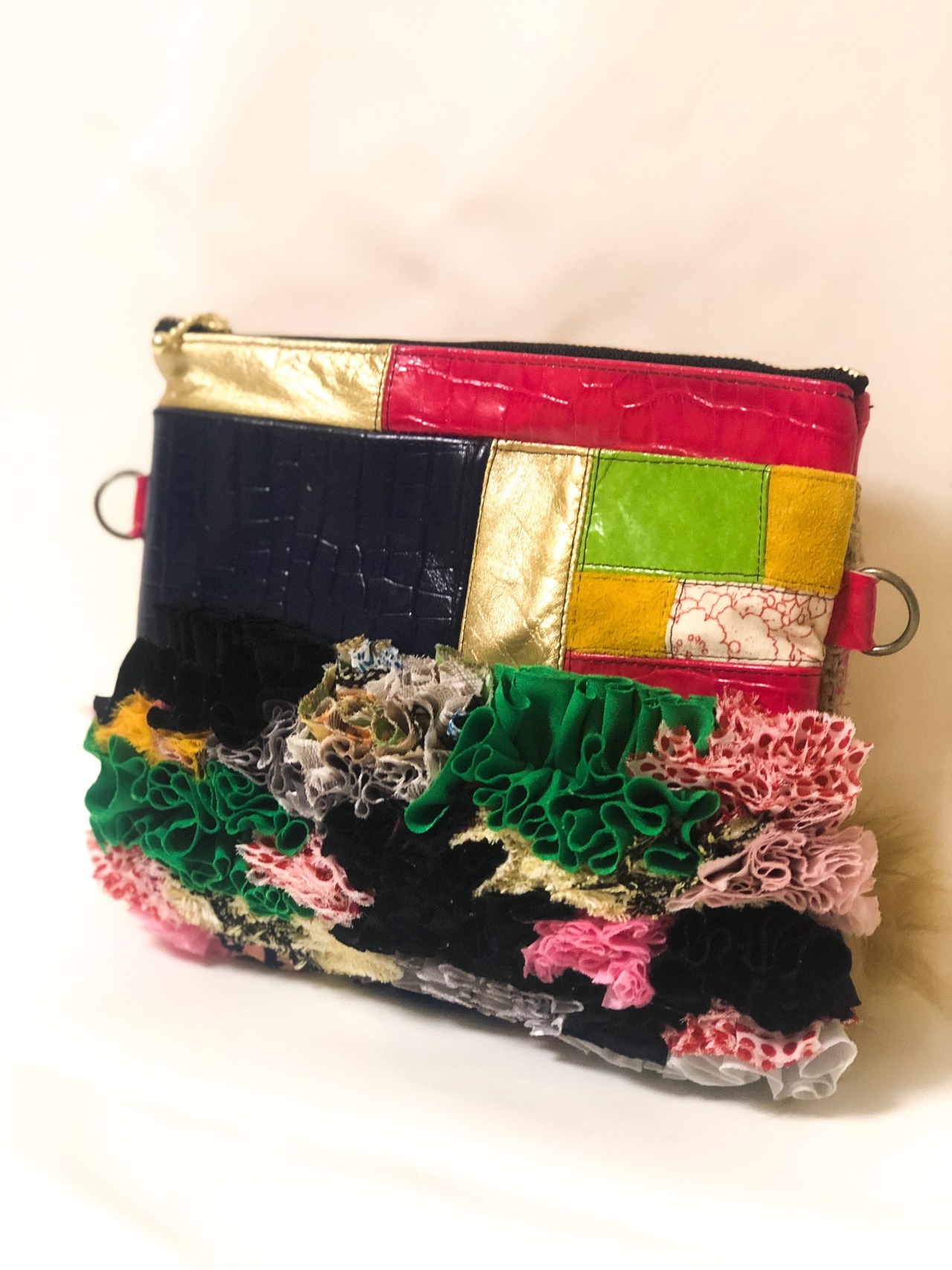 パッチワークポーチ/LTPWP-08#MIXフリル*ファー