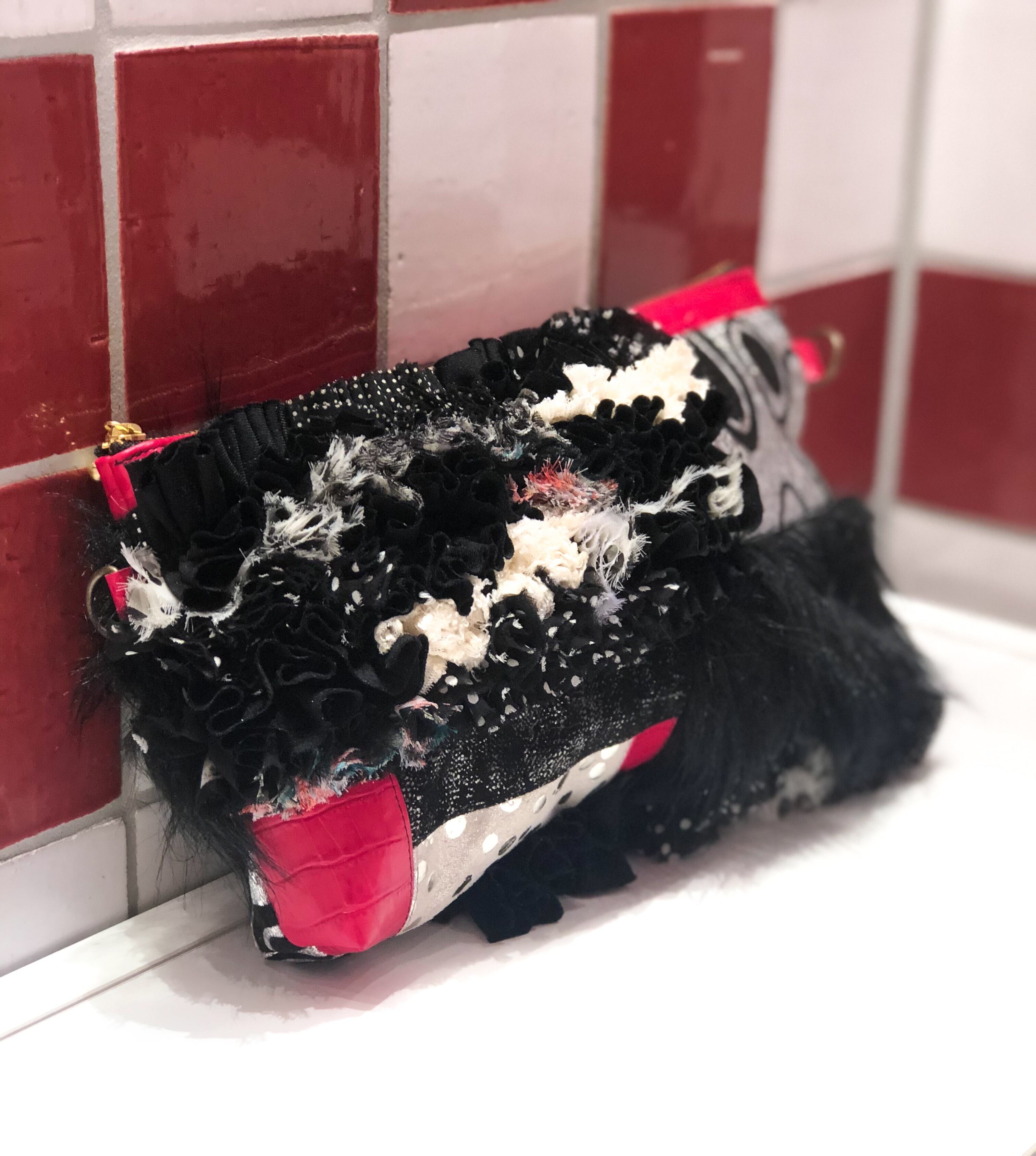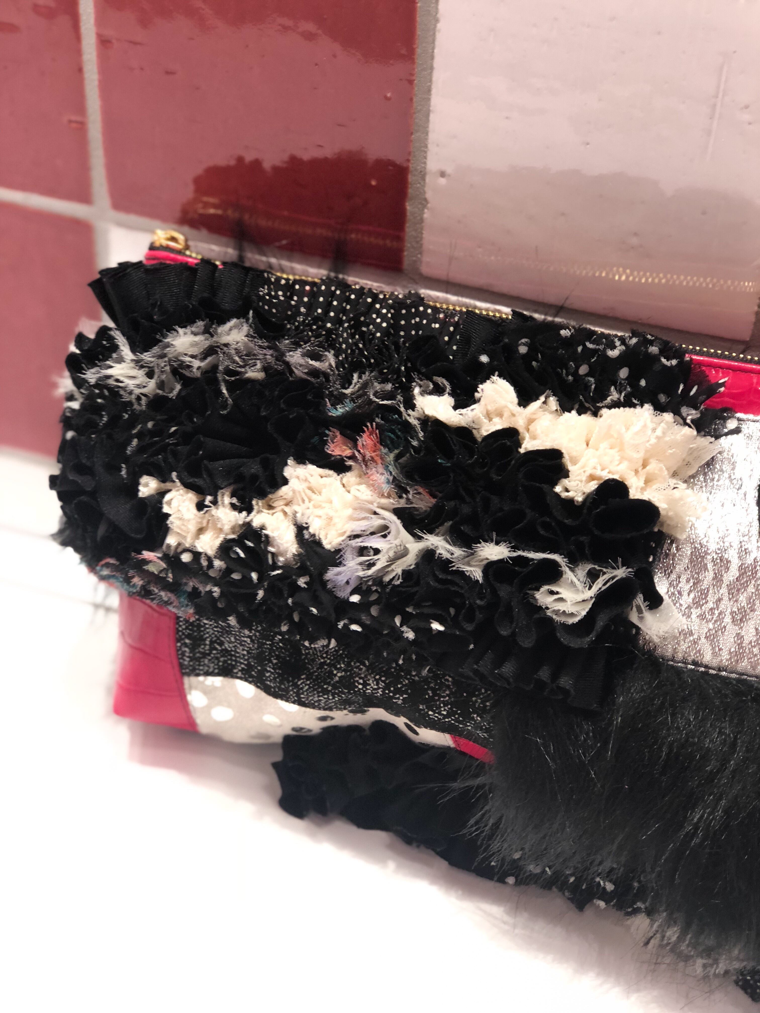 パッチワークポーチ/LTPWP-10#シルバー*フリルMIX/ファー