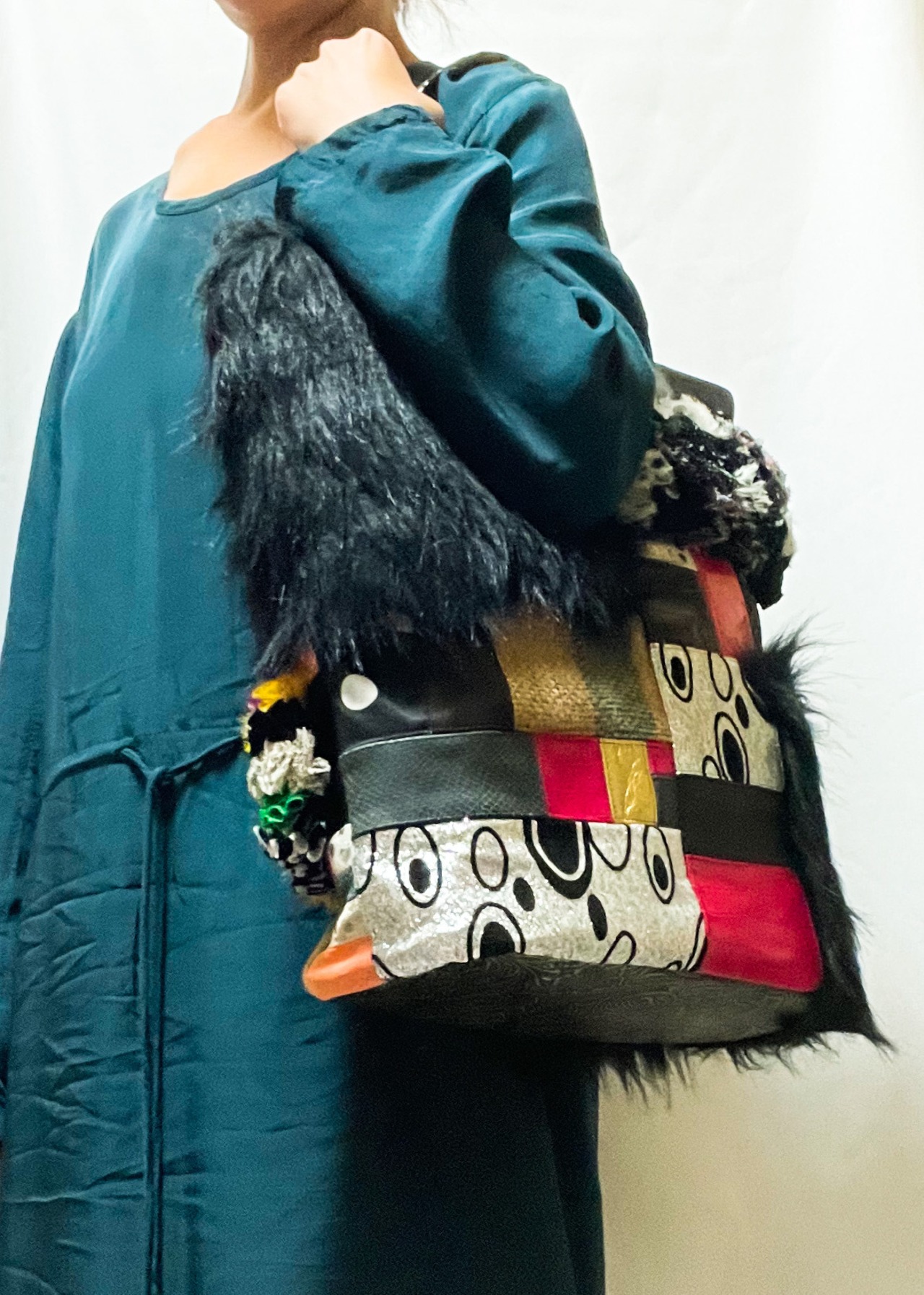 サスティナブル パッチワークバッグ*エコファー/LTPB-06