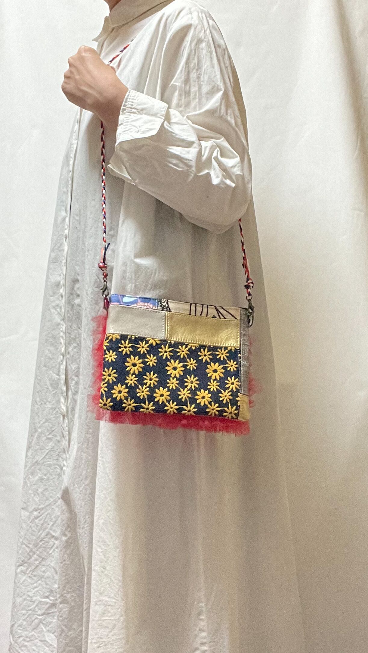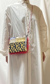 また前と後ろでデザインが異なり取り外し可能の紐ショルダーも付いているので、ポシェットやクラッチとしてのコーディネートも楽しんでいただけます。