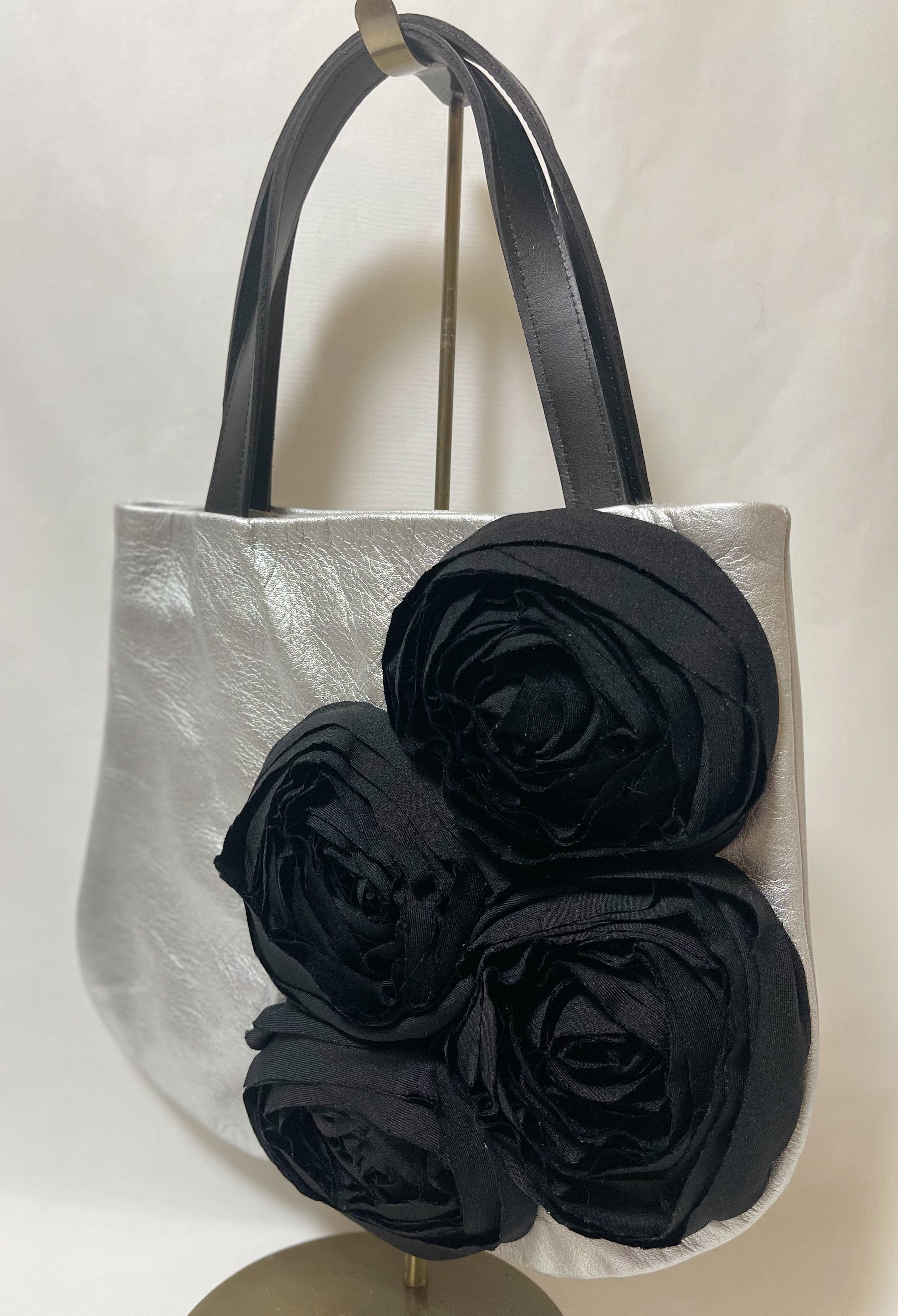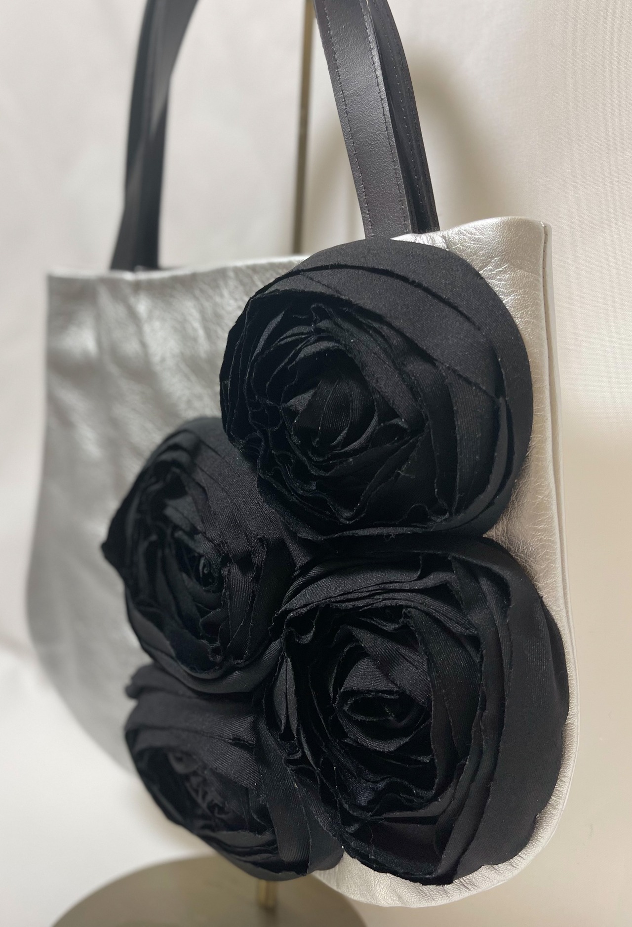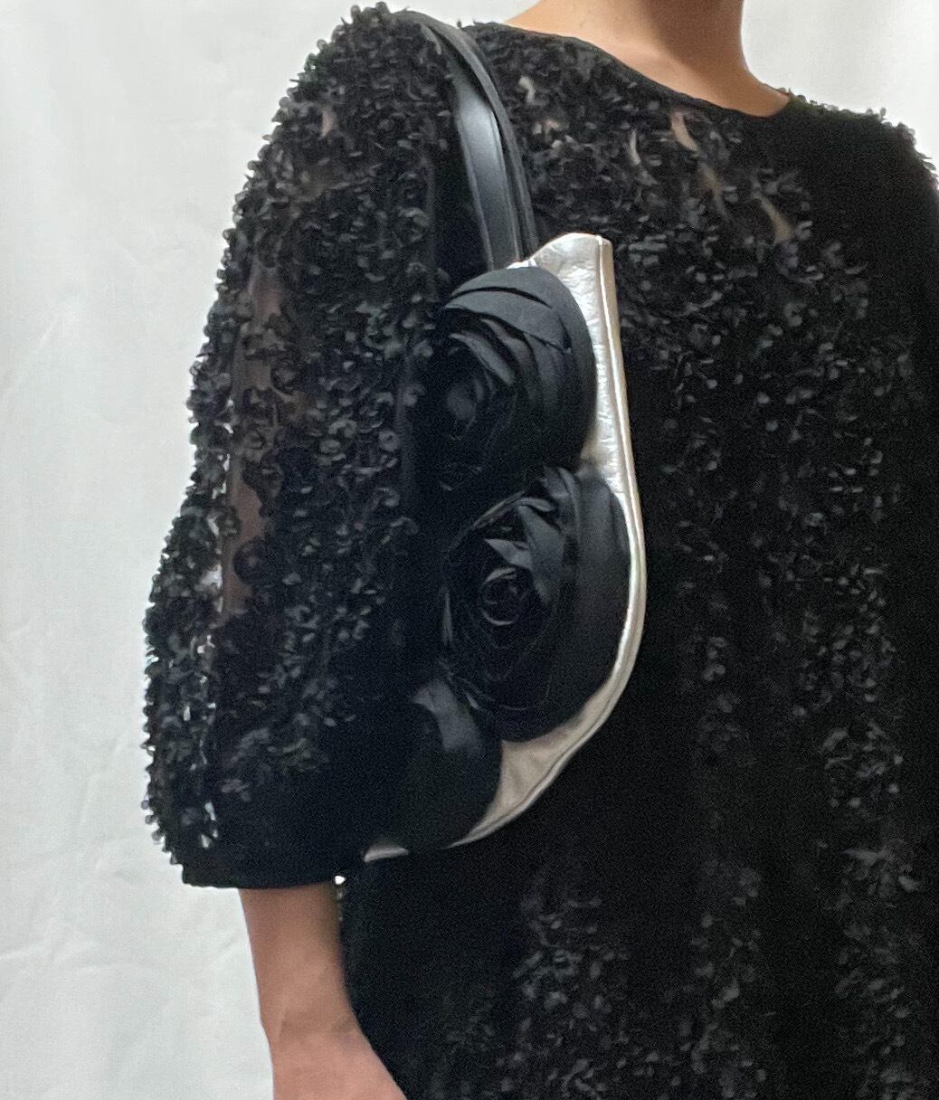 ボリュームのあるブラックローズがアイコンのレザータイプのトートバッグにミニタイプが登場です。