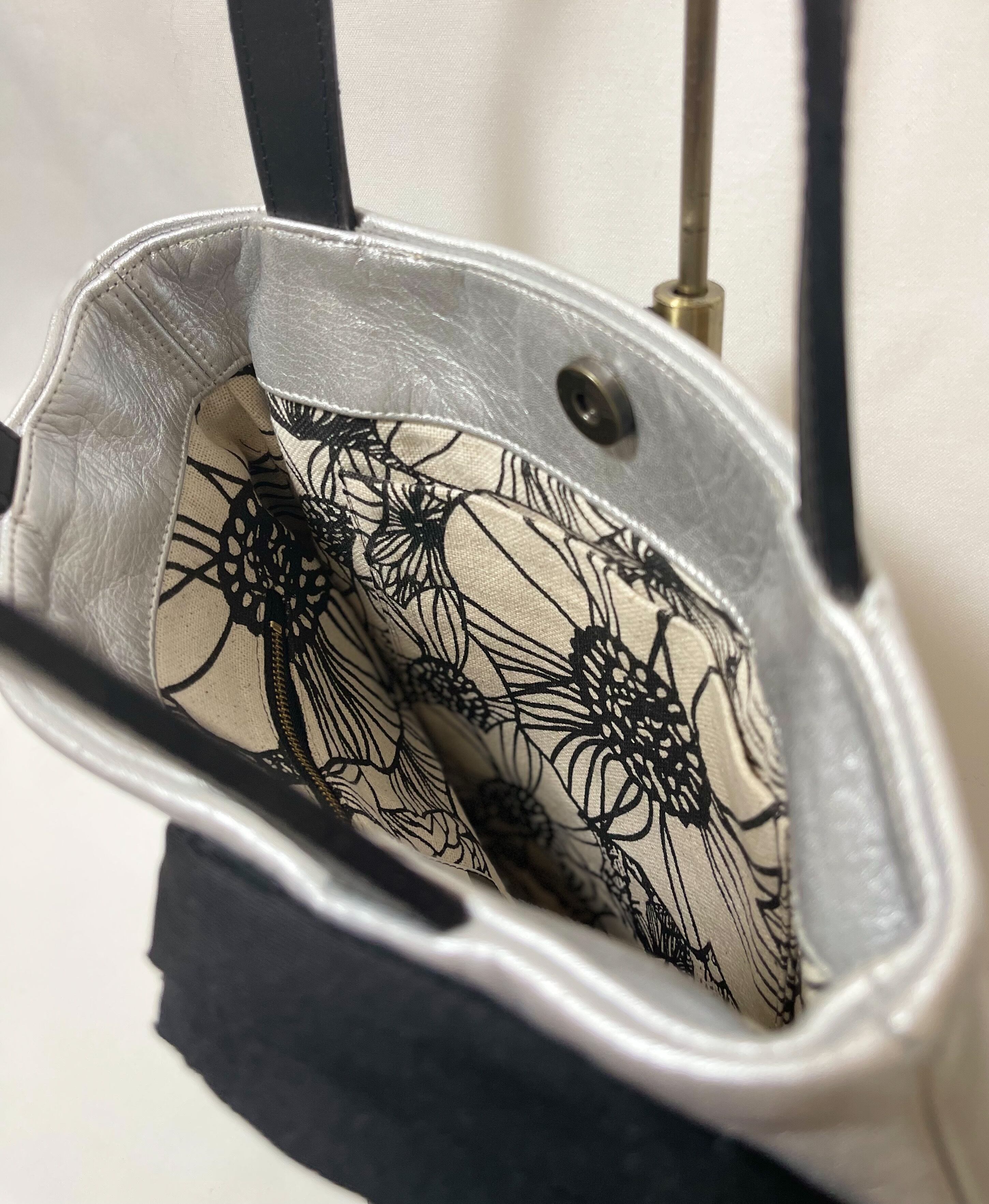 素材:牛革(表地、持ち手)ポリエステル100%(お花部分)コットン(裏地)