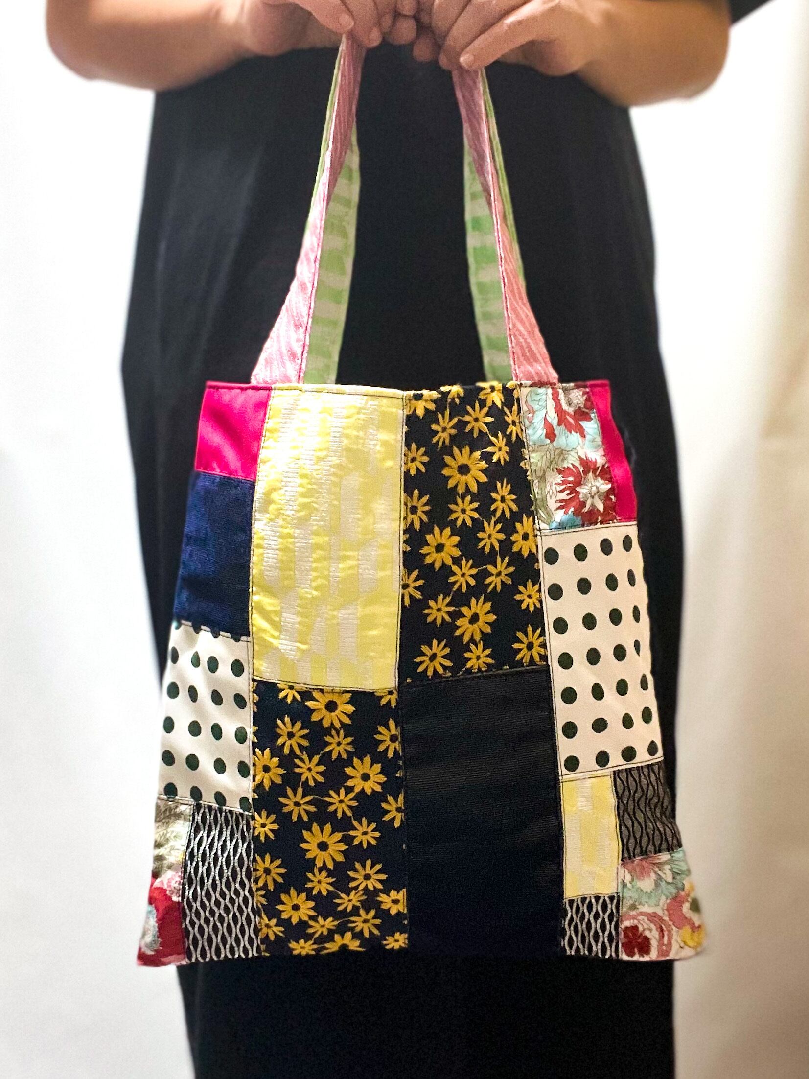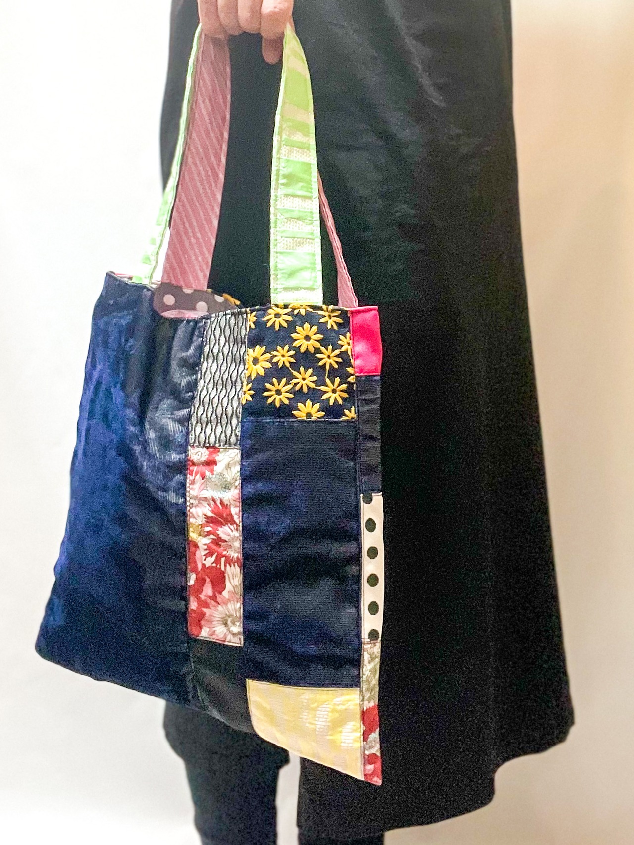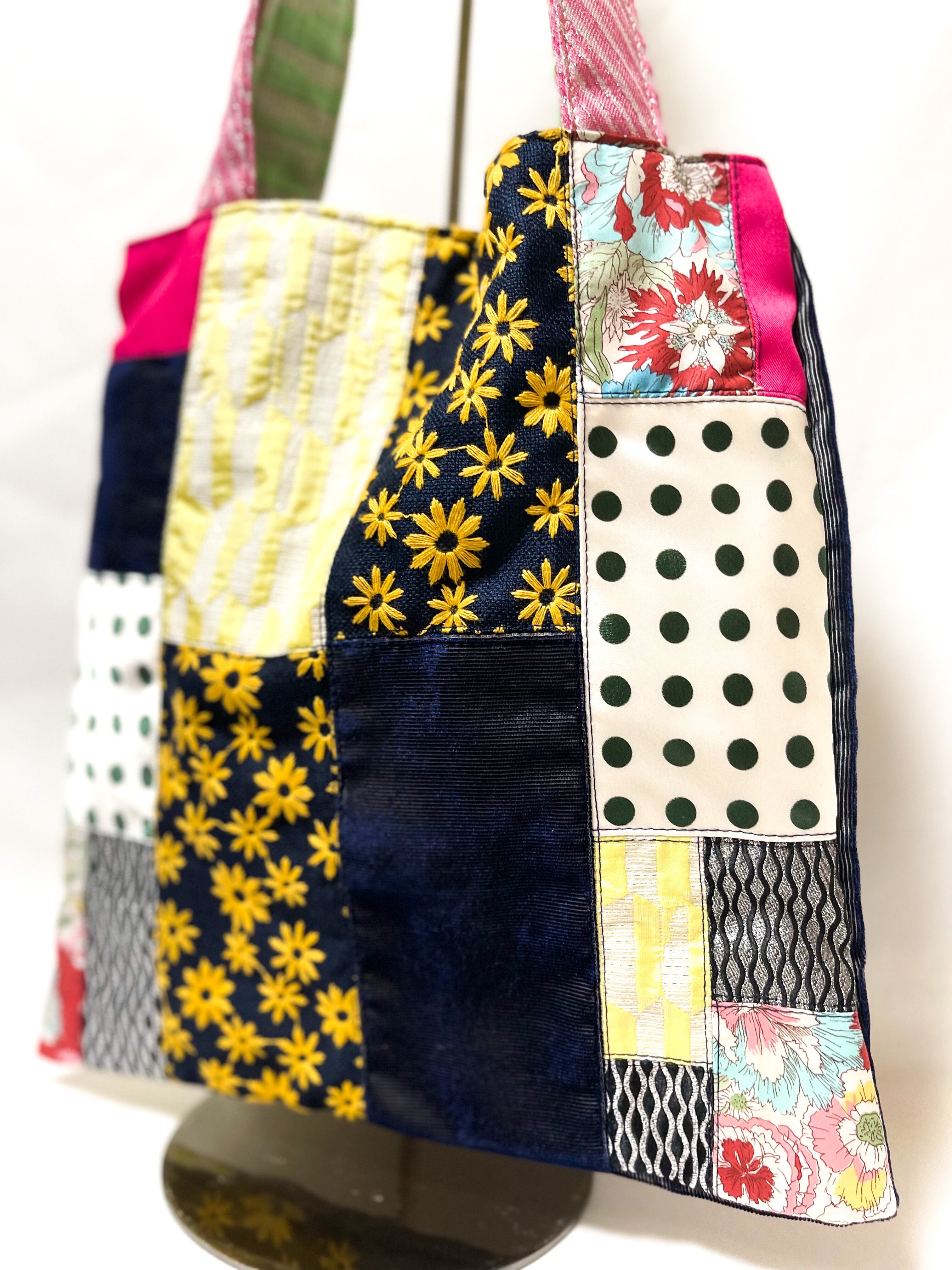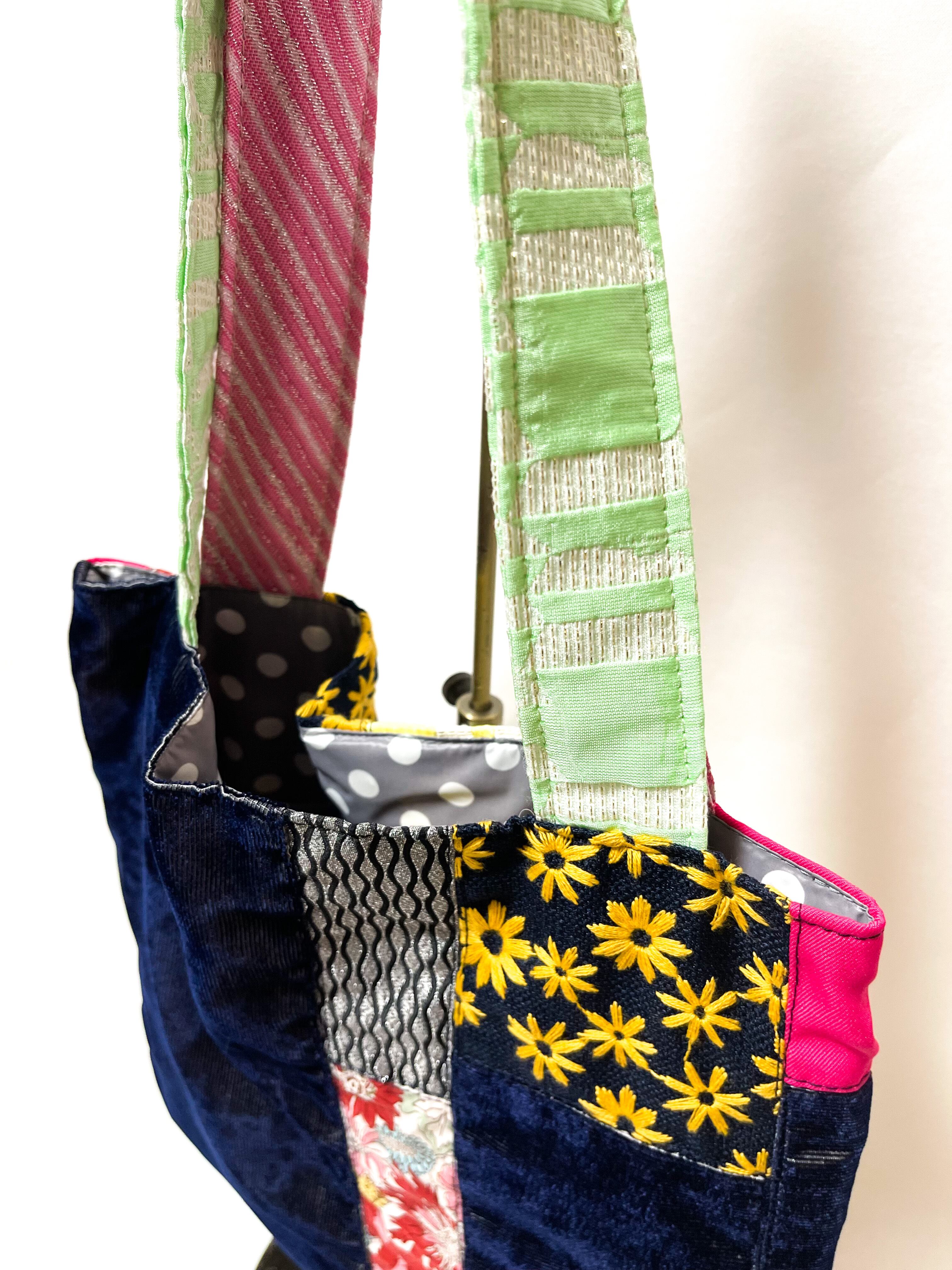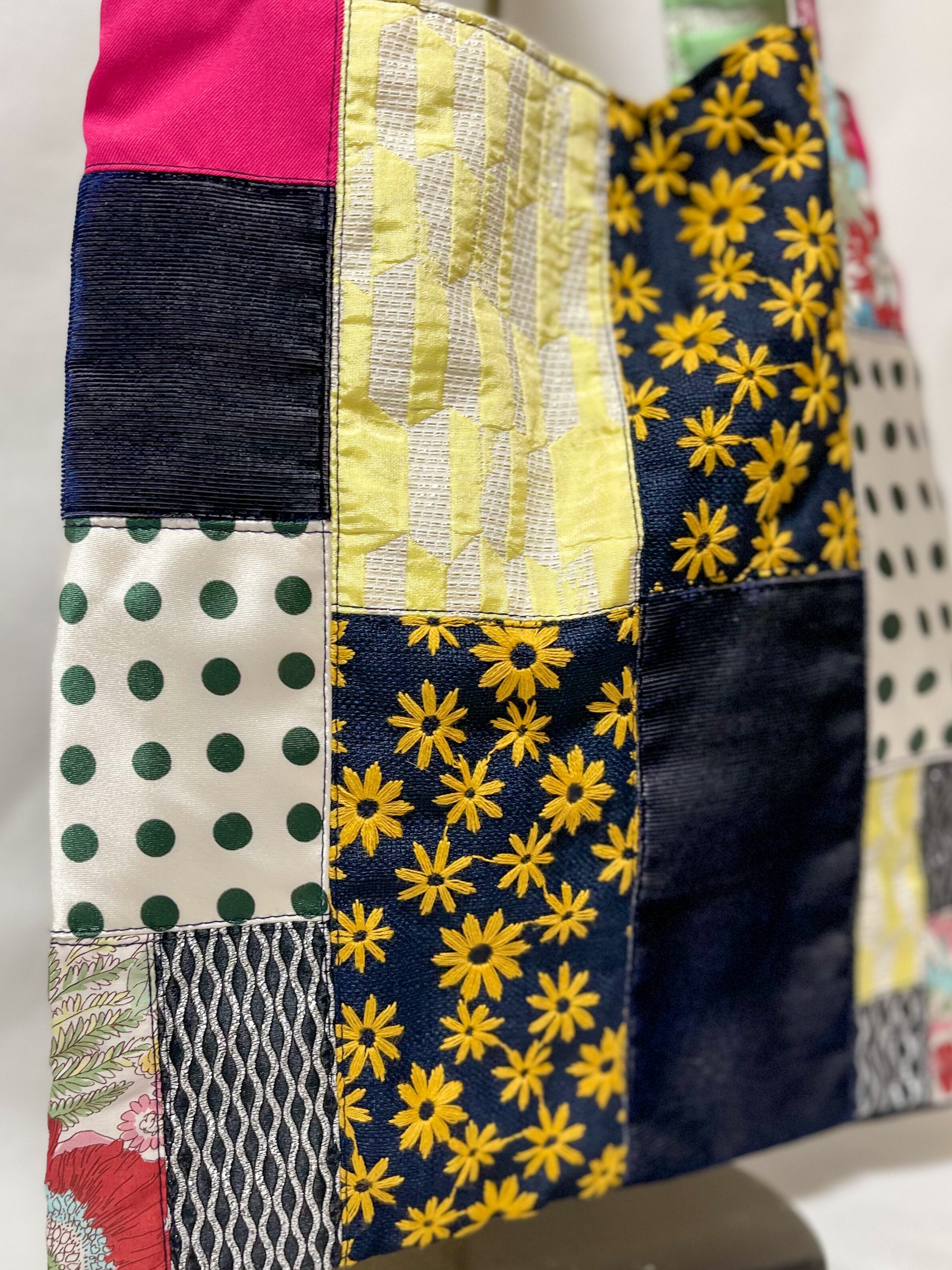 エコバッグSサイズ・ サスティナブルパッチワーク#ネイビー*キイロver ②