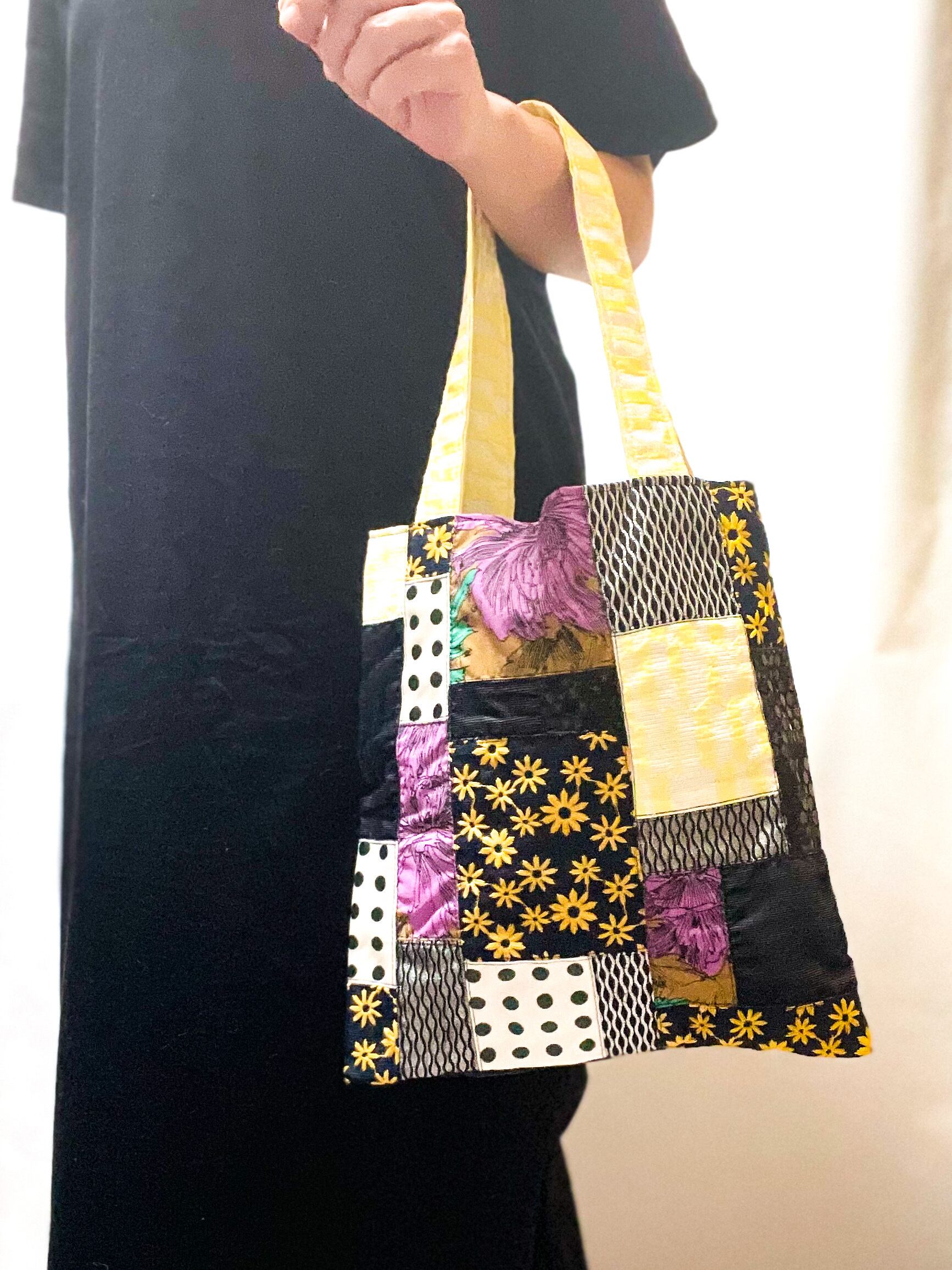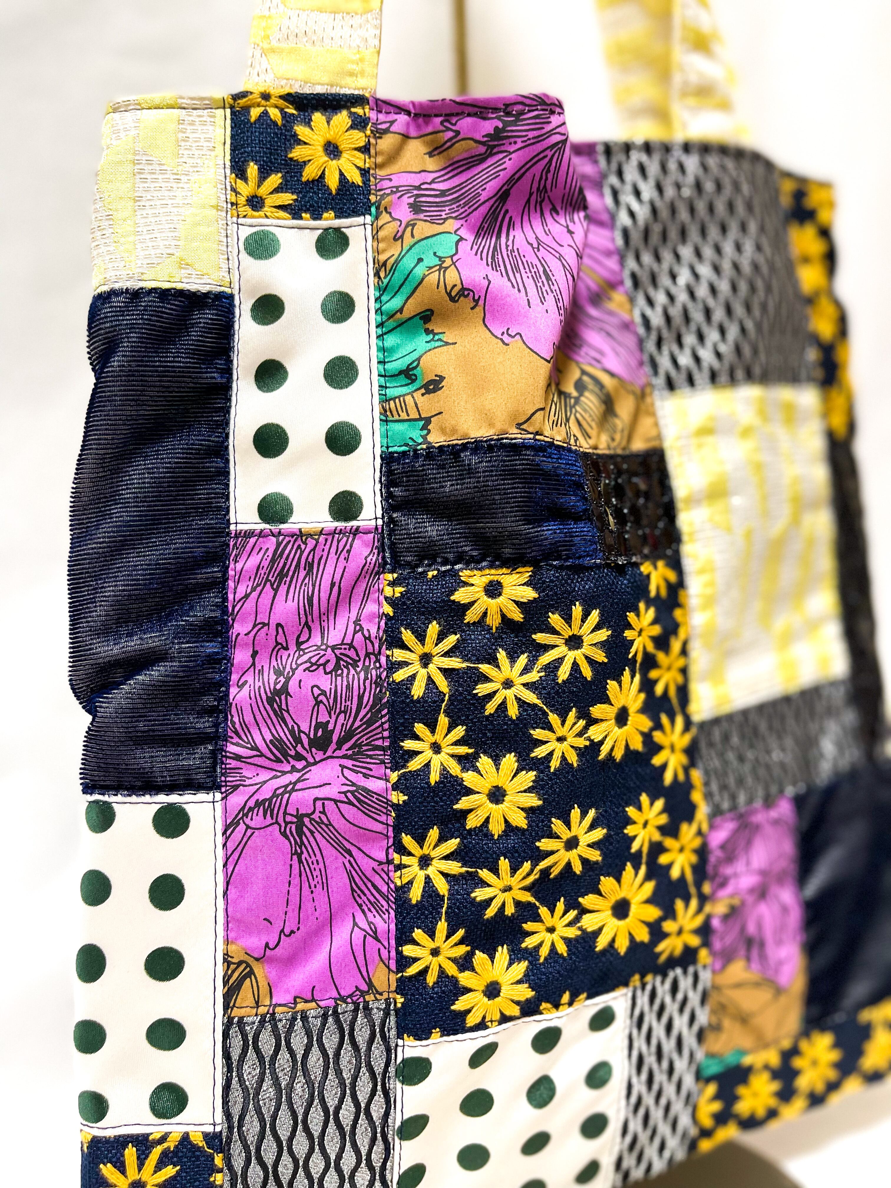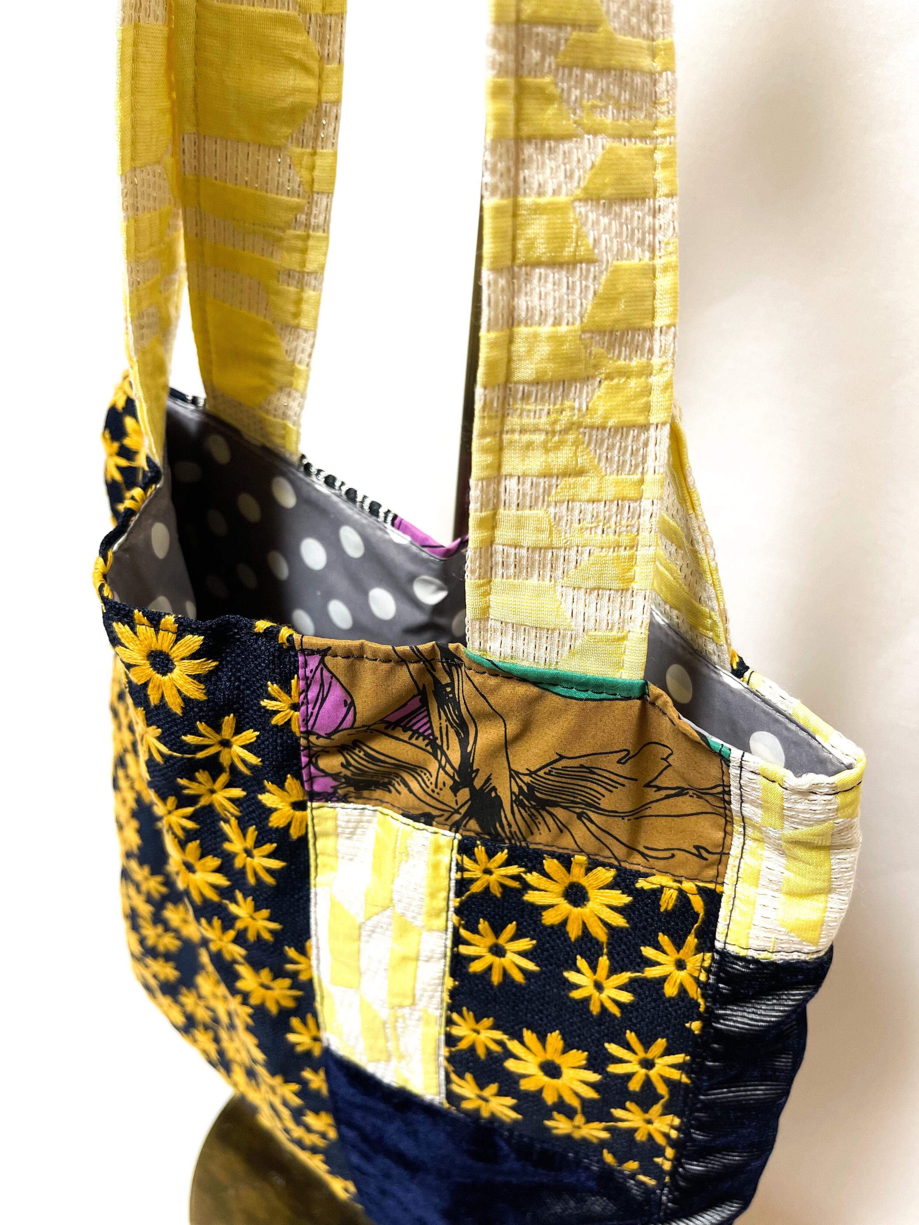 エコバッグSサイズ・ サスティナブルパッチワーク#キイロ*ネイビーver ④