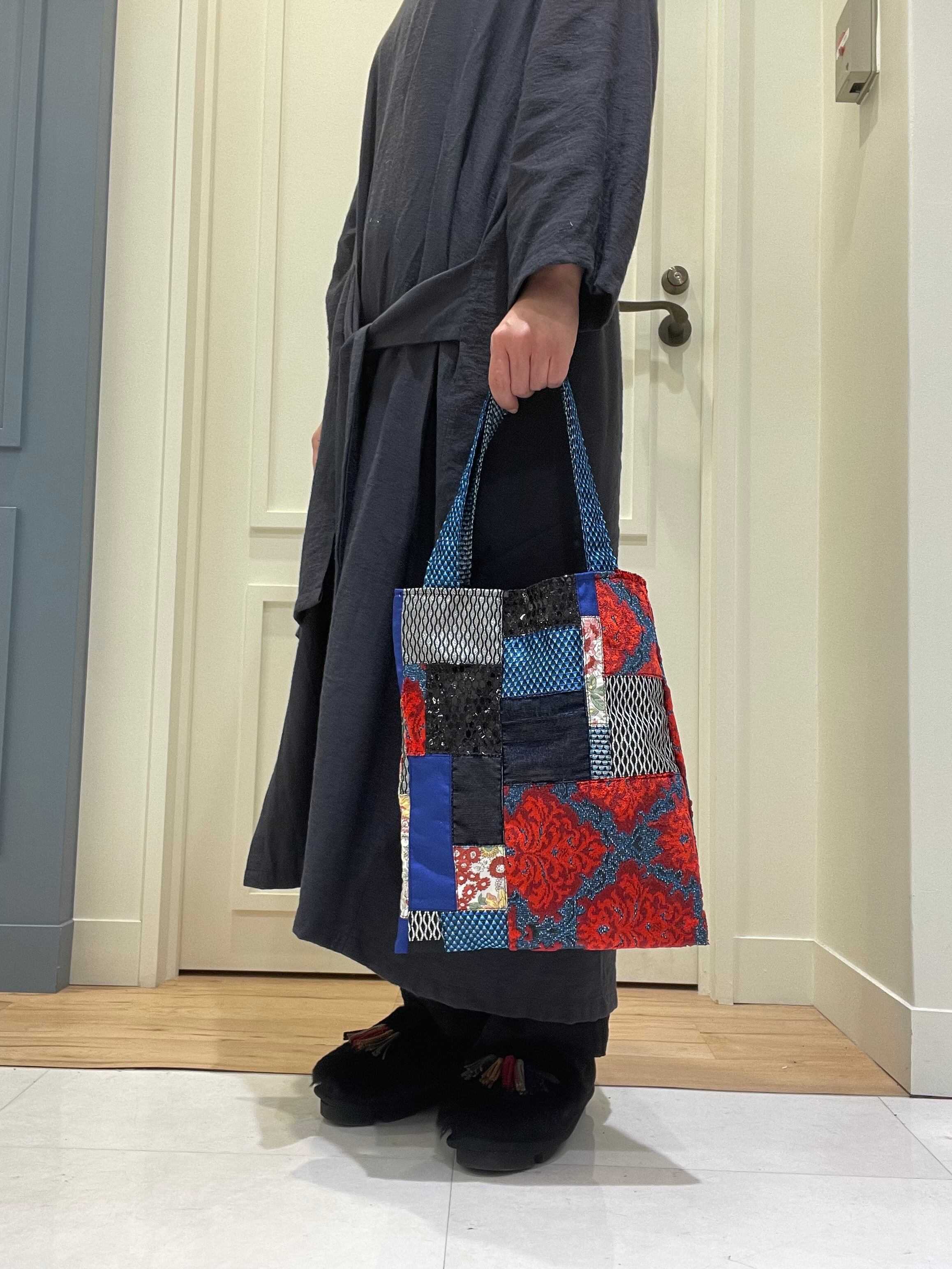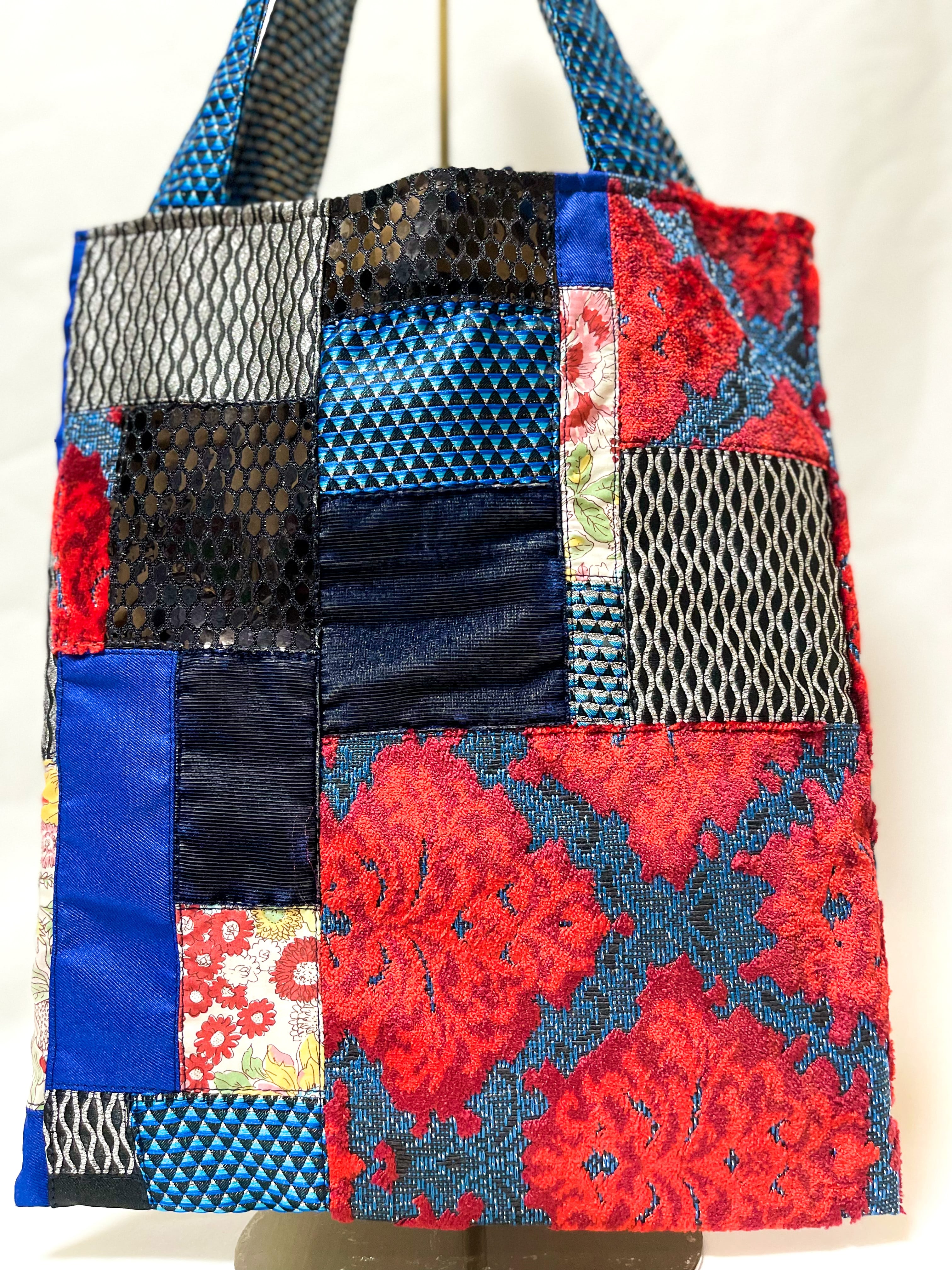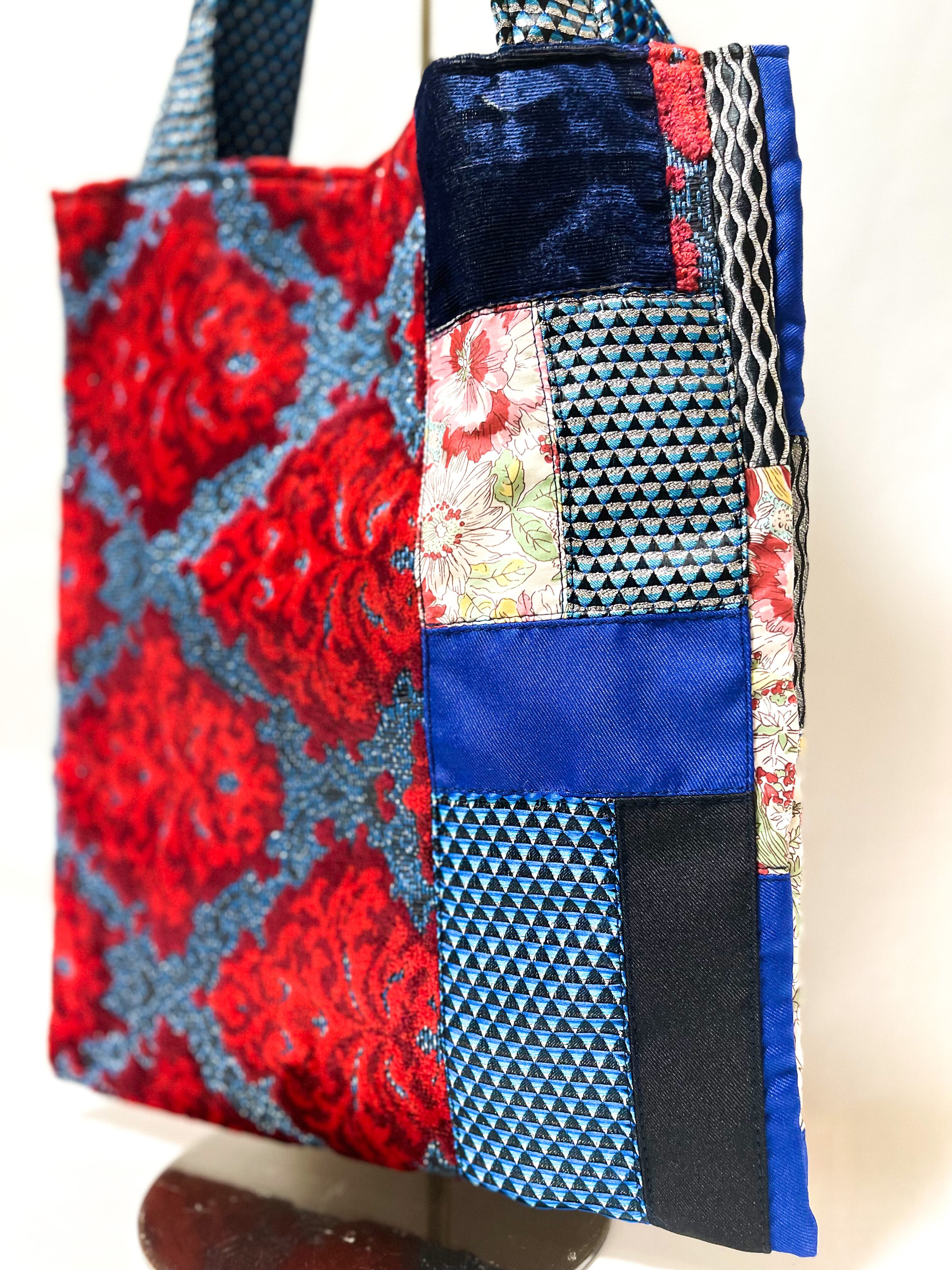 エコバッグSサイズ・ サスティナブルパッチワーク#ブルー*レッドver ⑤