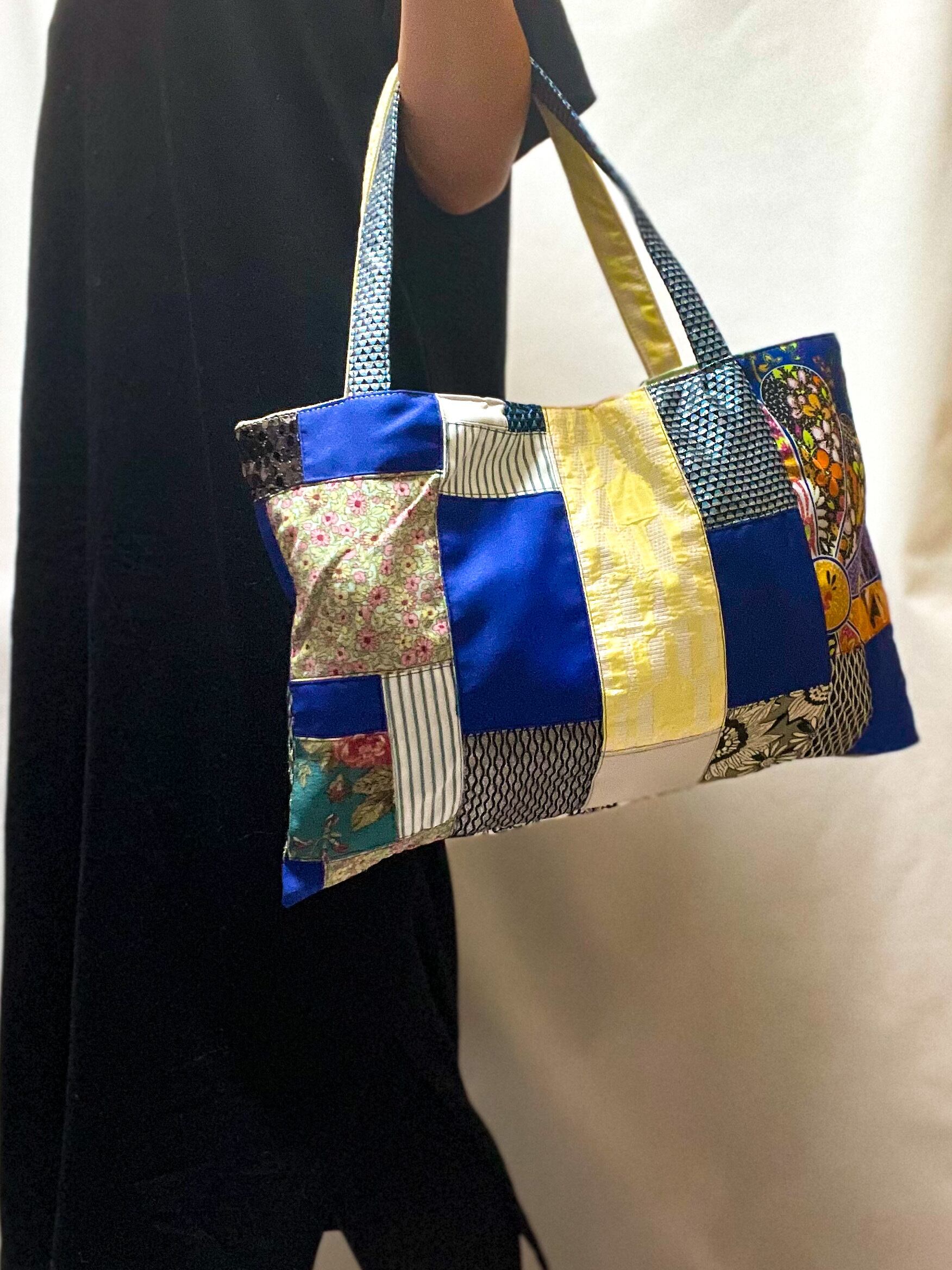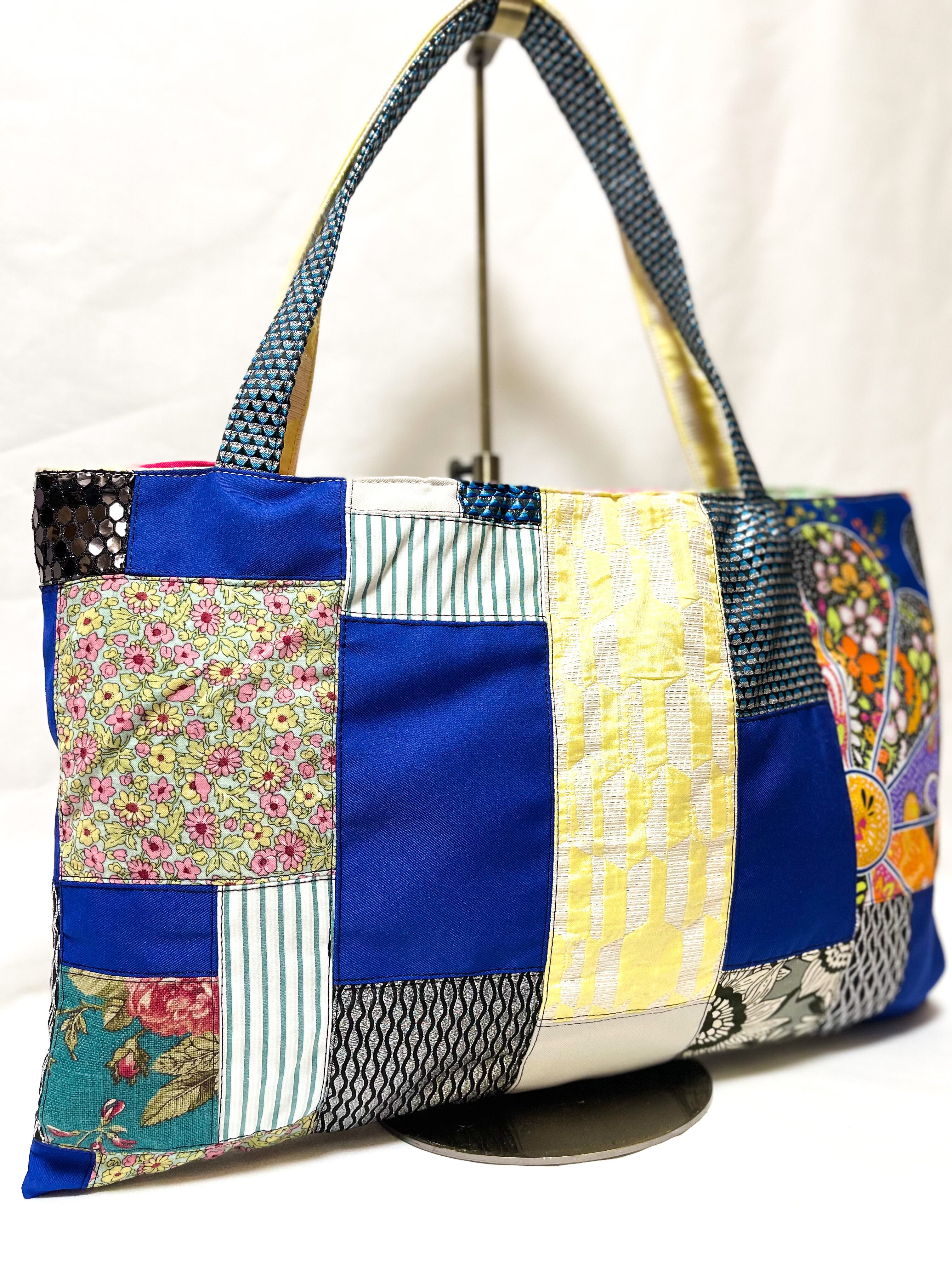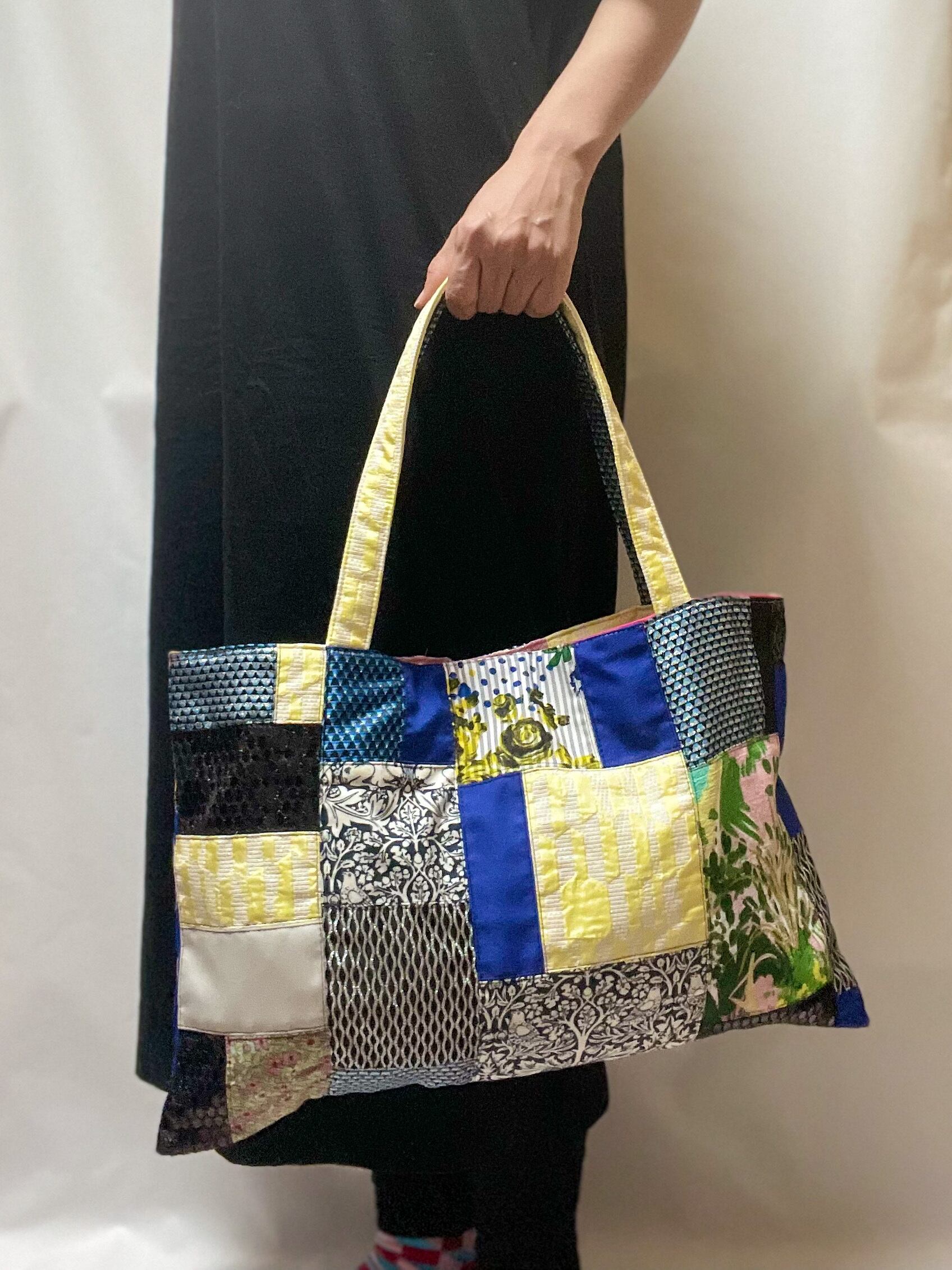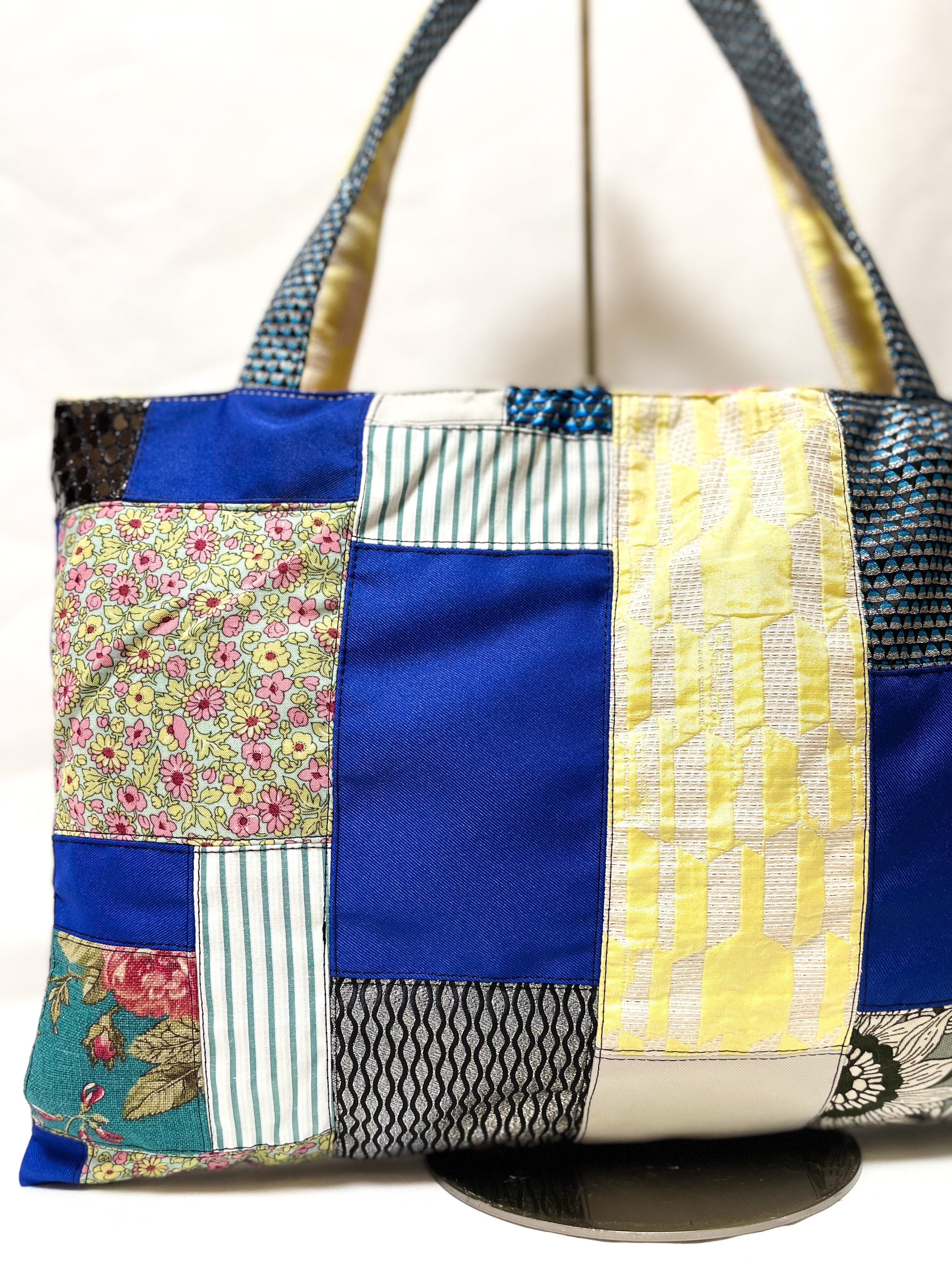 エコバッグMサイズ ・サスティナブルパッチワーク#ブルー*キイロver ④