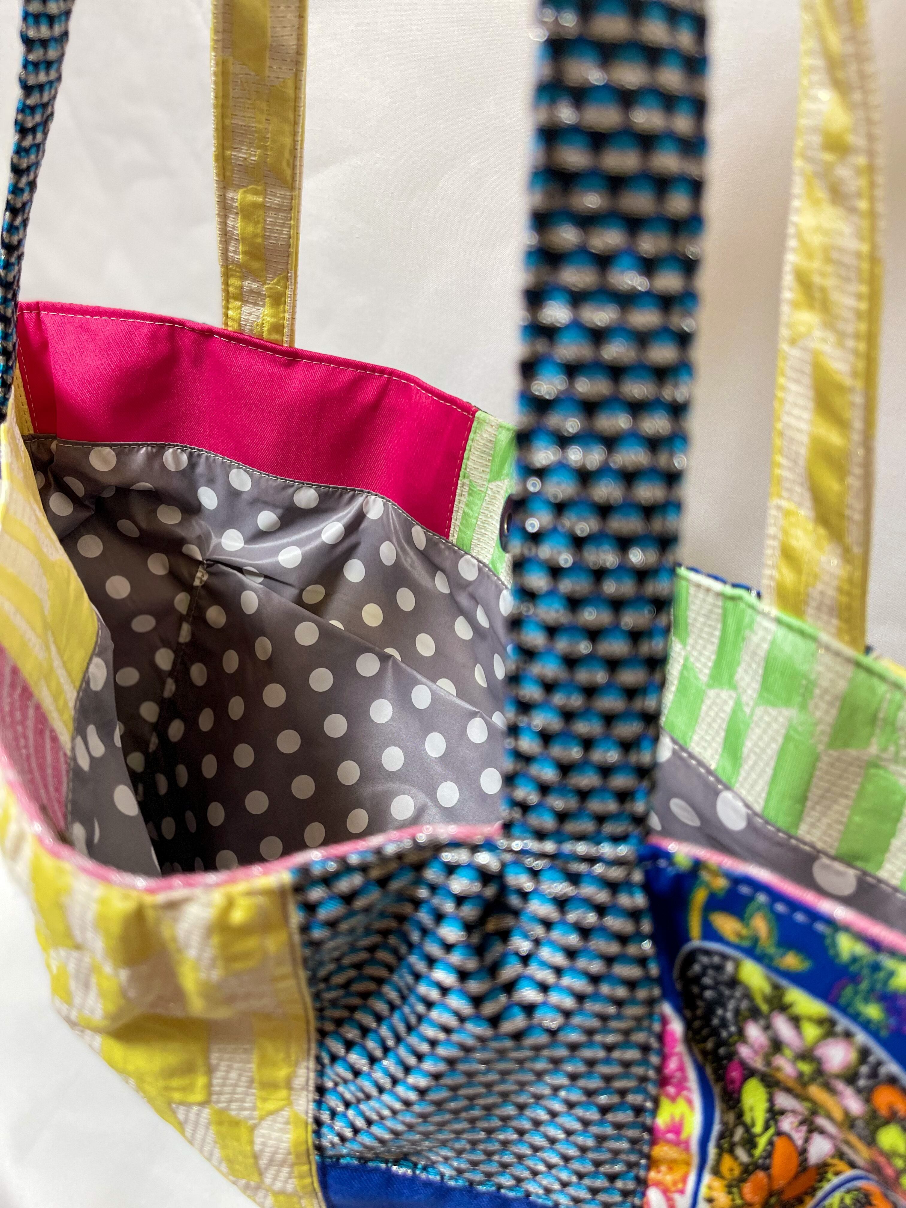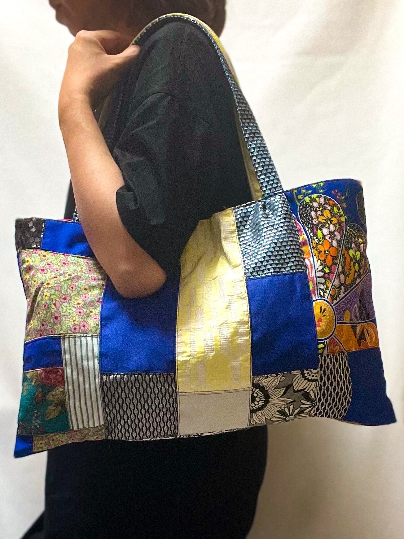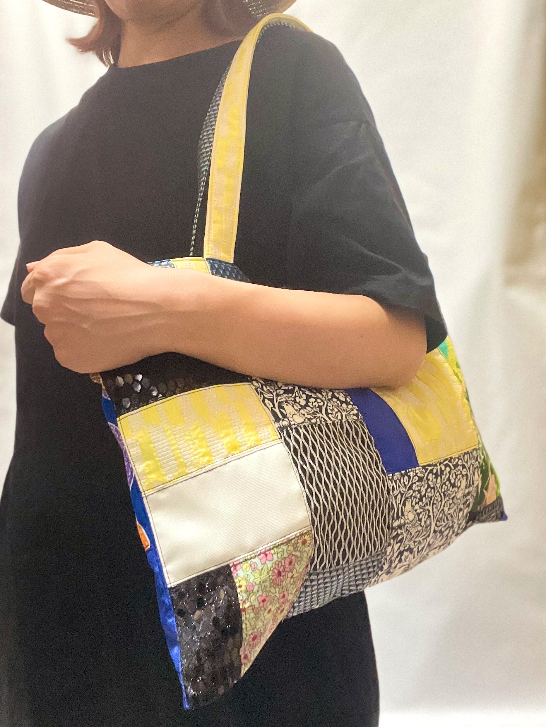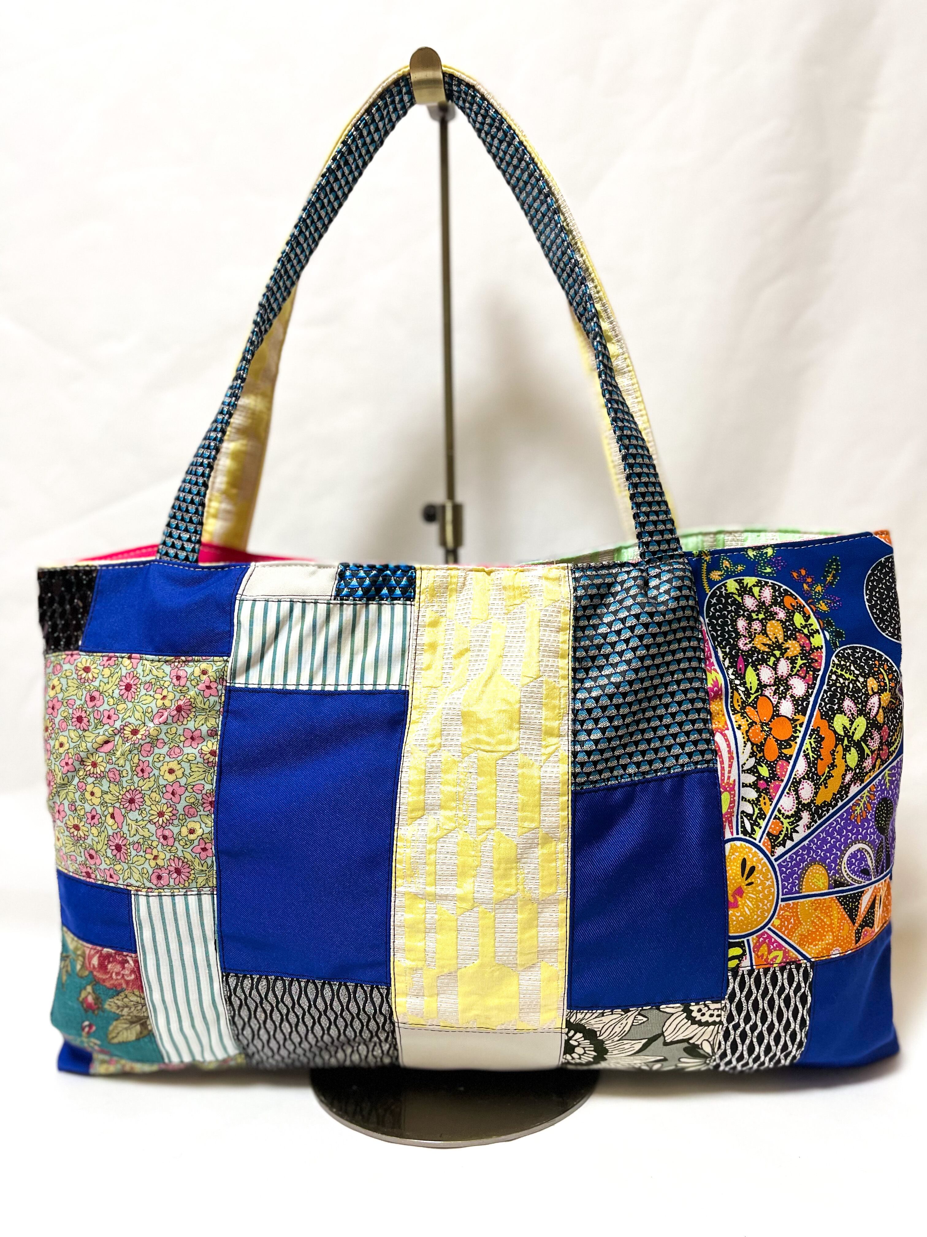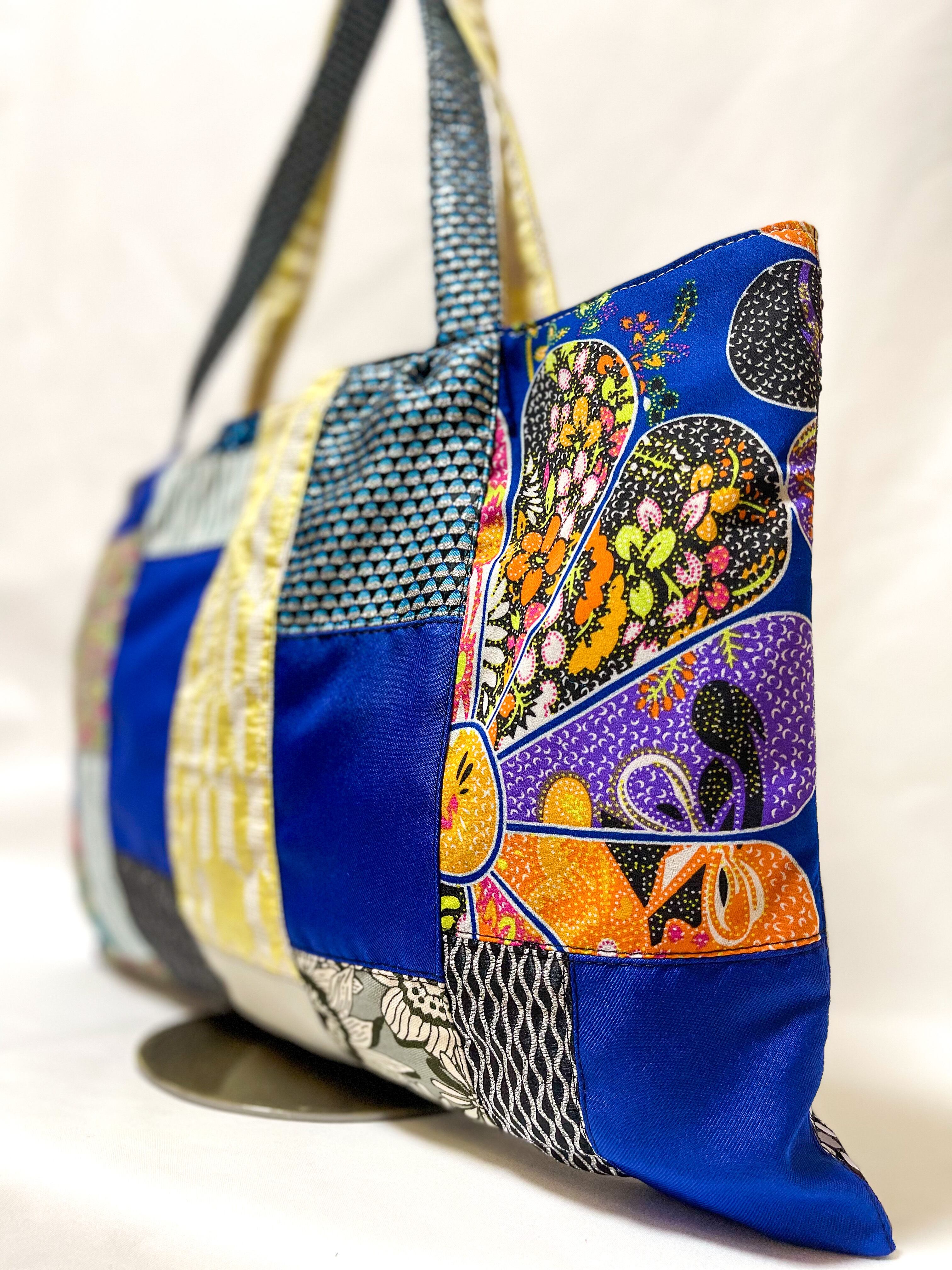 エコバッグMサイズ ・サスティナブルパッチワーク#ブルー*キイロver ④