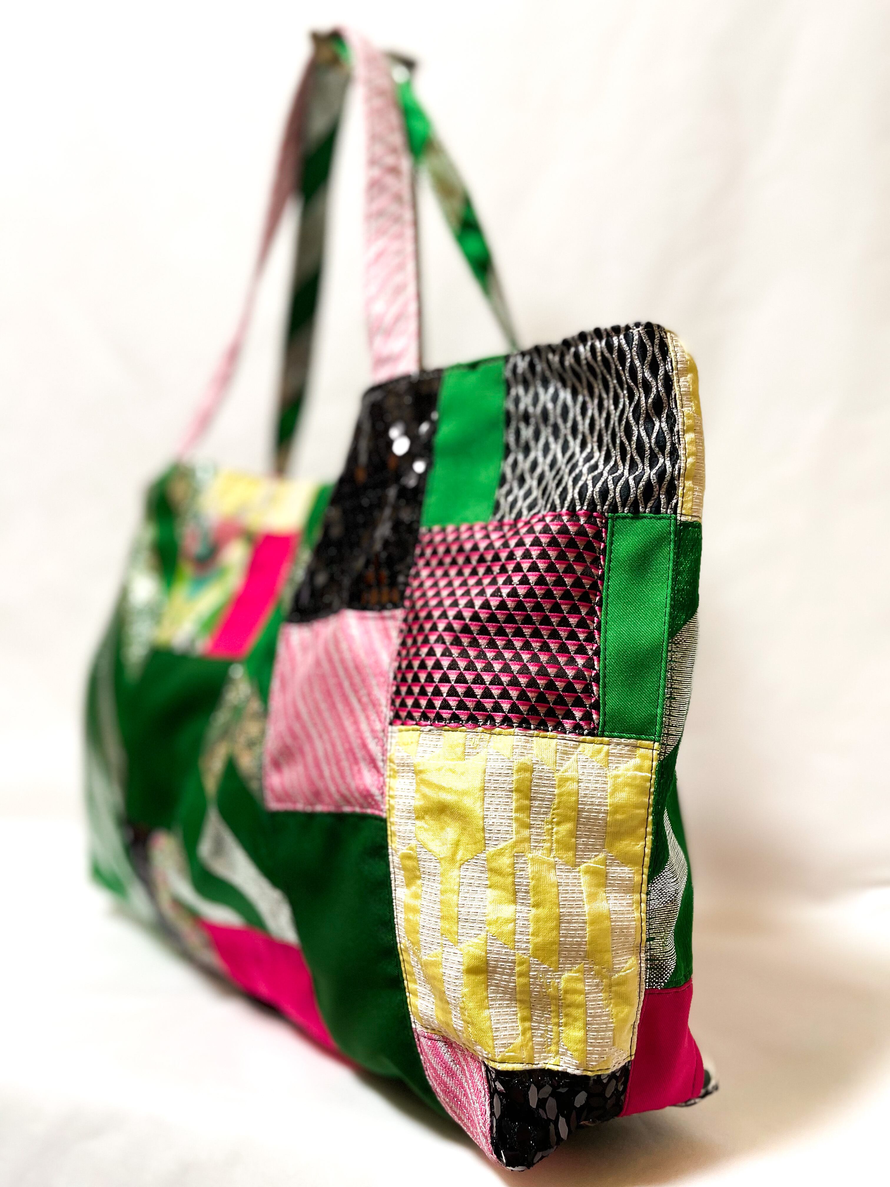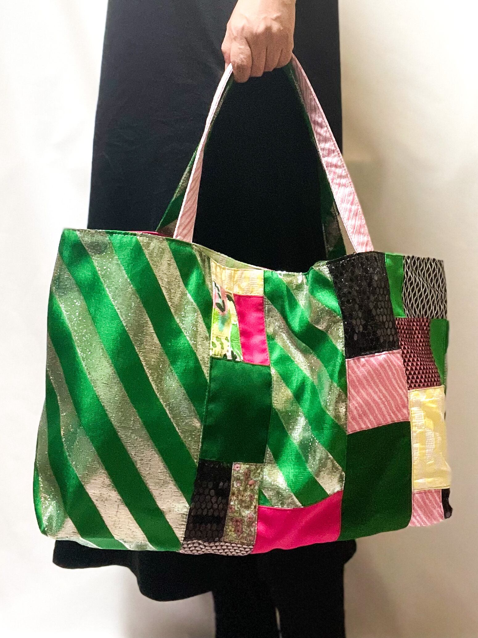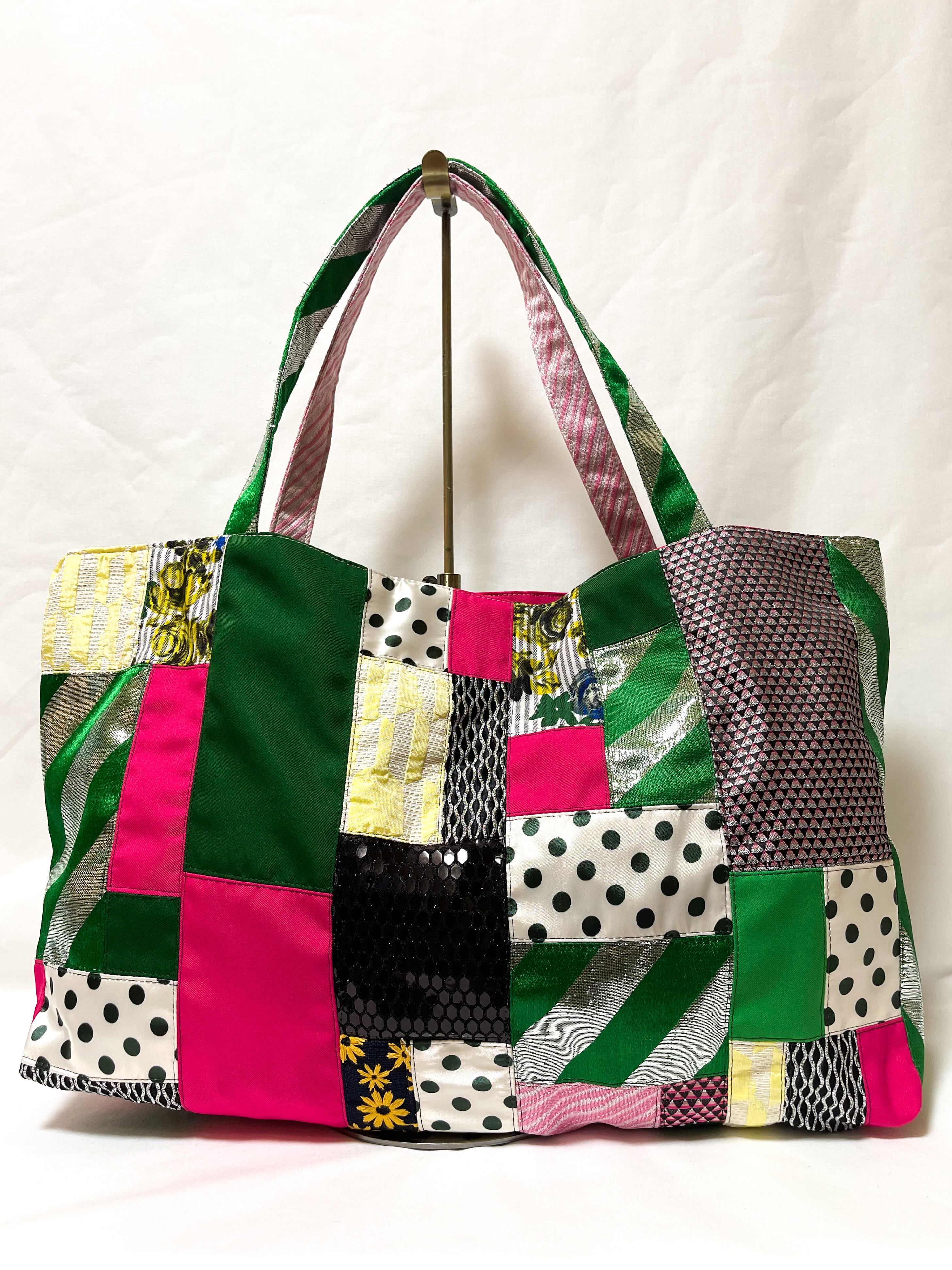 エコバッグLサイズ・サスティナブルパッチワーク #グリーン*ピンクMix ③