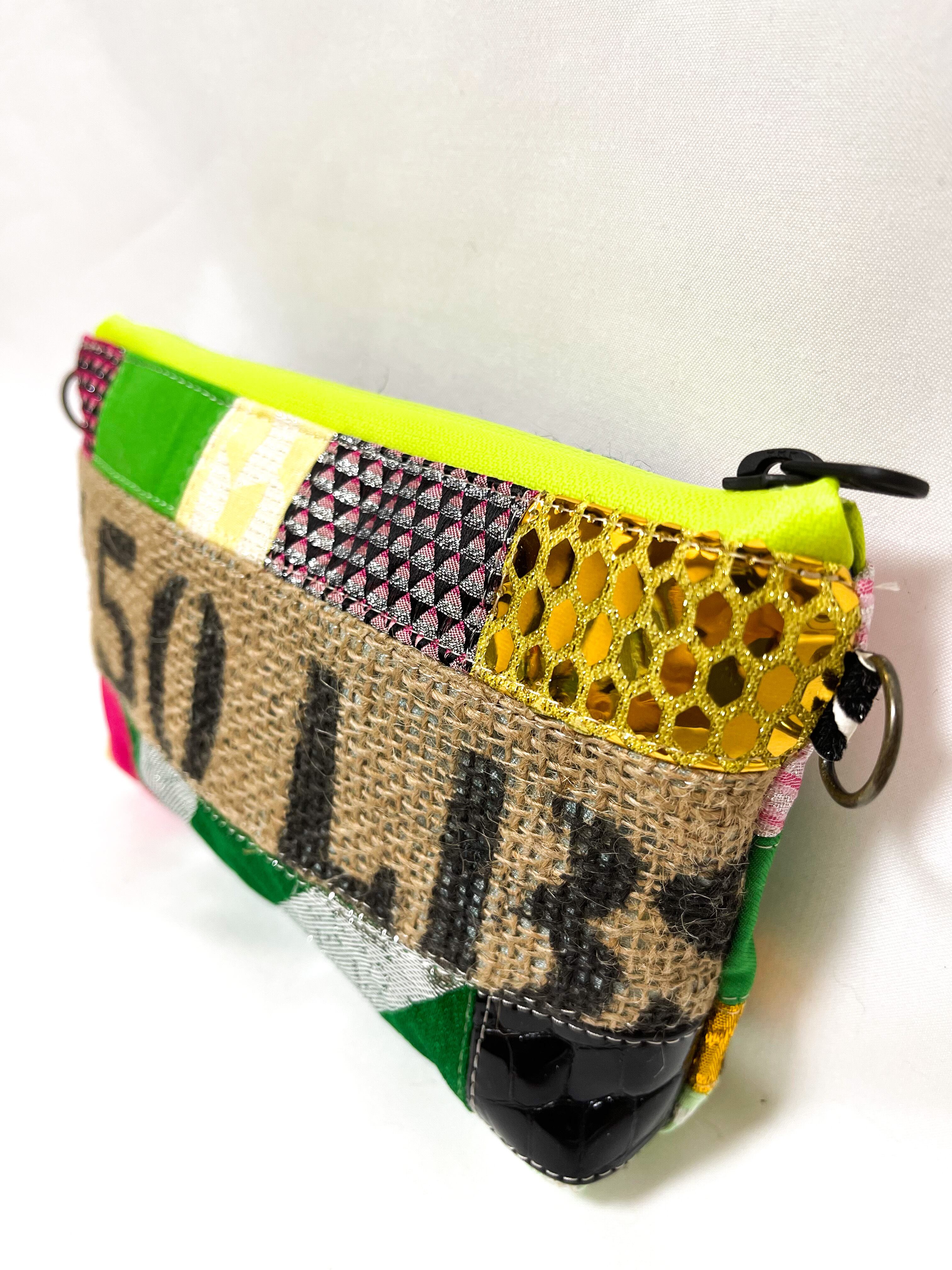 サスティナブルパッチワークポーチMサイズ ①#キイロMix / チェーン付き