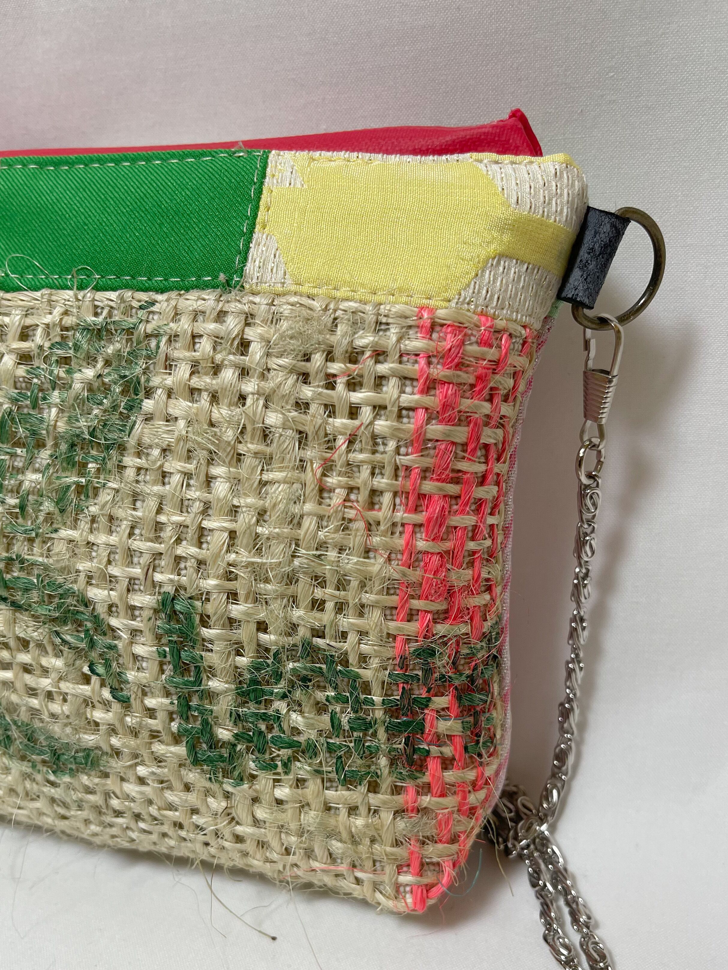 サスティナブルパッチワークポーチMサイズ ③#レッドMix / チェーン付き