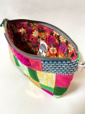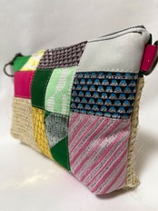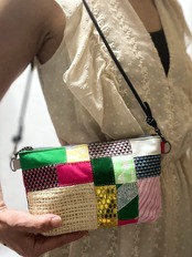 パッチワークポーチSサイズ ①#グリーン*キイロMix / レザーショルダー付き