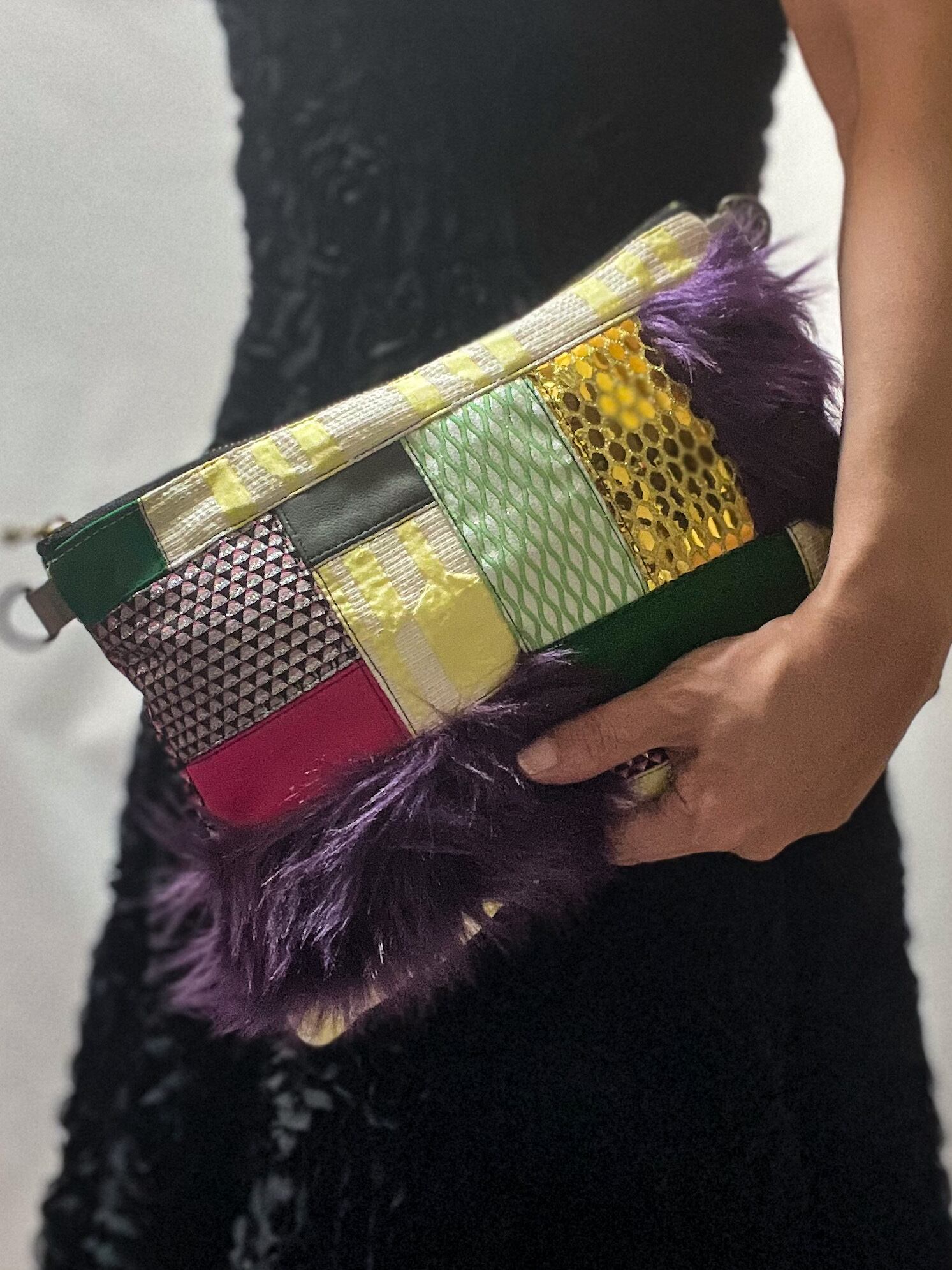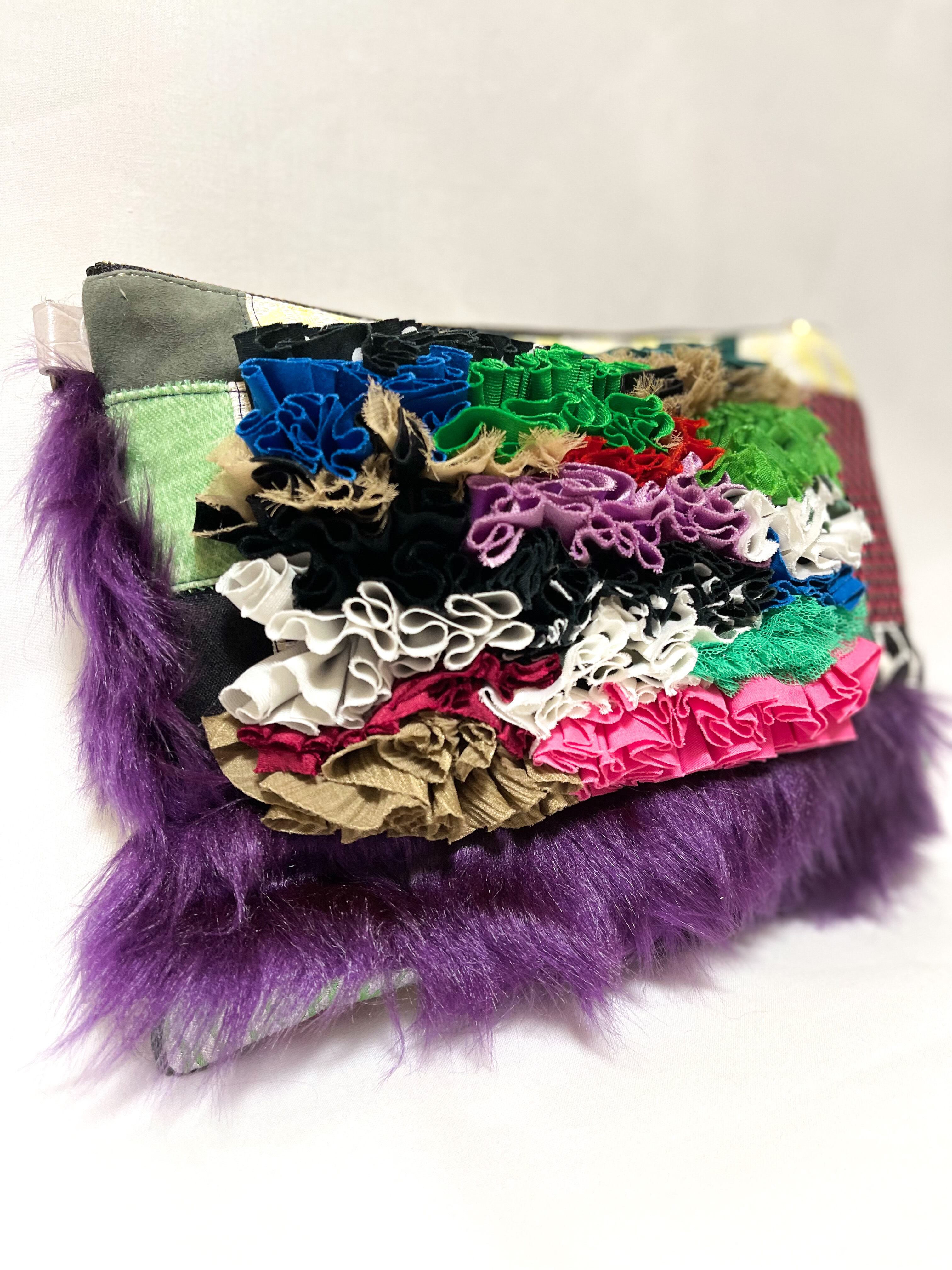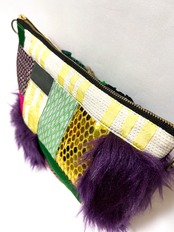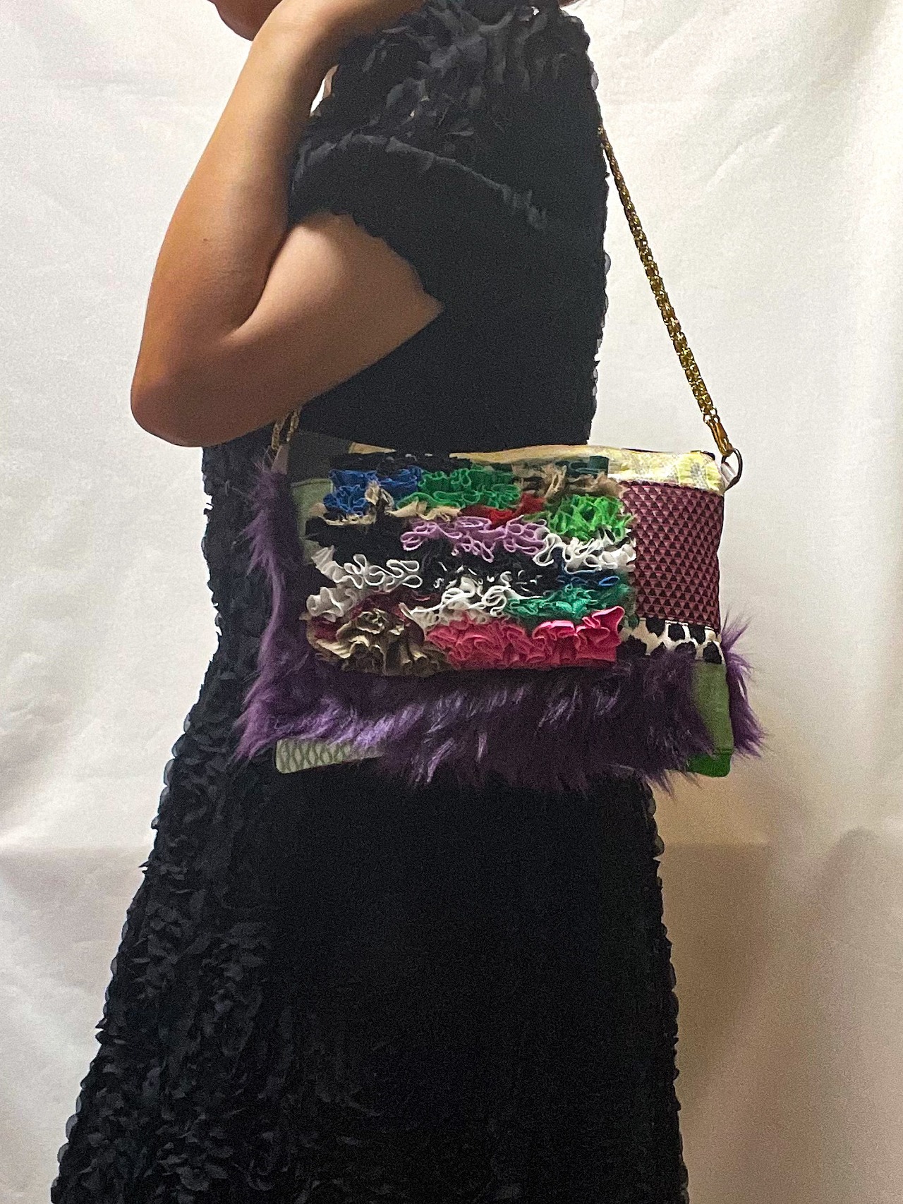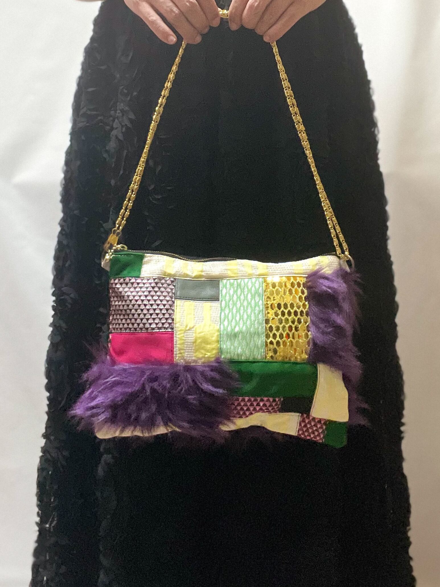 サスティナブルパッチワークポーチ ①#ムラサキMix *Far / チェーン付き