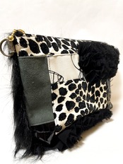 本来は廃棄されてしまう端材や新しい素材・ファーなどを組み合わせパッチワークし、新しい型に仕上げたました。