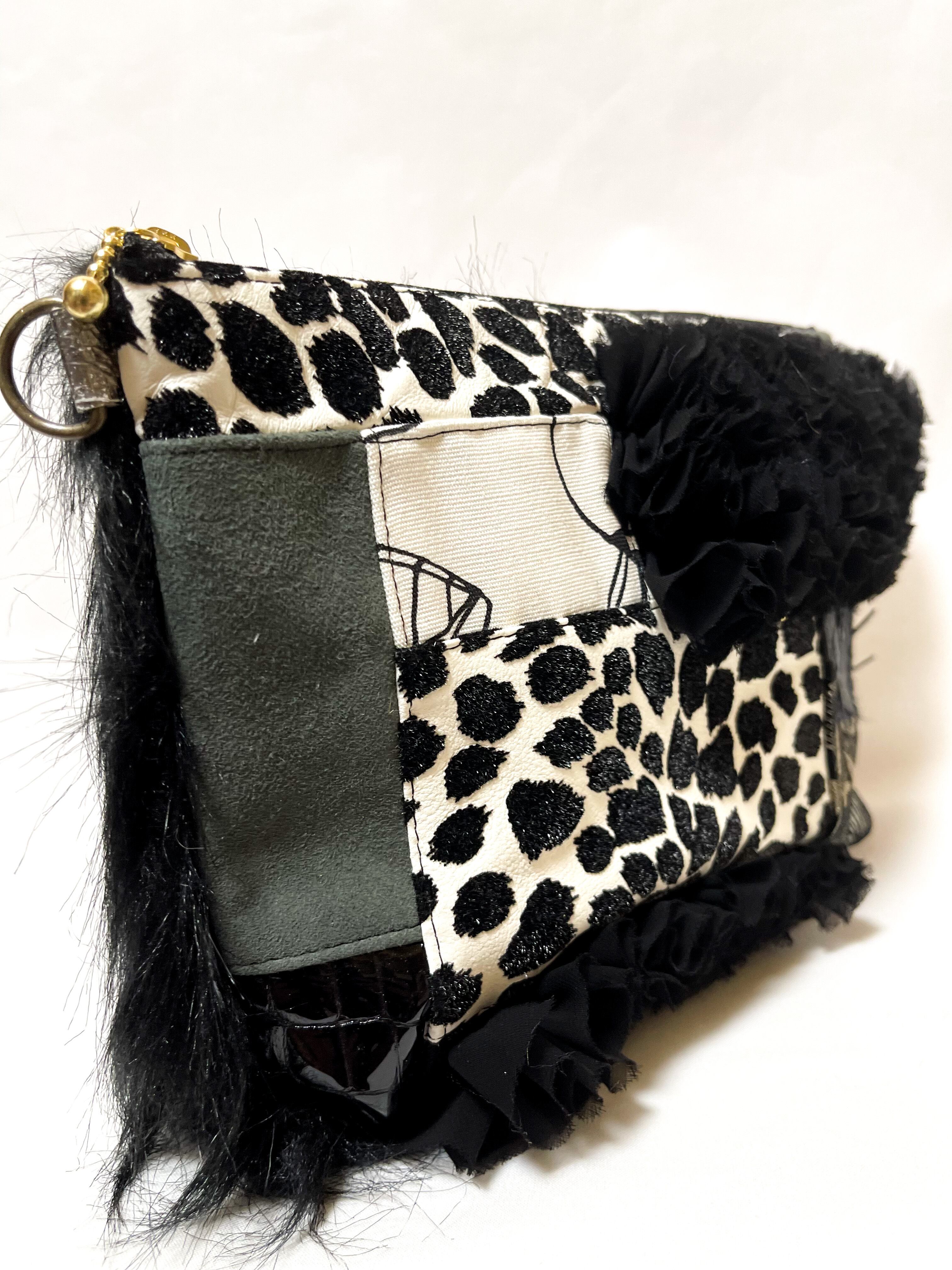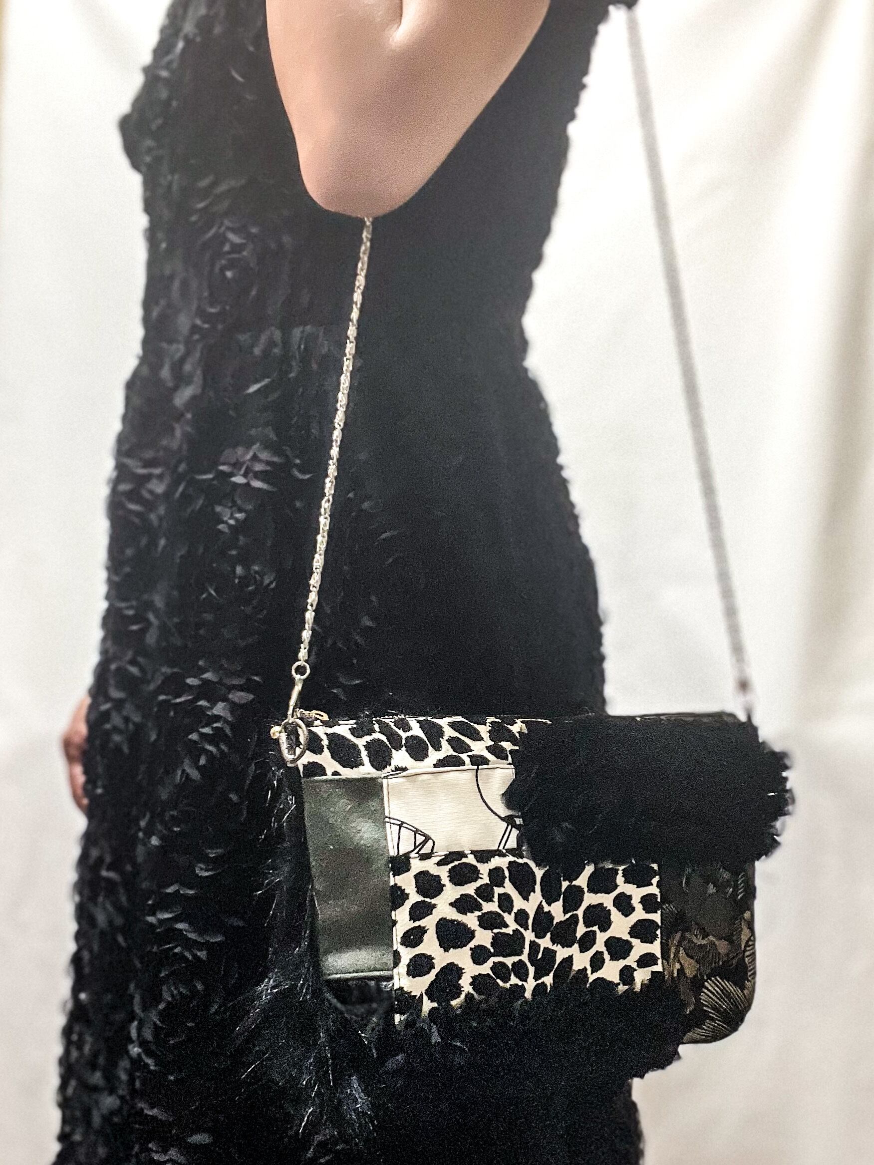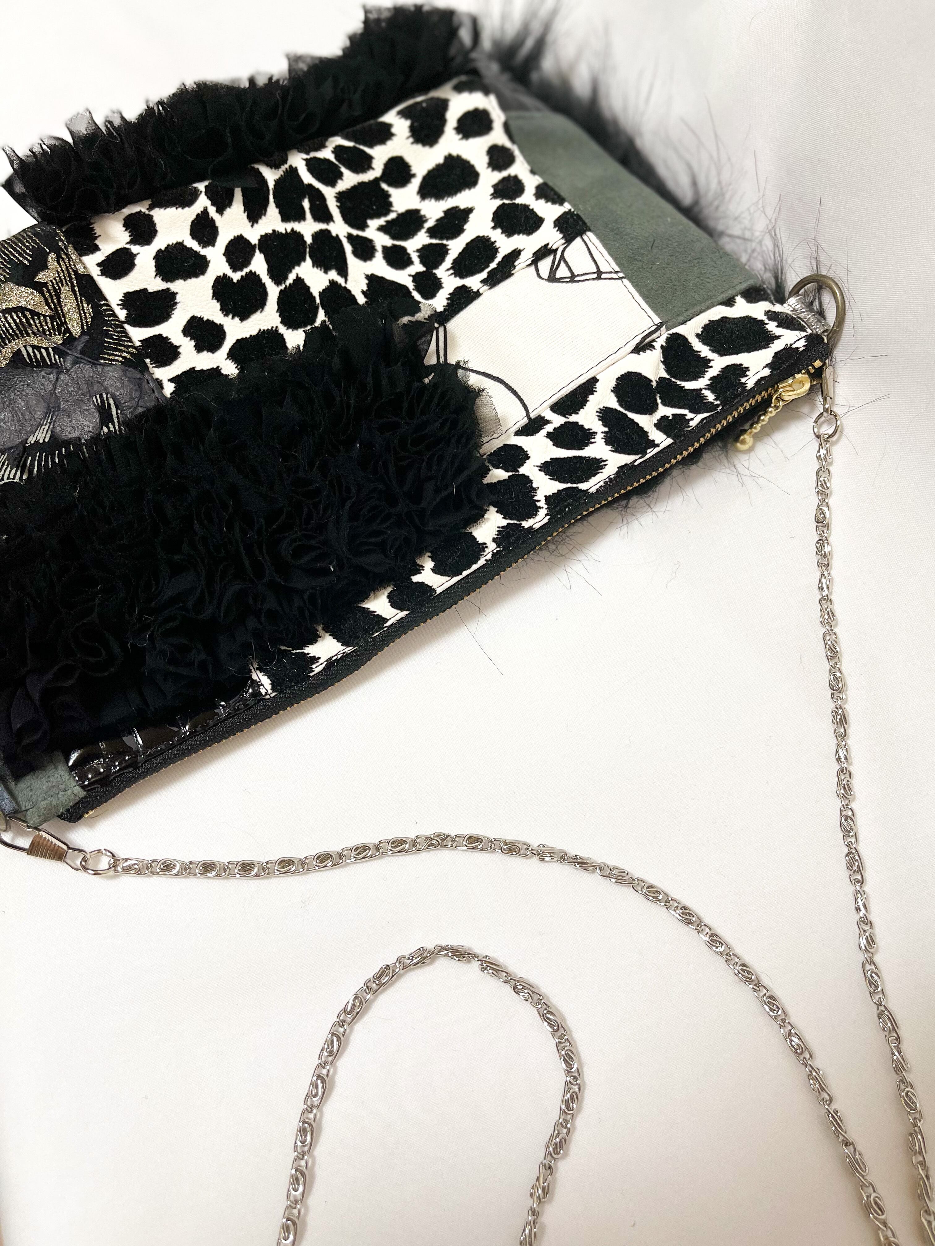 サスティナブルパッチワークポーチ ②#ブラックMix *Far / チェーン付き