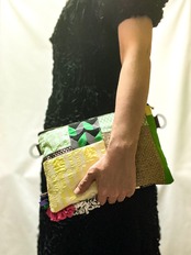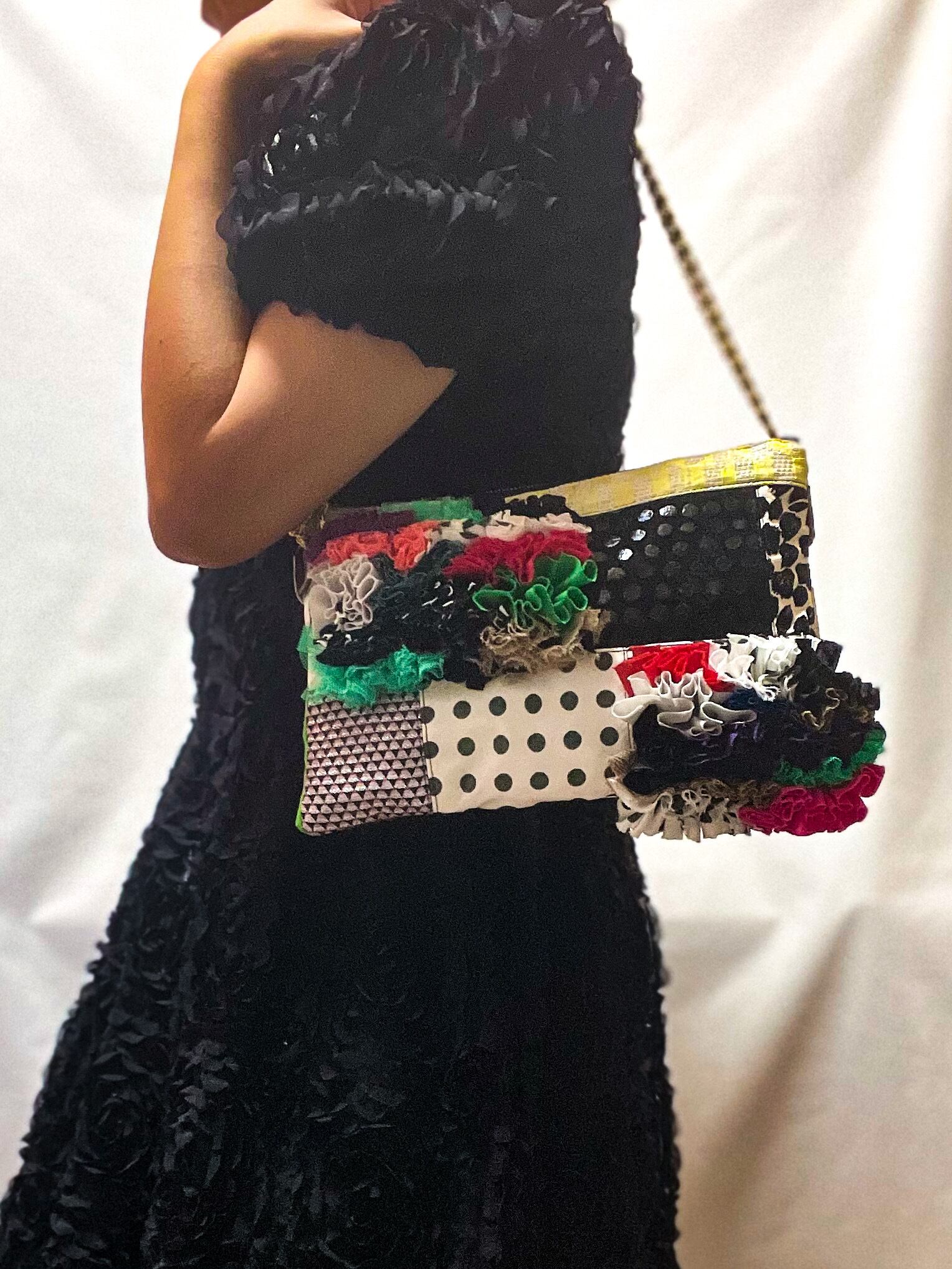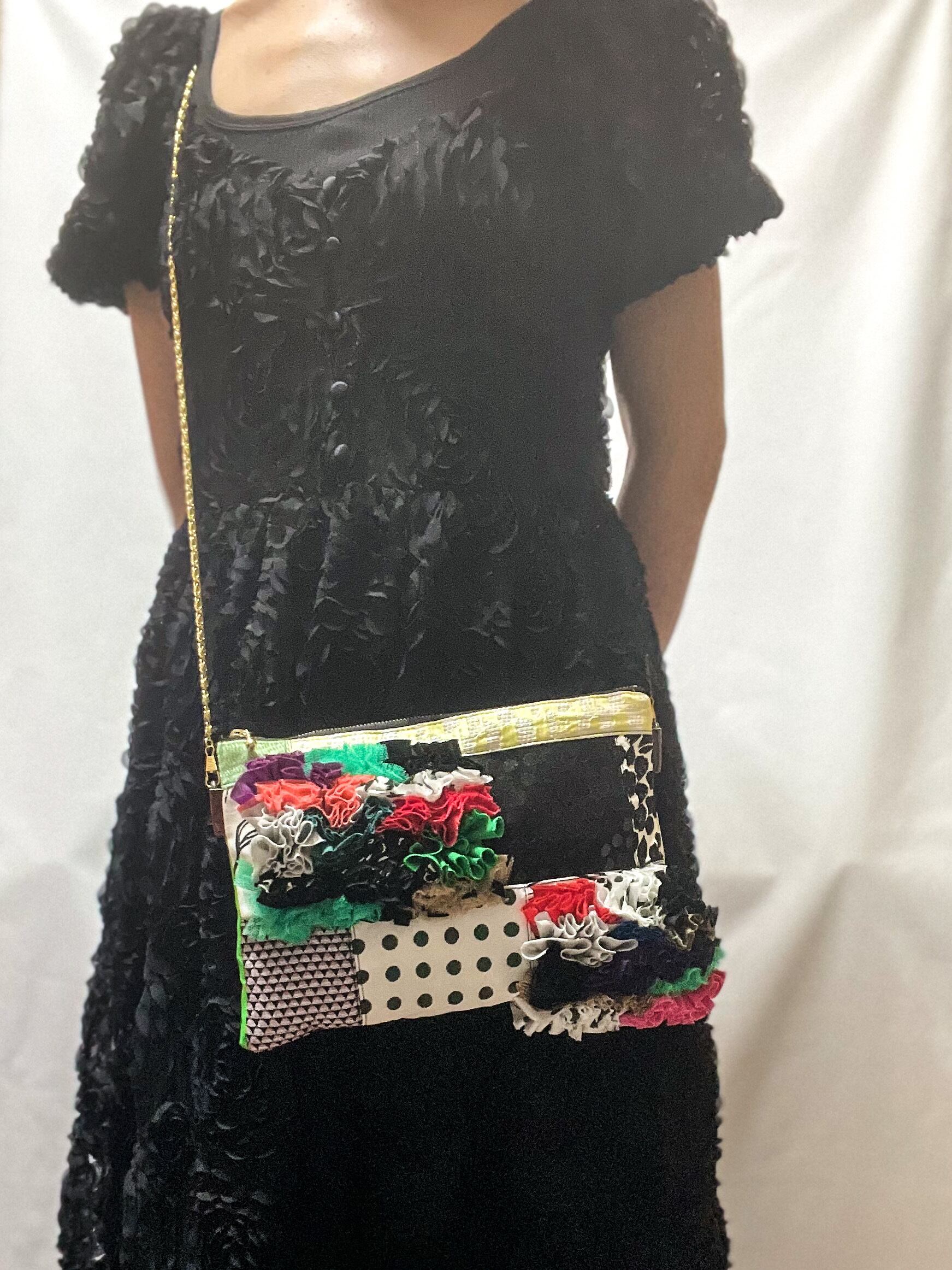 サスティナブルパッチワークポーチ ③#カラフルフリルMix / チェーン付き