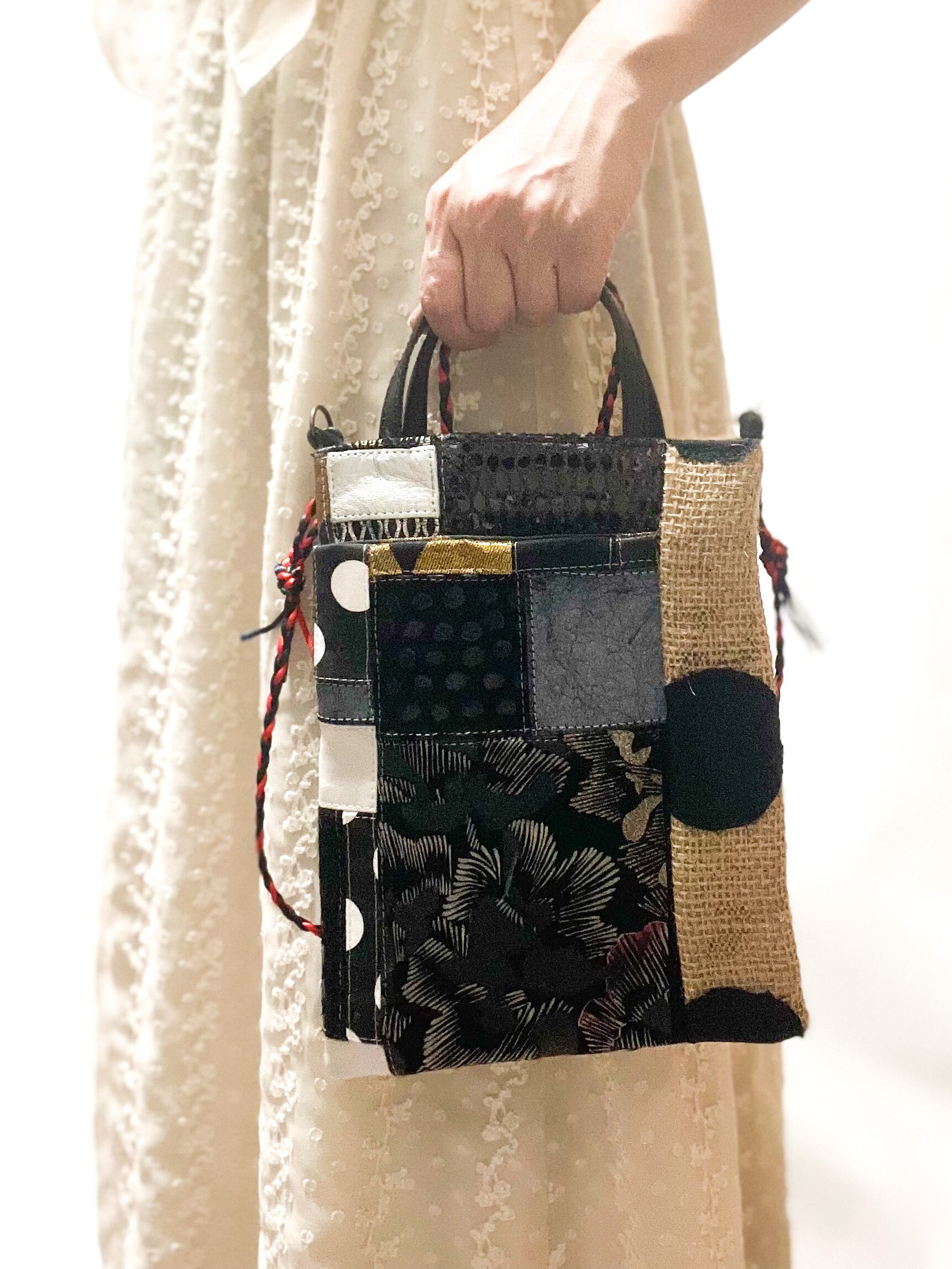 サスティナブルミニミニトートバッグ ②/ ショルダー付き#BKドットMix