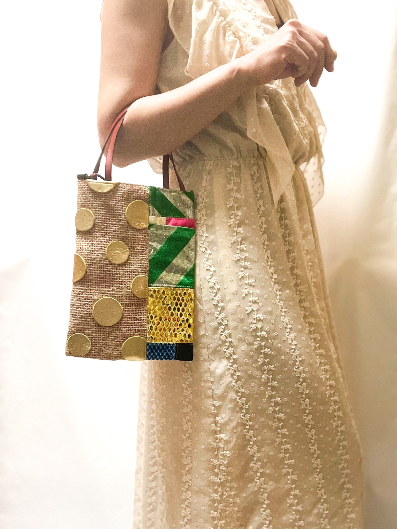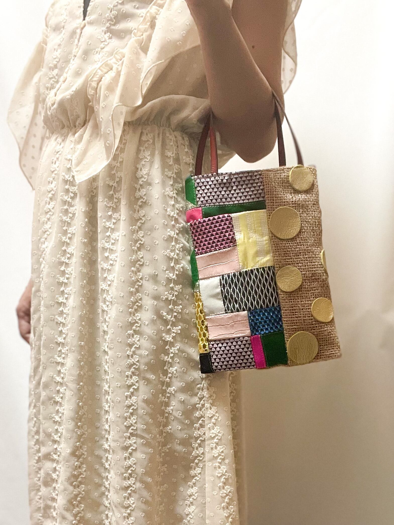 サスティナブルミニミニトートバッグ ③ / ショルダー付き#レザーGDドットMix