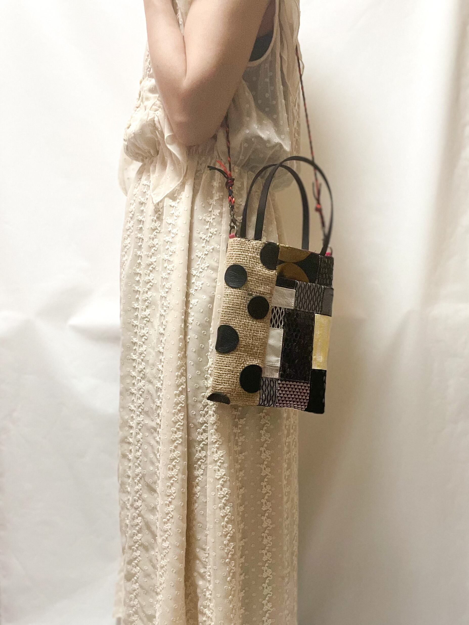 サスティナブルミニミニトートバッグ ④ / ショルダー付き#レザーBKドットMix