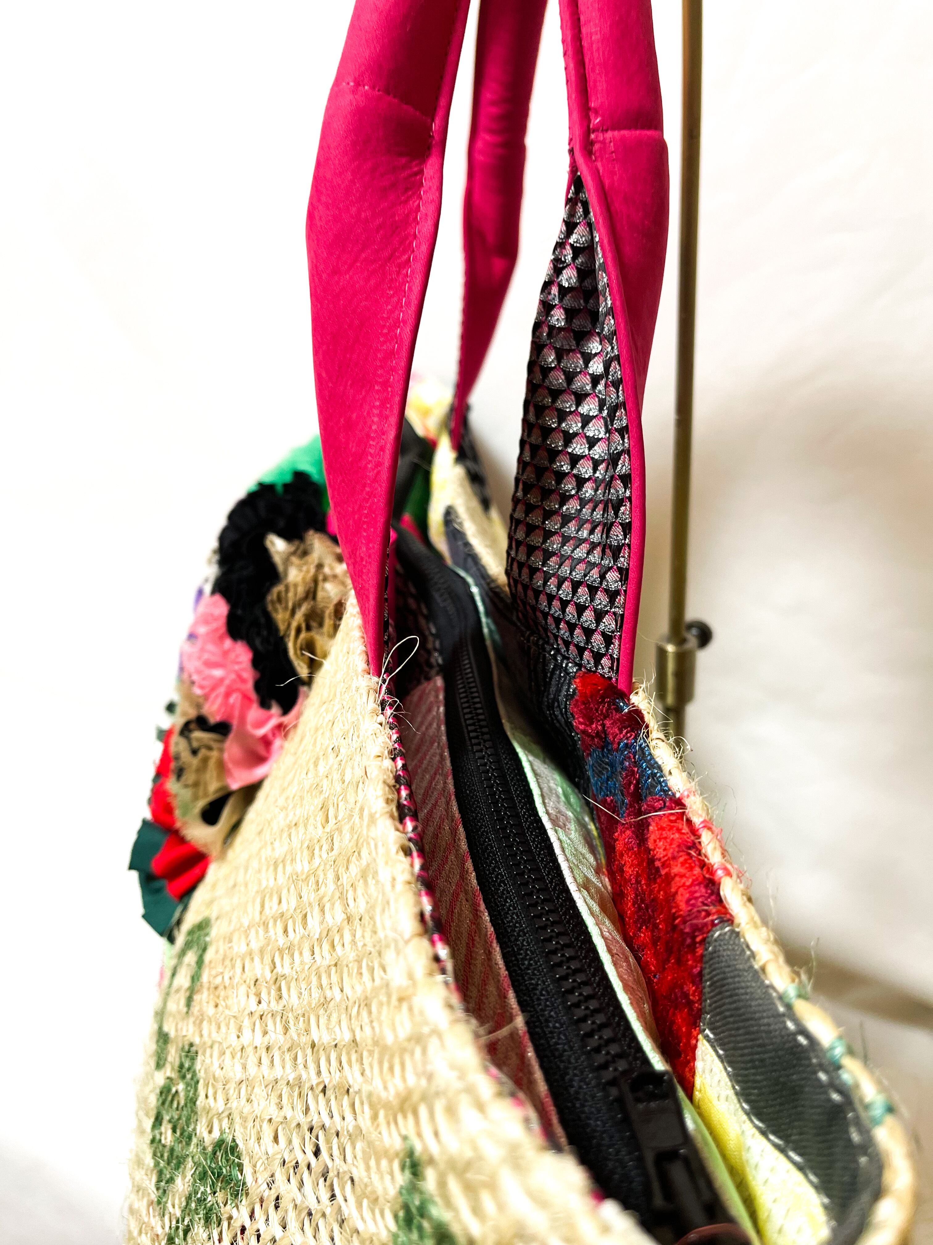 トートバッグ Lサイズ / サスティナブル・フリルパッチワーク#マゼンタピンクVer