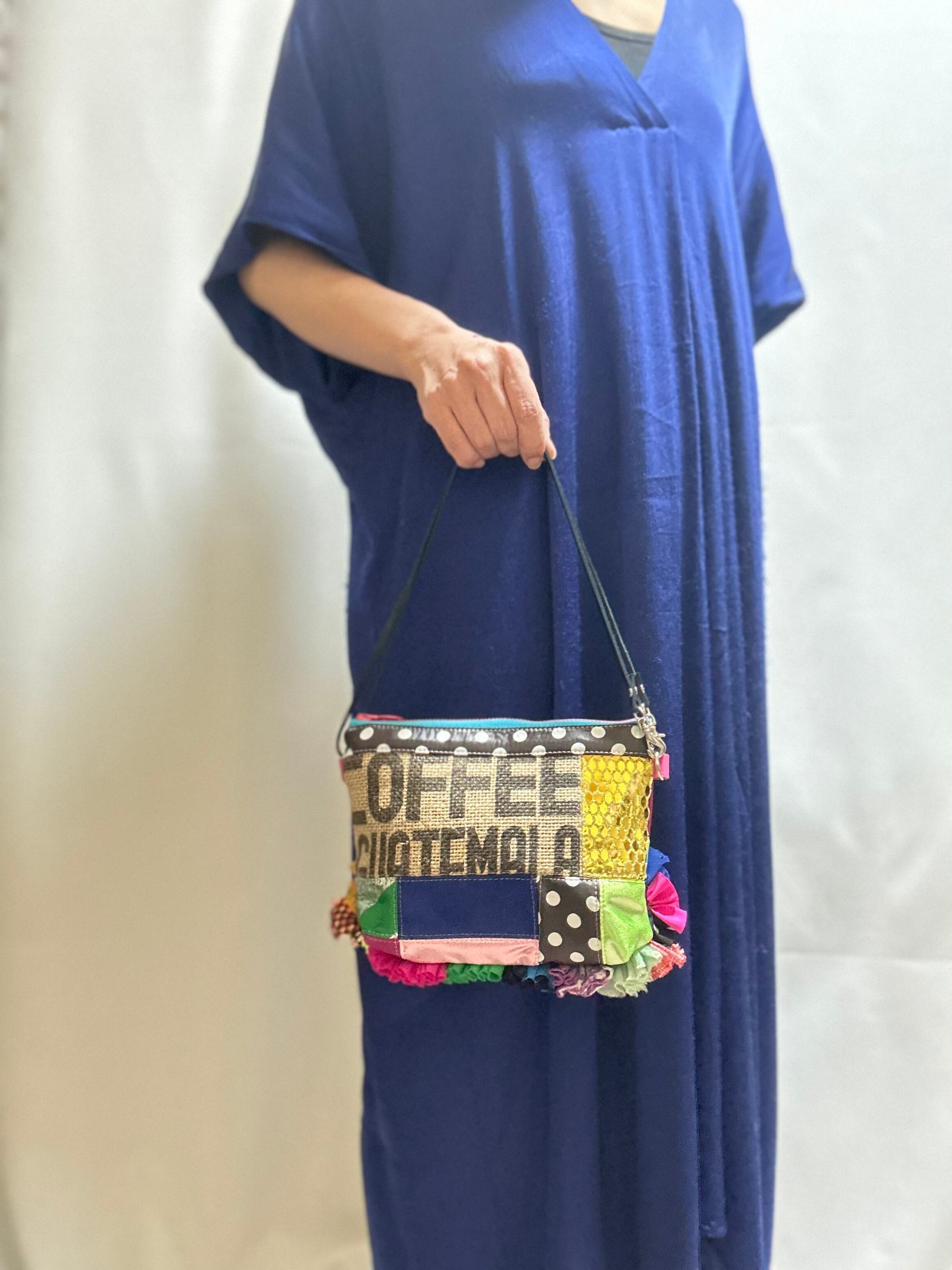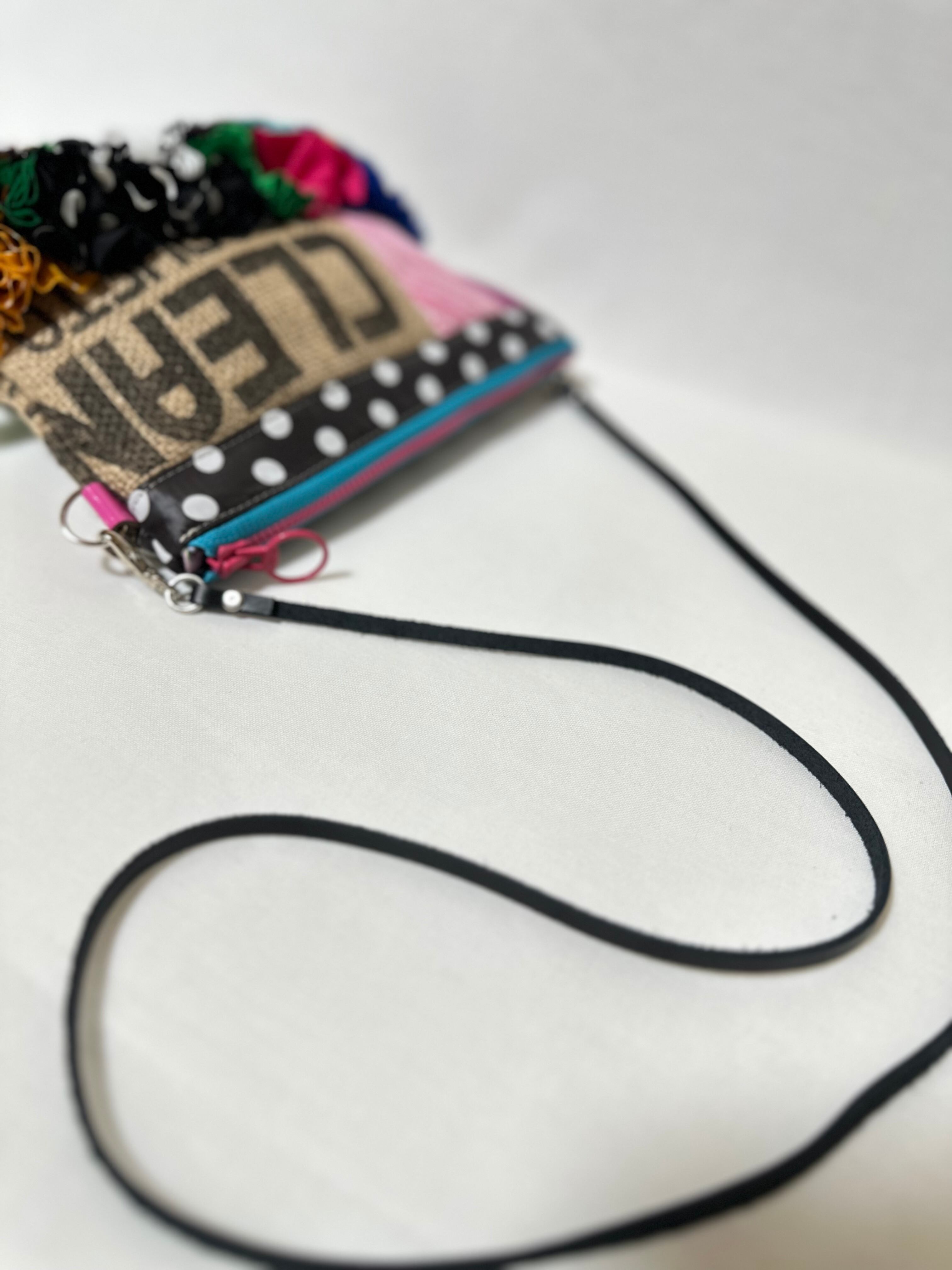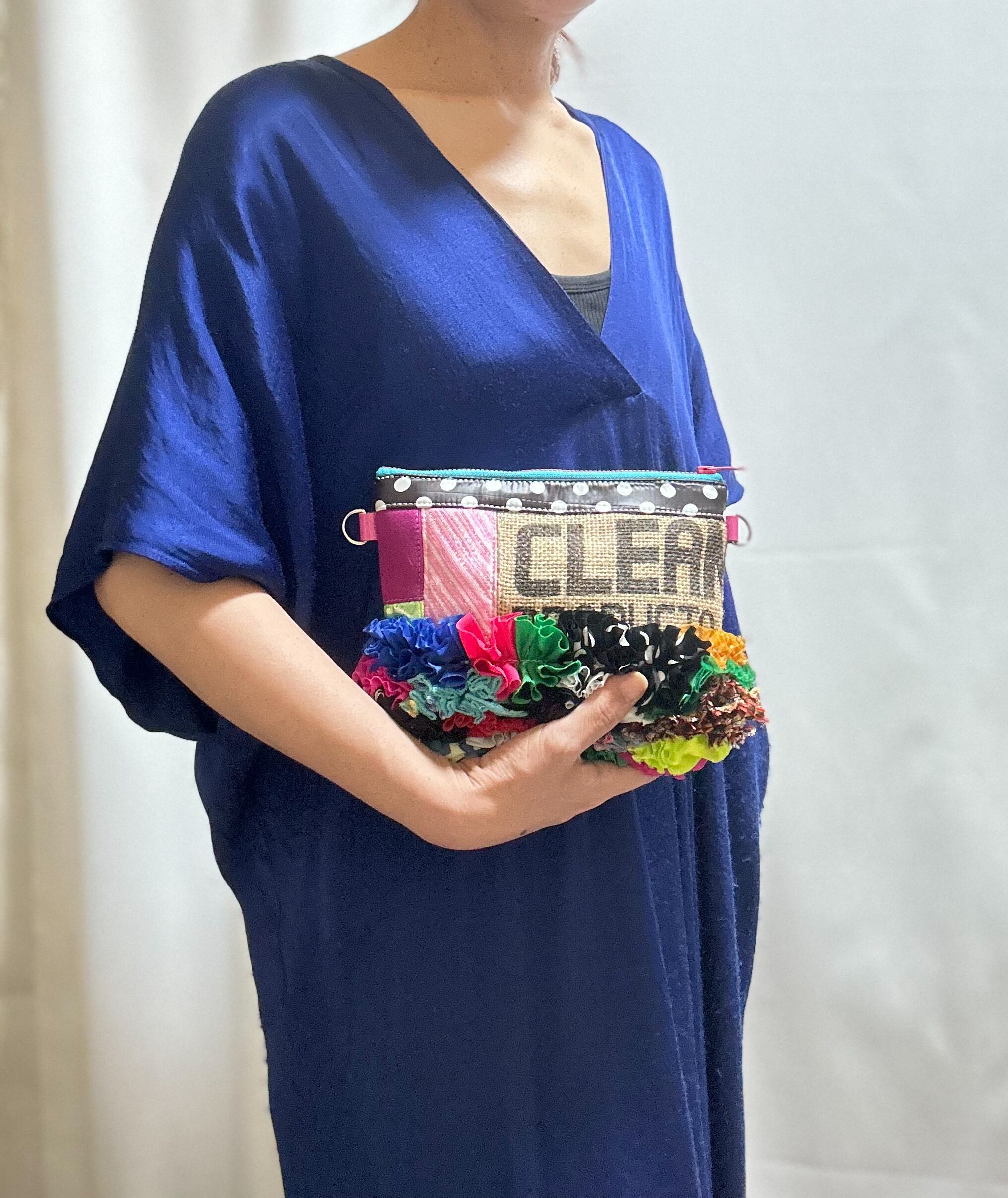 パッチワークポーチ ❹#カラフル フリルMix / 革ショルダー付き