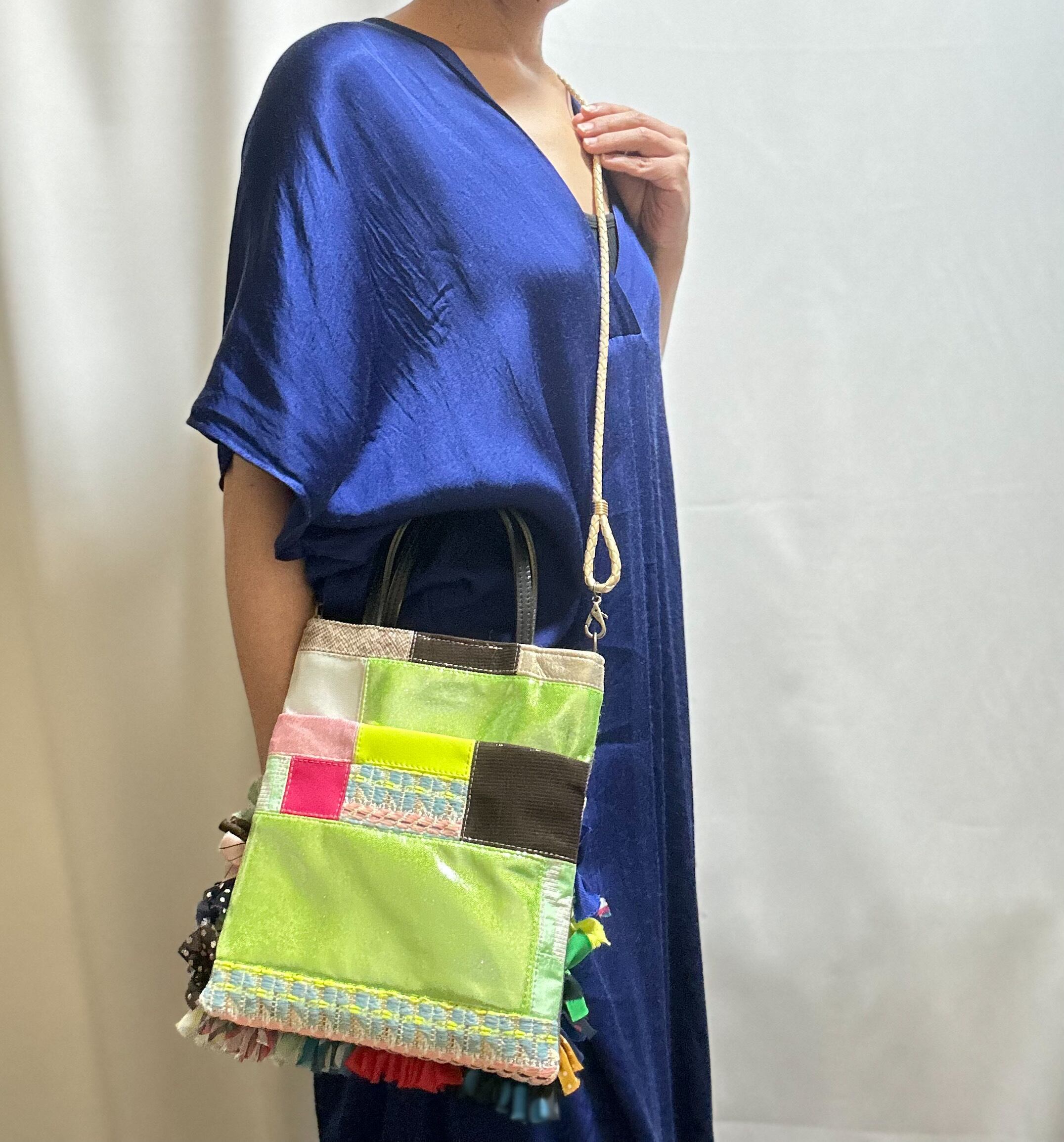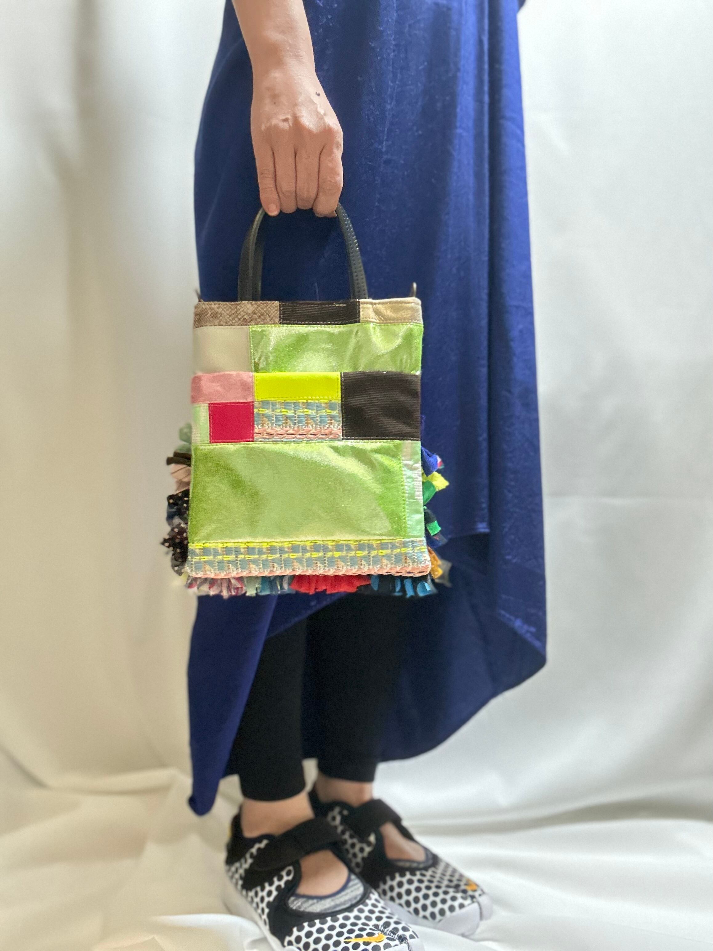 サスティナブルミニトートバッグ❷#フリル・LグリーンMix / ショルダー付き