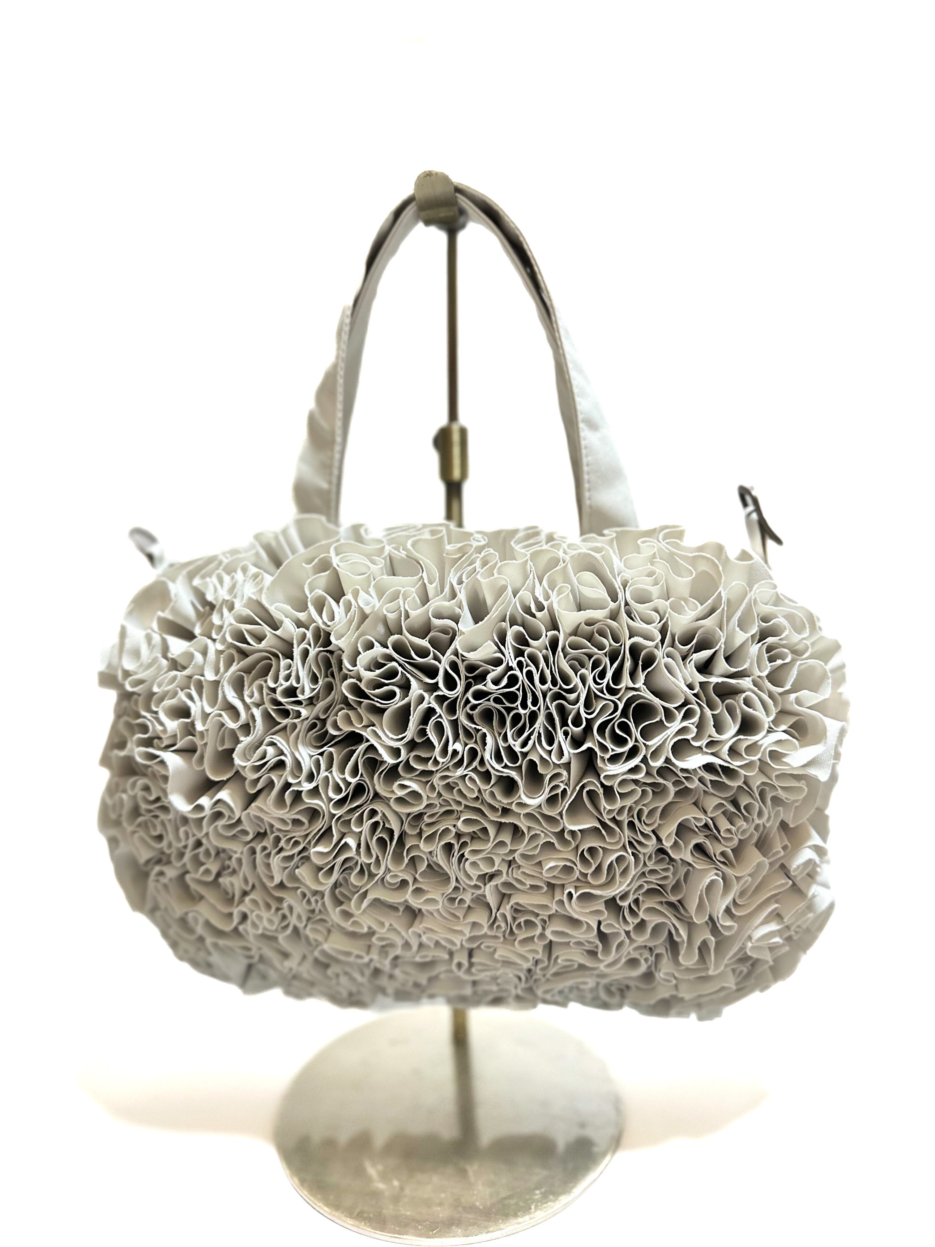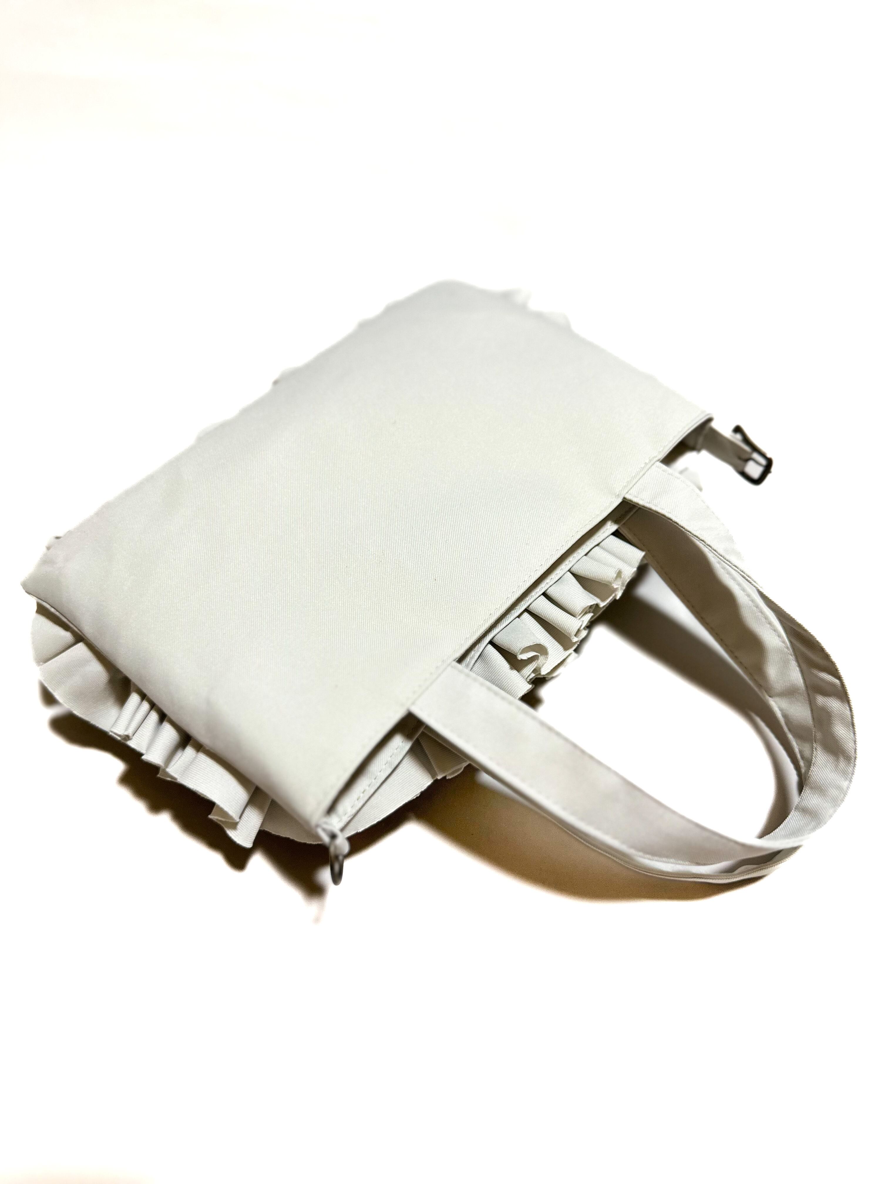 両面にギュギュっと詰まったブーケをイメージし、一つ一つお花の形にしながら手作業でフリルを施したお花が特徴的なトートバックにミニタイプが登場です。