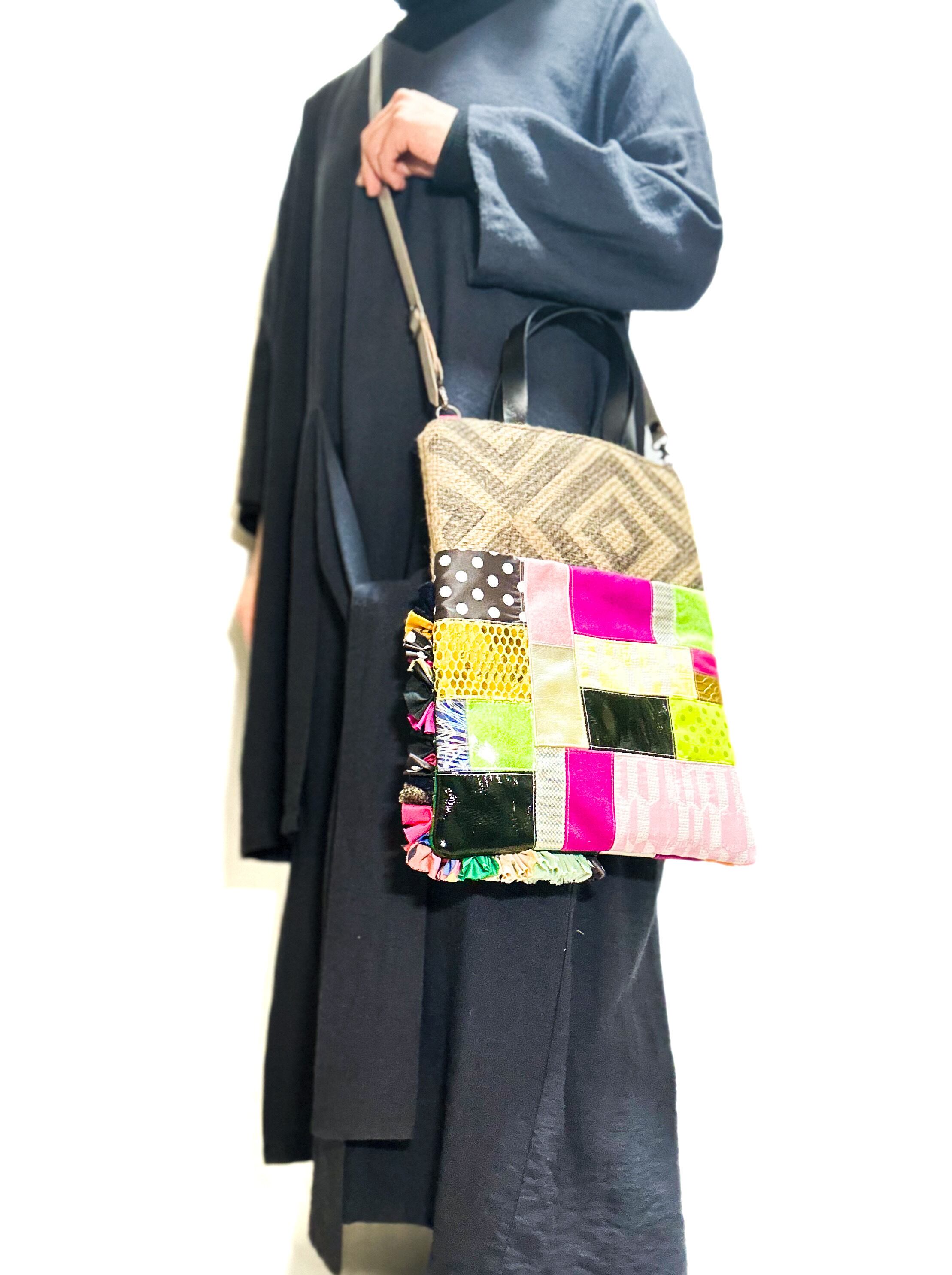 パッチワークトートバッグ M#カラフルフリルミックス