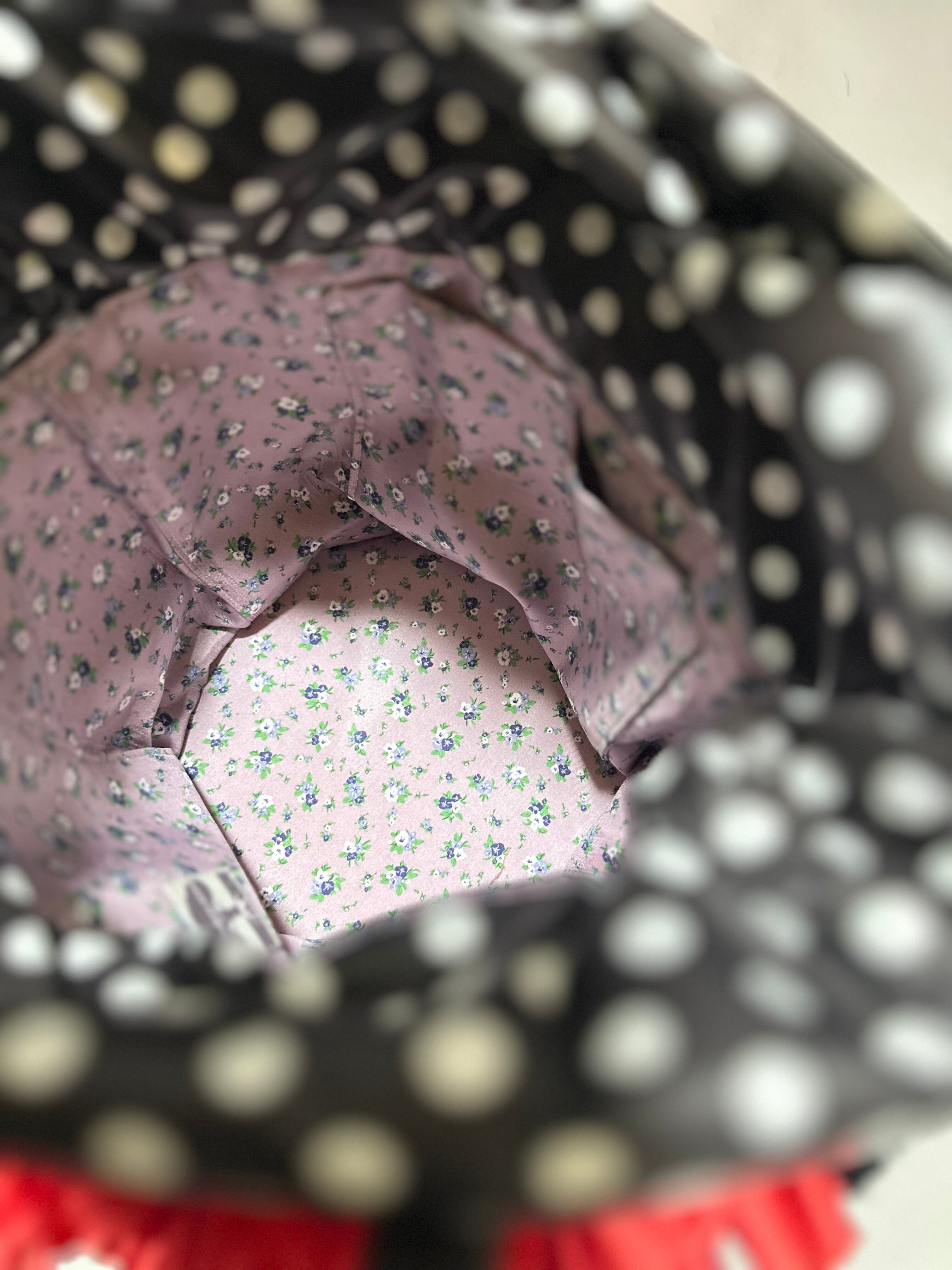 裏の縁部分のパッチワークや底もドットになっていて、チラッとしか見えない部分も可愛いデザインになってます。