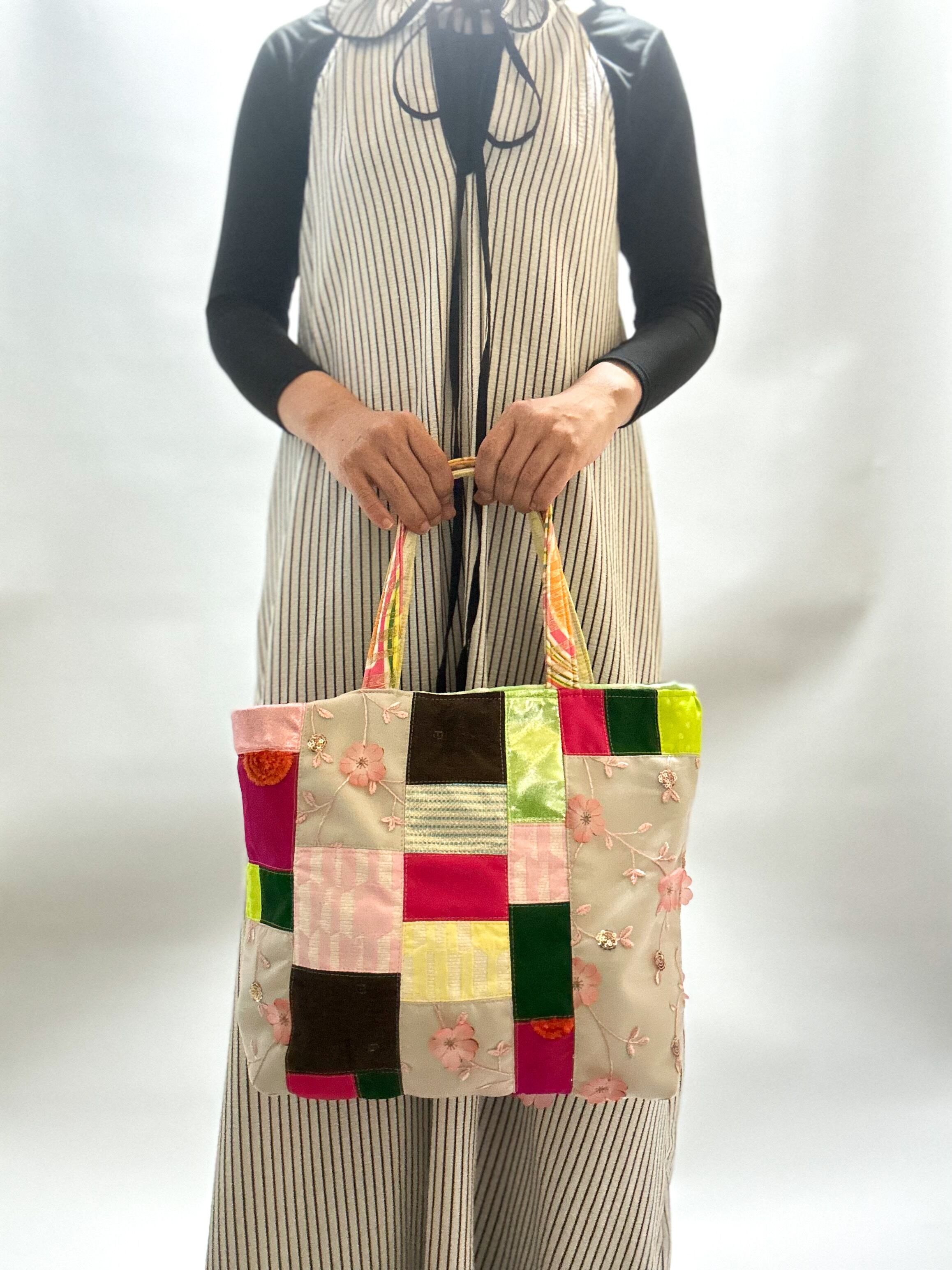 パッチワークエコバッグ④ M #パステルピンクミックス